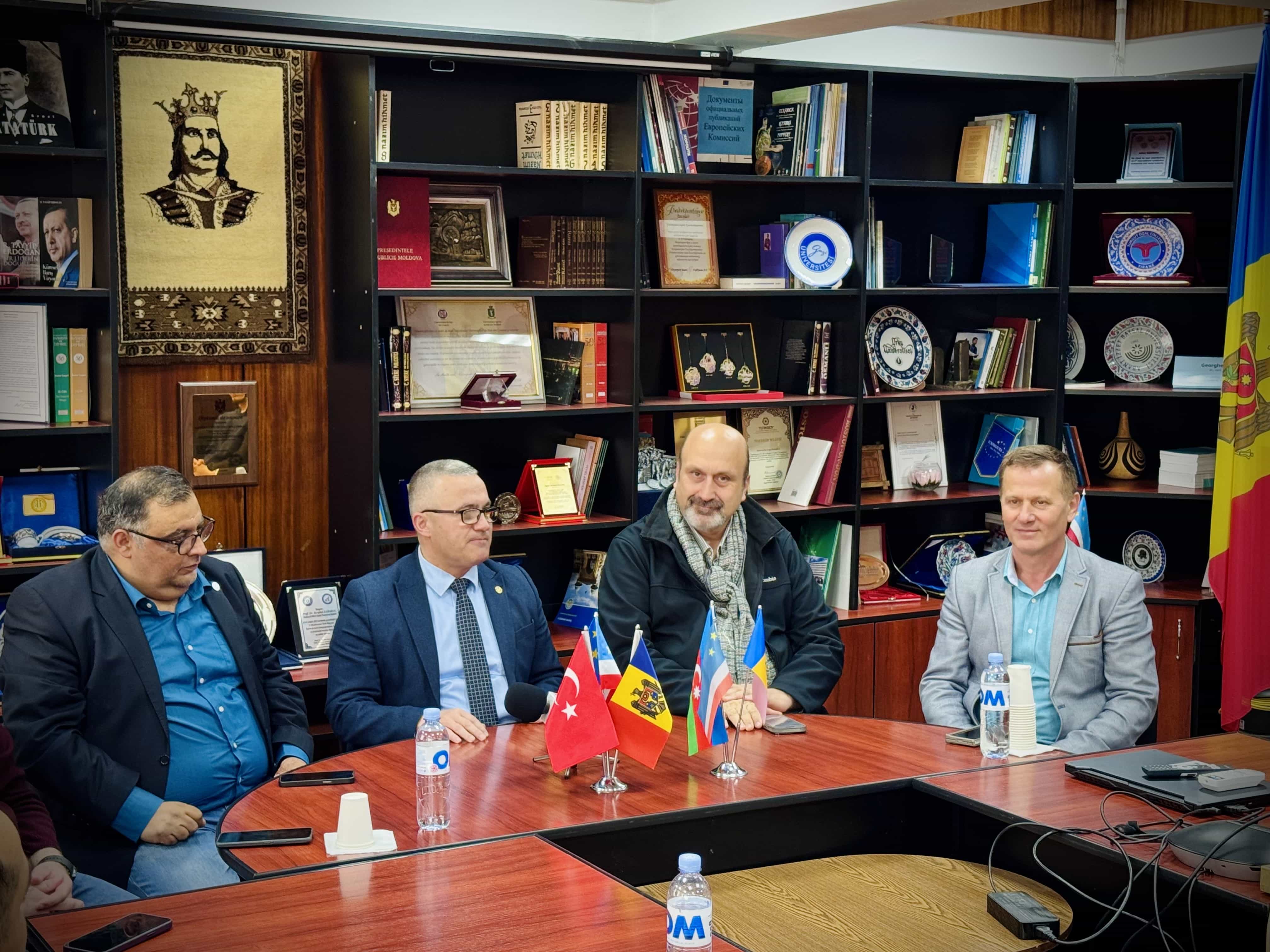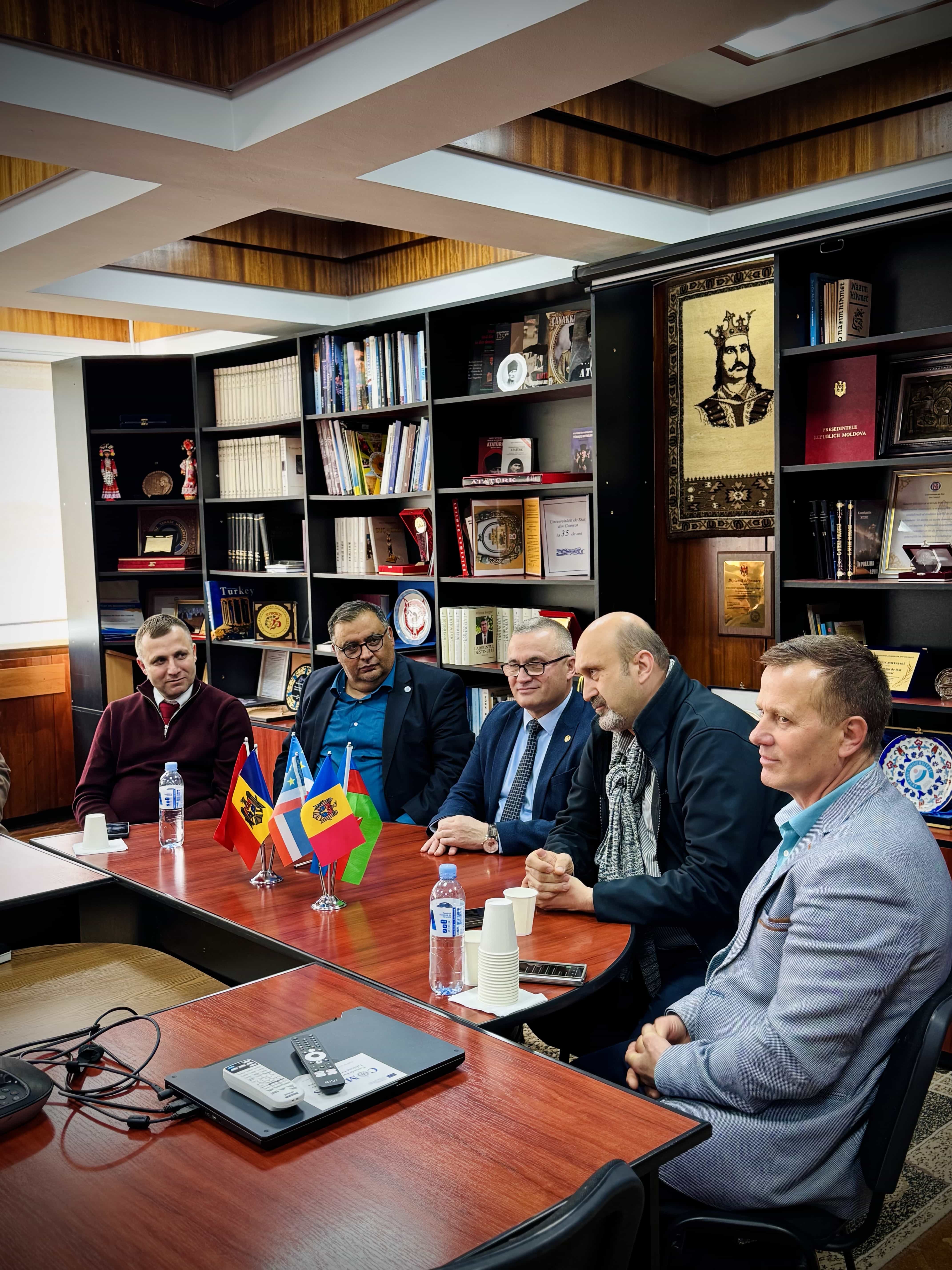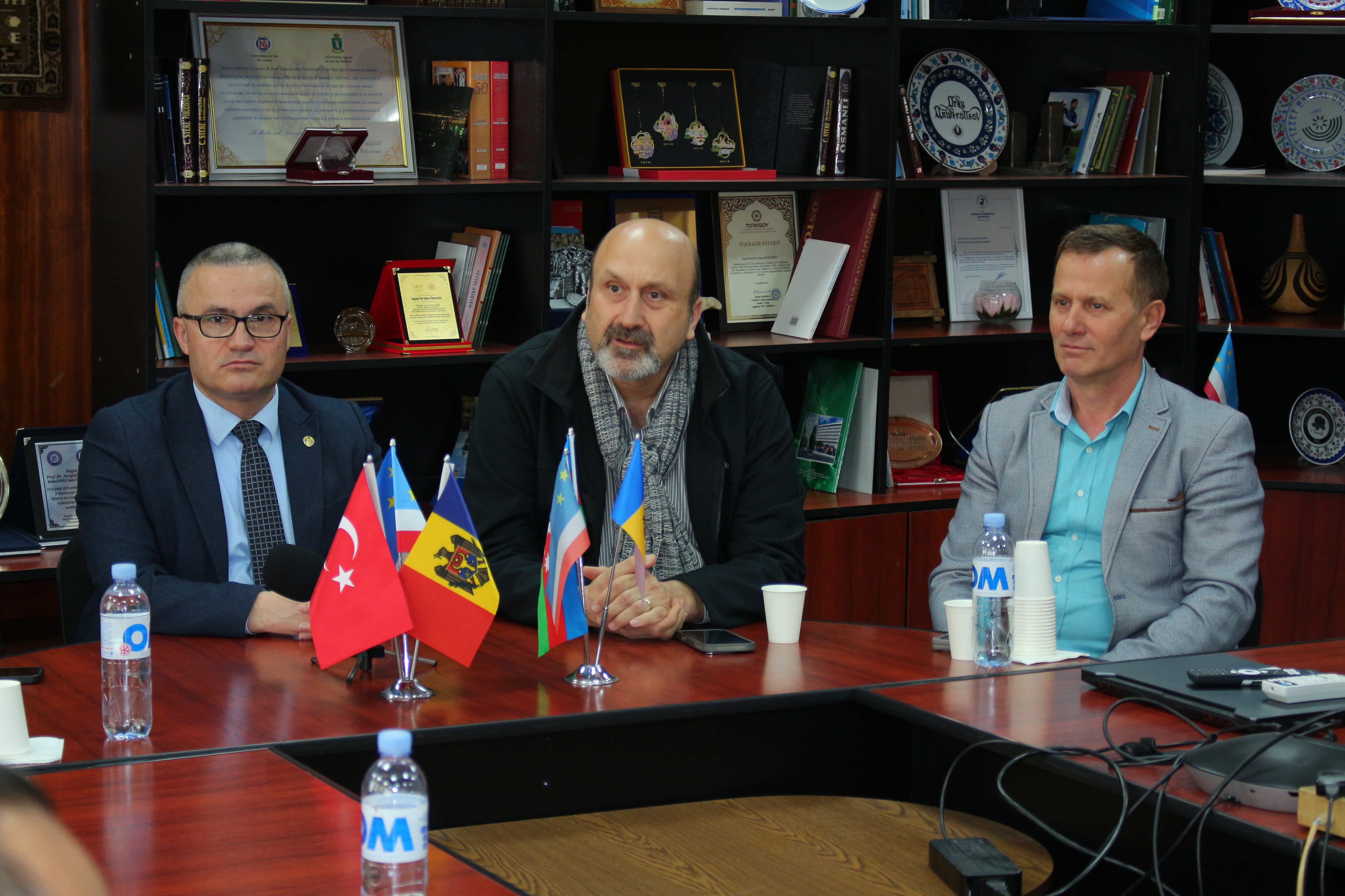 On April 10, 2026, an official meeting was held at Comrat State University between the Rector of CSU, Dr., Associate Professor Zaharia Serghei and Turkish scholars Levent Eraslan and Emre Ünal.