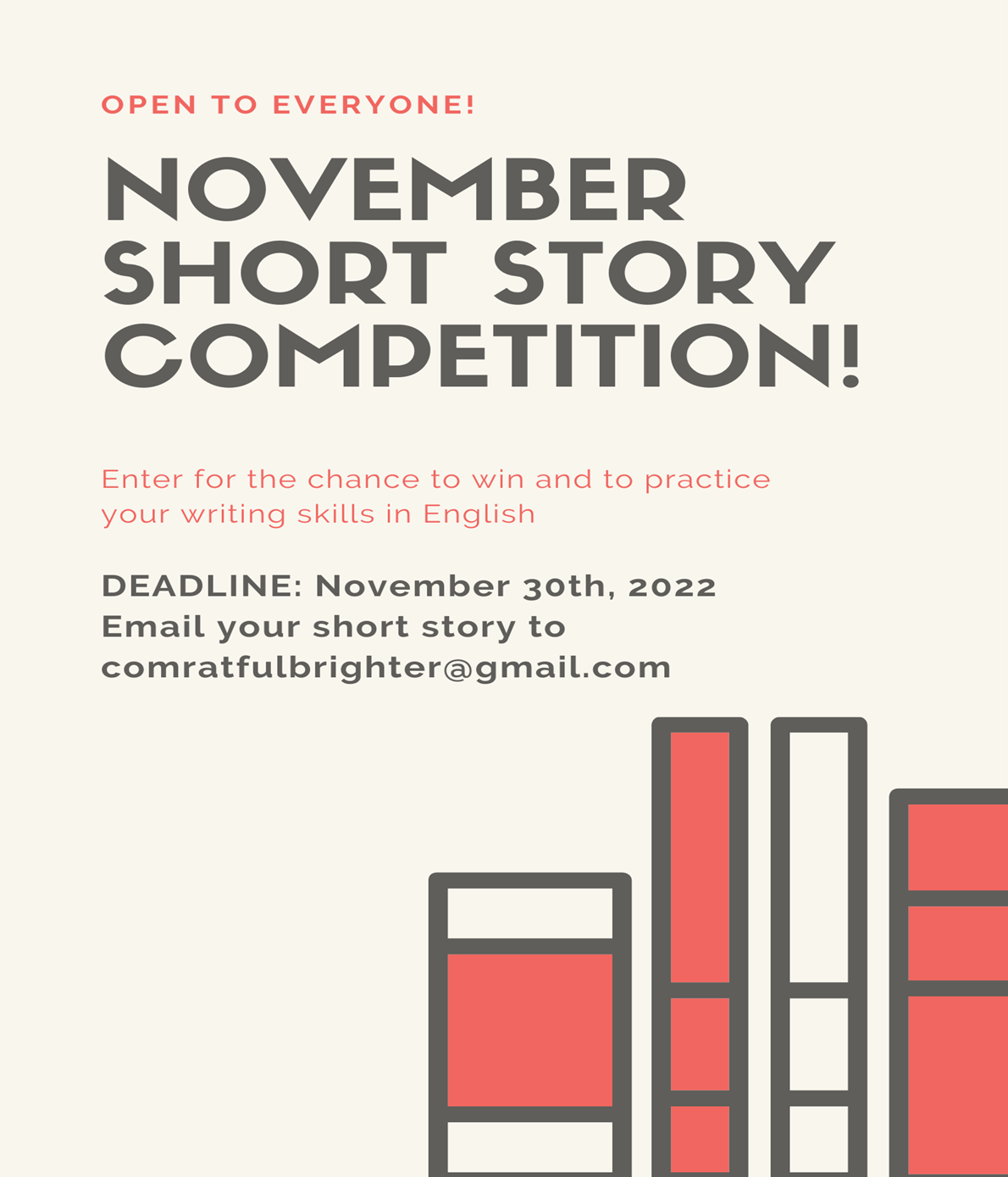 The Fulbright English Teaching Assistant (ETA) of Foreign Languages Department at Comrat State University is organizing a short story writing competition for the month of November. The short story must be fictional but can be about any topic. The goal is that submissions are creative. The story must be between 500-2,700 words and in English. Submissions can be emailed to This email address is being protected from spambots. You need JavaScript enabled to view it.. The submission deadline is November 30th. The winner will receive a certificate and a book.