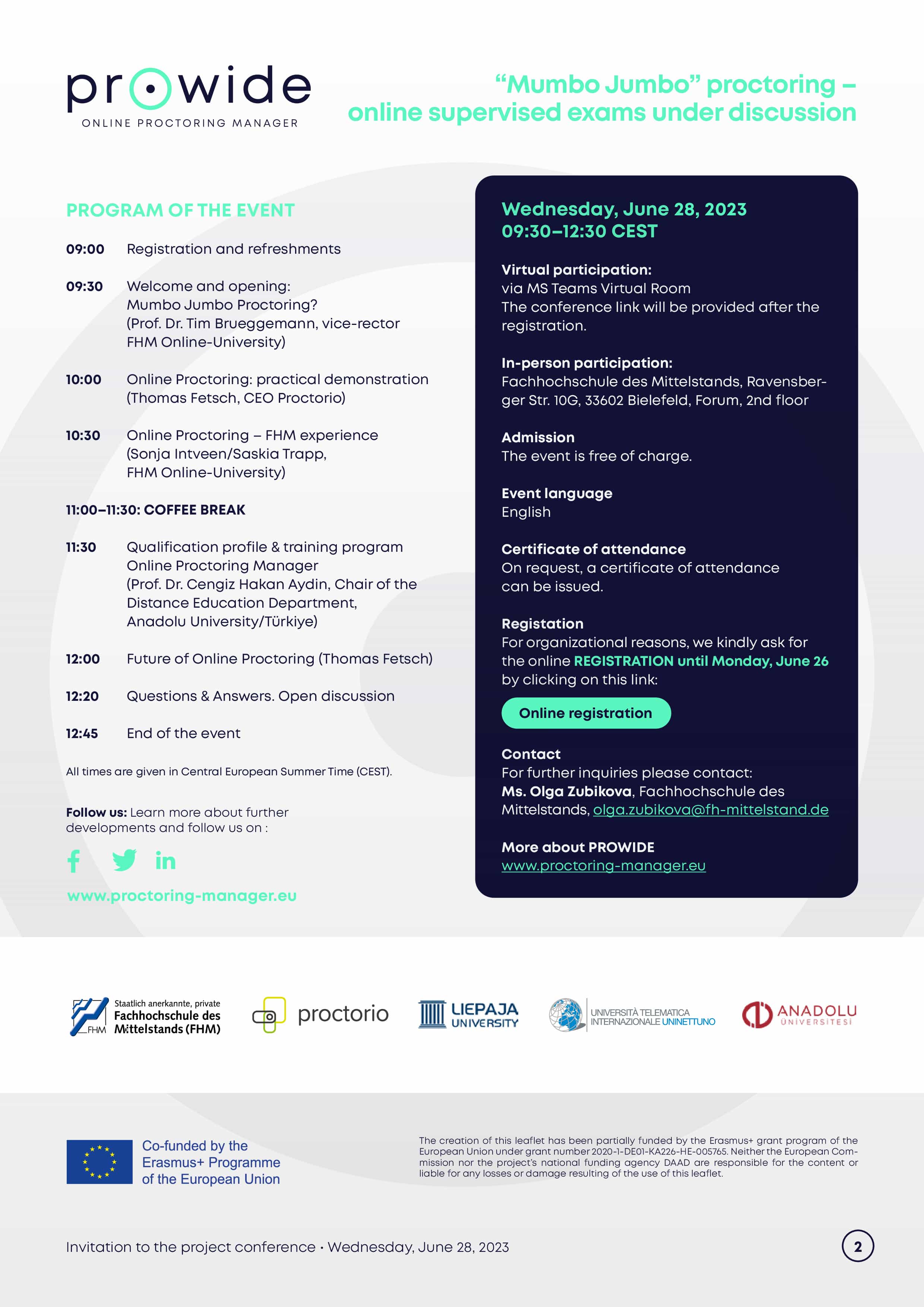 All these questions will be discussed during the hybrid conference organized by the Fachhochschule des Mittelstands FHM (University of Applied Sciences) and Proctorio GmbH on Wednesday, June 28, from 09:30 to 12:30 CEST (10:30-13:30 Moldova Time).