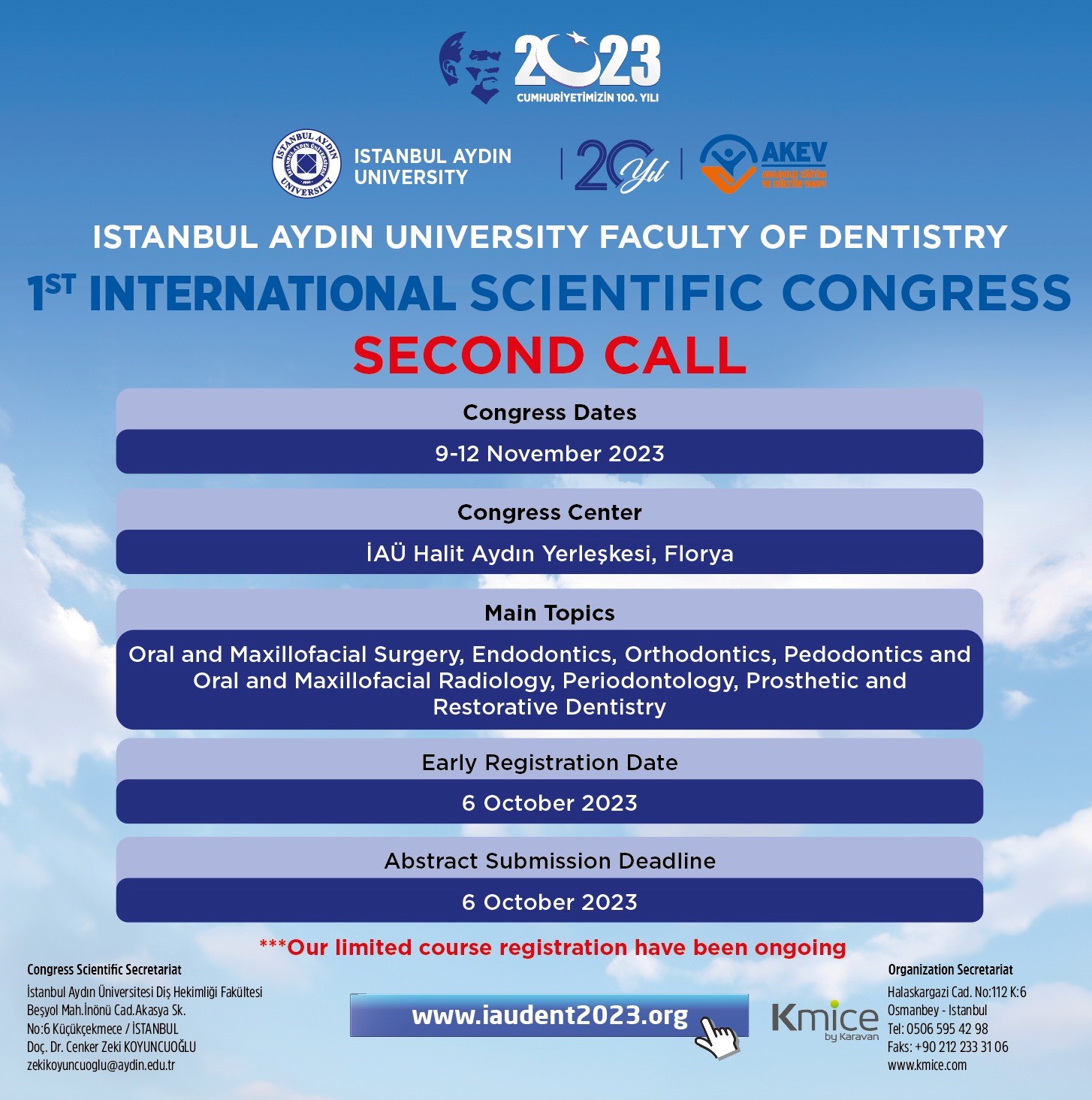 EURAS is honored to invite you to the 1st International Scientific Congress of Istanbul Aydın University Faculty of Dentistry, which will be held at Istanbul Aydın University Florya Campus T Block Conference Hall between 9 -12 November 2023.