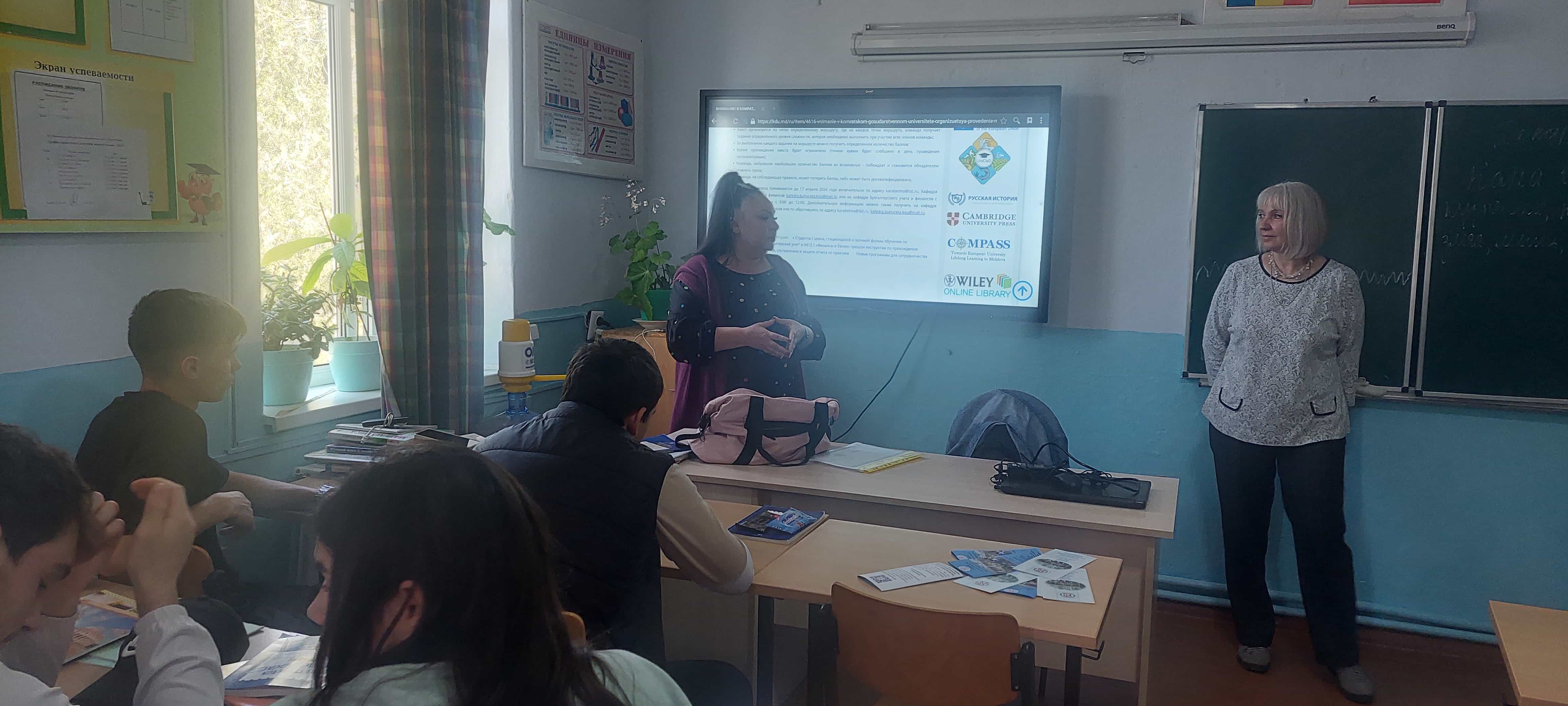 The lecturers of the Economics Faculty of the Accounting and Finance chair, Dr. Dudoglo T.D. and Sviridenco L.A., within the vocational guidance work, on 11 April 2024 visited the Regional Sports Boarding Lyceum from Comrat m. and the Theoretical Lyceum from N. Tretyacov. Comrat and the Theoretical Lyceum named after N. Tretyakov. N. Tretyacov.