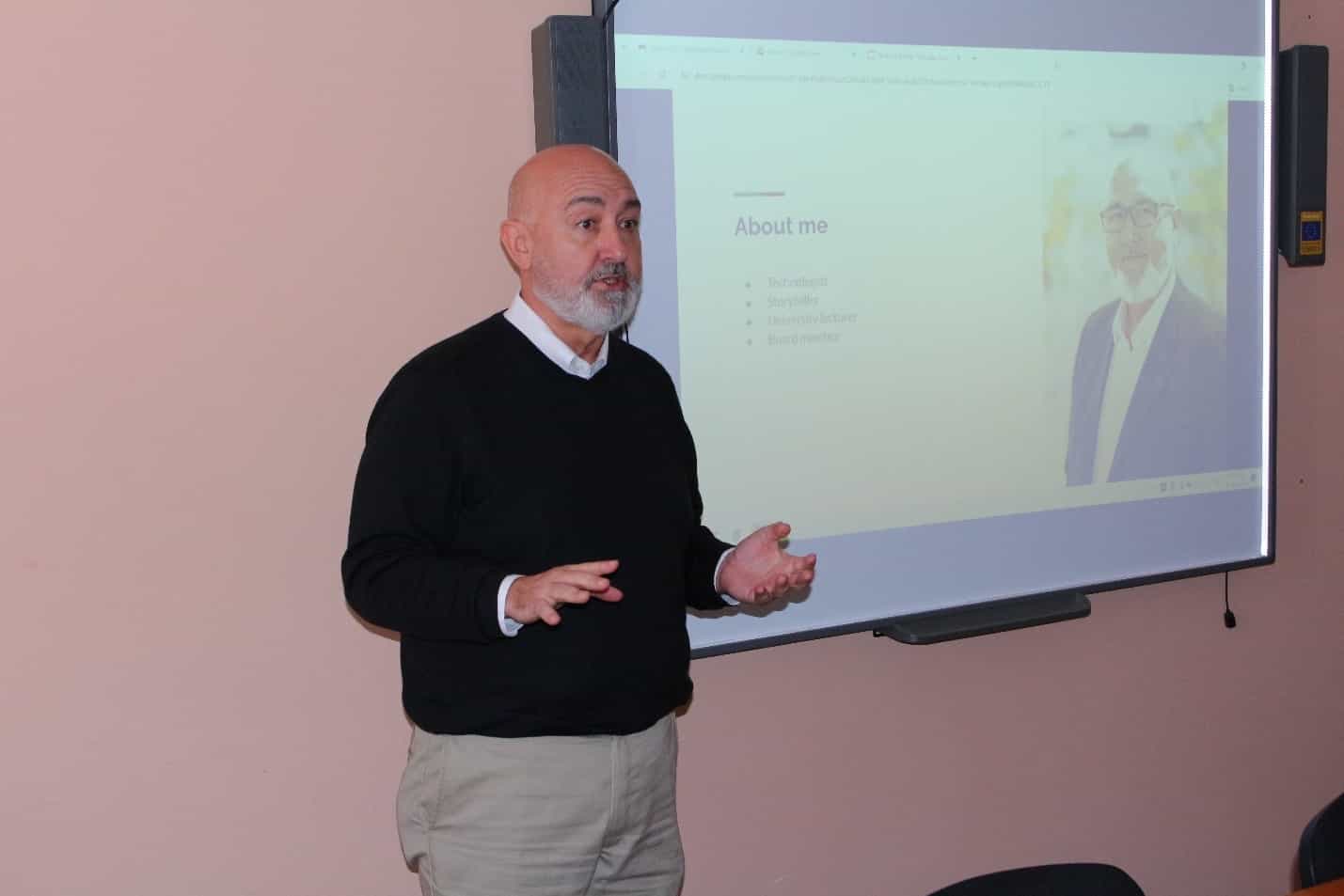 On October 28, 2024, Comrat State University hosted a public lecture titled, “Give Me Future: Innovations in Civic Activism from Around the Region.” The event addressed pressing issues and methods of encouraging civic activism. The guest lecturer was American Professor Dr. Douglas Arellanes, a technologist, broadcaster, and software developer focused on implementing innovative technological solutions in journalism. For ten years, Dr. Douglas Arellanes served on the board of the Prague Civil Society Center, from its founding until July 2024, providing expertise in technology and media. He is also a co-founder of the Czech nonprofit institute Sourcefabric, which has developed several award-winning technological solutions for news organizations in developing countries. Among his significant achievements, Dr. Arellanes has led multiple projects aimed at advancing innovations in journalism. He is also known for his work as a broadcaster on Radio 1 91.9FM in Prague (Czech Republic), where he has connected with a broad audience for many years. Dr. Arellanes holds a bachelor’s degree in Book Arts from the College of Creative Studies at the University of California, Santa Barbara, USA. Comrat State University students showed active interest in the lecture, asking questions about various aspects of civic activism and innovations in media and technology. Their questions were aimed at gaining a deeper understanding of the role of technology in promoting civic engagement and obtaining practical advice from the expert. The public lecture by Professor Dr. Douglas Arellanes was organized with the support of the U.S. Embassy in Moldova, contributing to strengthening cultural and educational ties between the countries.