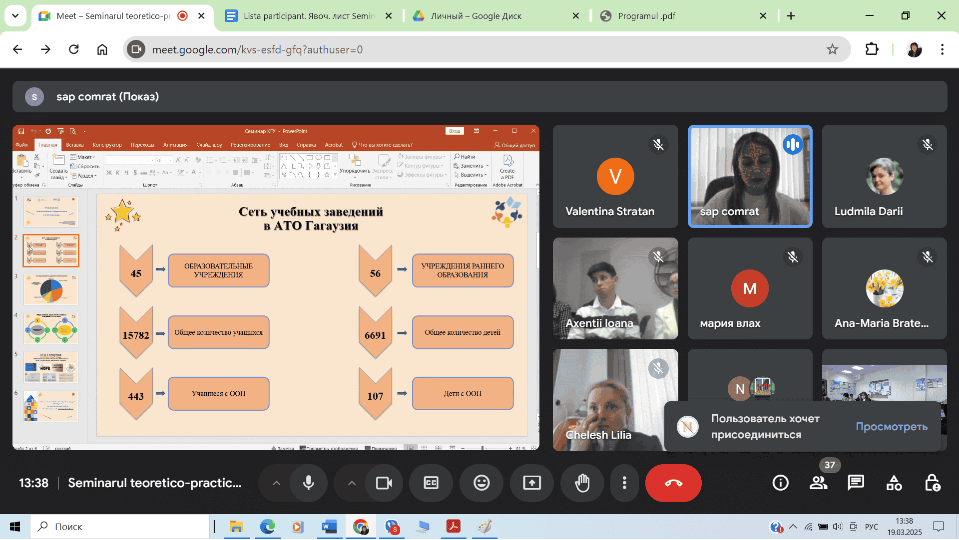 On March 19, 2025, Comrat State University hosted the theoretical and practical seminar with international participation, titled "CONTEMPORARY EDUCATION FROM THE PERSPECTIVE OF DIVERSITY: REALITIES AND PROSPECTS." The event was organized at the invitation of the Department of Pedagogy and Psychology and the Intercultural Education Center. The seminar brought together over 60 participants, including researchers, educators, students, doctoral candidates, and experts from Moldova and Romania, with the aim of analyzing the challenges and opportunities of contemporary education in the context of cultural, social, and educational diversity. The event was organized in collaboration with four partner universities: Comrat State University, Moldova State University, Ion Creangă State Pedagogical University in Chișinău, Bogdan Petriceicu Hasdeu State University in Cahul. This partnership reflects a joint effort to promote cross-border academic dialogue. The seminar addressed topics such as inclusion, educational policies, innovative practices, and the impact of diversity on the educational process. The program included practical sessions, providing participants with opportunities to share best practices and develop solutions for equitable and adaptive education. This initiative emphasized the importance of collaboration between universities, as only through joint efforts can we strengthen a culture of mutual respect and advance education in the spirit of real diversity inclusion. The exchange of experiences and solutions reinforced a shared commitment to fair education, capable of responding to the needs of contemporary society. The event highlighted the significance of inter-institutional cooperation in addressing educational challenges and further strengthened partnerships between participating institutions. Comrat State University expresses gratitude to all participants and organizers for their contribution to the success of this event, which has opened new research and practical perspectives. We consider it essential to continue organizing such seminars in the coming years to support educational progress and intercultural dialogue.