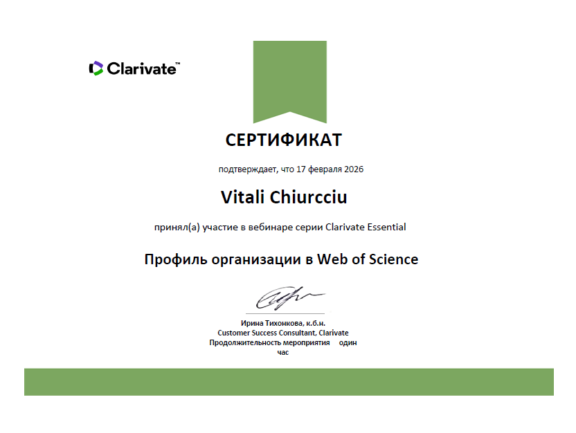 On February 17, 2026, university assistant of the Department of Accounting and Finance, Vitali Сhiurcciu, participated in the webinar “Organization Profile in Web of Science,” organized by Clarivate.