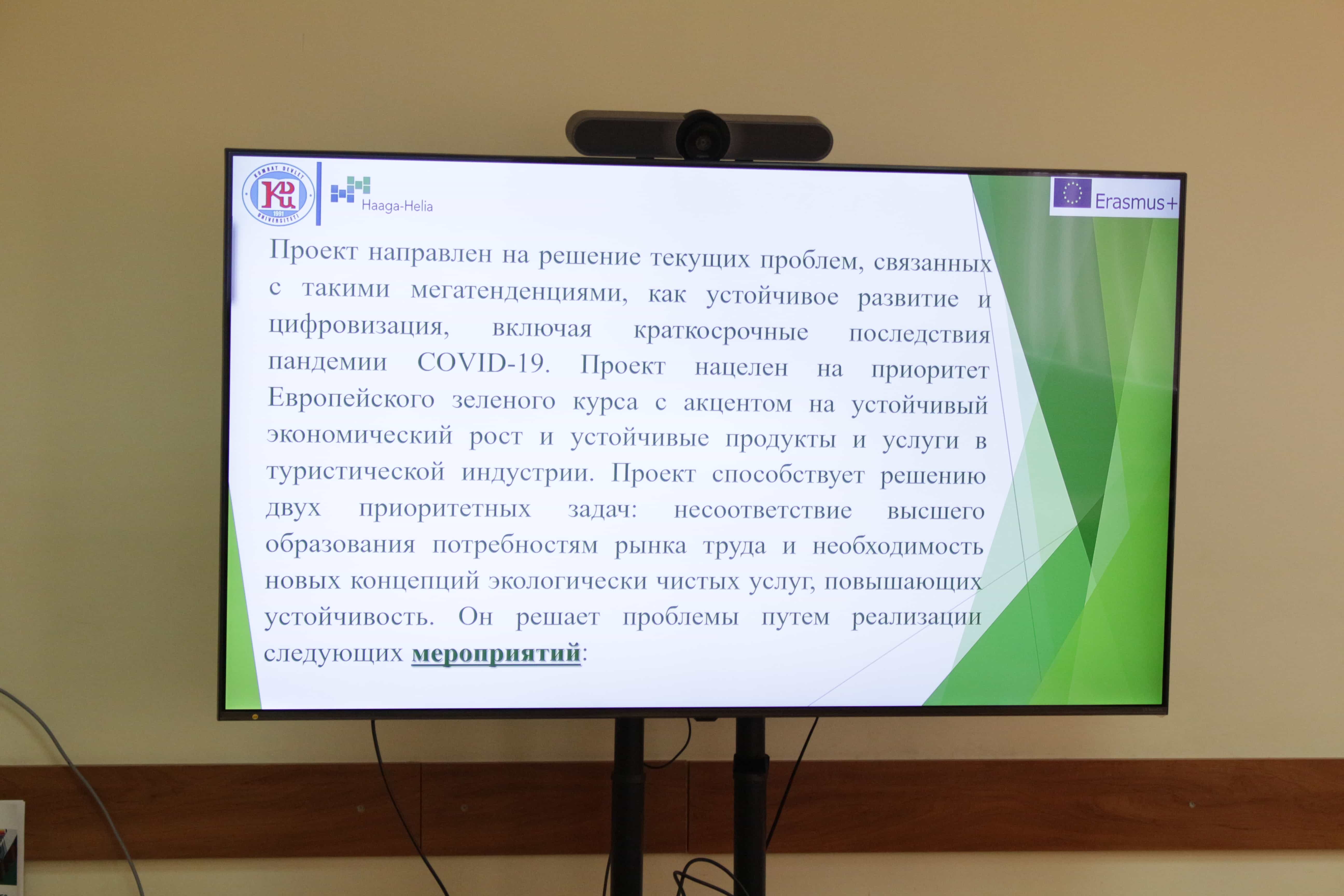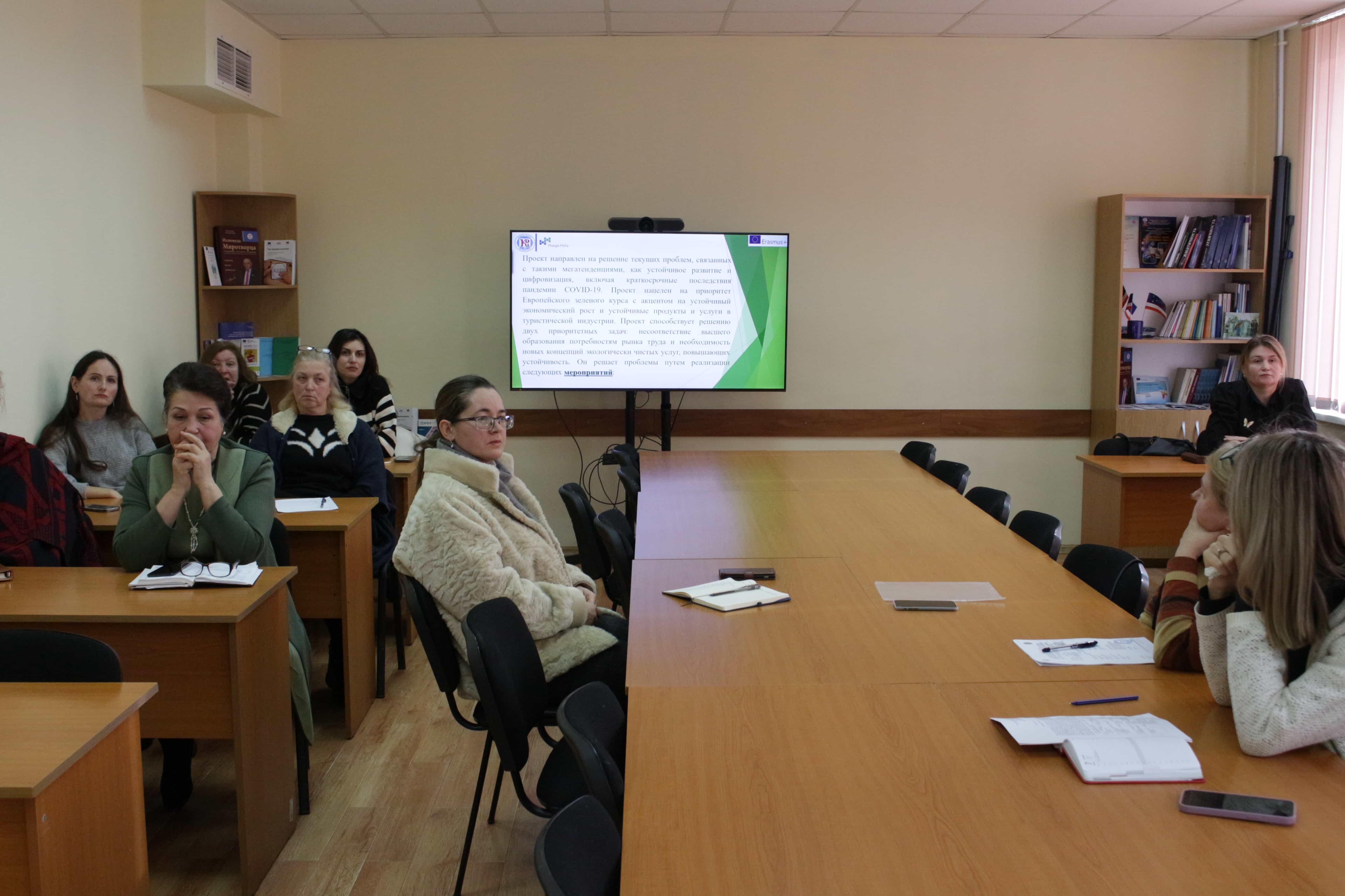 On January 4th, 2024, the open meeting of the Department of Economics took place, on the issue of beginning of implementation of the project “dEsigNing gReen tourIsm Concepts tHrough lEaRning” (ENRICHER hubs – project) ERASMUS-EDU-2022-CBHE-STRAND-2. The grant holder of the project is Haaga-Helia University of Applied Sciences (Finland); the international project coordinator is Nora Lappalainen. The duration of the project is 36 months from 01/01/2024 to 12/31/2026.