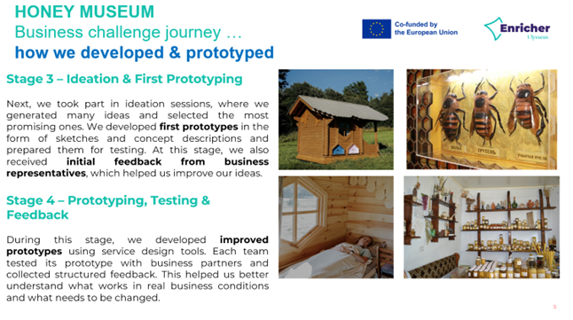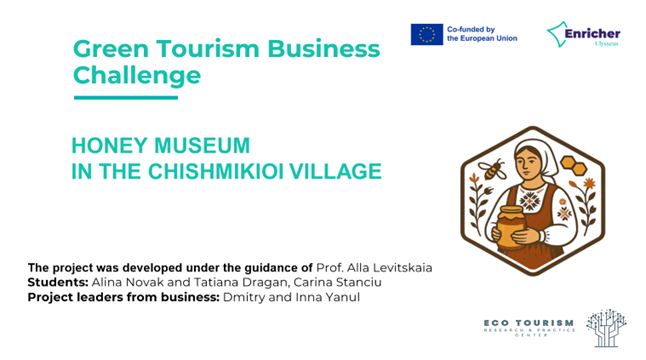 Comrat State University was represented by students from the Faculty of Economics, Alina Novak, Tatiana Dragan, and Karina Stancu, who presented their project, "Creation of a Honey Museum in the Village of Chismikoi (Agro-Pension "Harman")," developed under the supervision of Alla Levitskaia, professor of the Department of Economics and expert of the ENRICHER hubs project. The project aims to develop entrepreneurship, tourism, and the promotion of local products. The project attracted the participants' interest due to its combination of economic, cultural, and educational components. Following the presentations, a discussion and exchange of opinions took place, during which faculty from partner universities provided professional comments, recommendations, and commended the high level of preparation of the student teams.