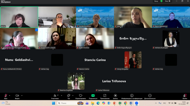 Representatives from Akaki Tsereteli State University (Georgia) and Haaga-Helia University of Applied Sciences (Finland) addressed the participants with welcoming remarks, emphasizing the importance of international academic collaboration, entrepreneurial thinking, and practice-oriented training for students—future specialists in the tourism industry.