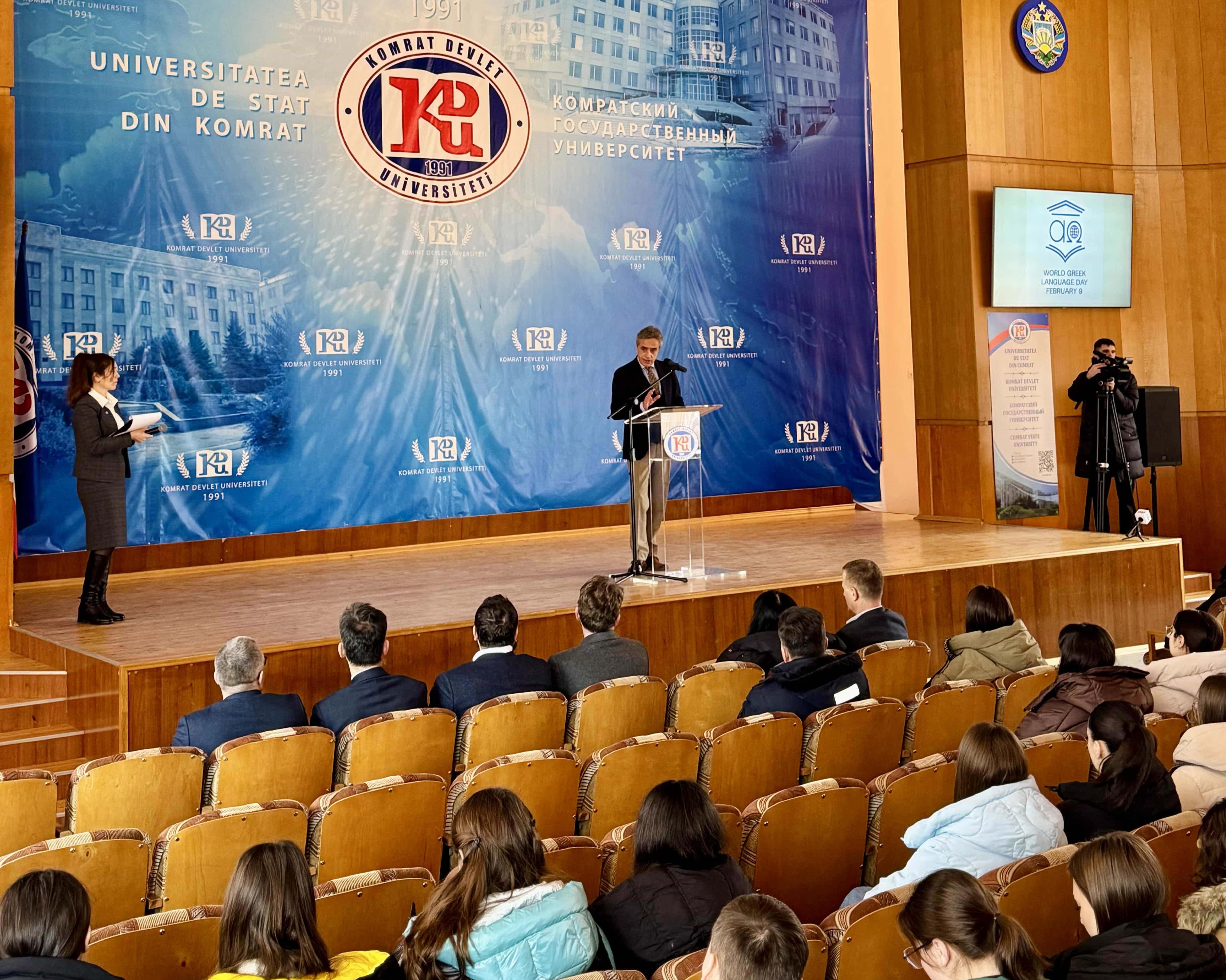 A speech was also delivered by His Excellency Mr. Nikolaos Krikos, Ambassador Extraordinary and Plenipotentiary of the Hellenic Republic to the Republic of Moldova, who stressed the importance of preserving and promoting the Hellenic language beyond the borders of the Hellenic Republic and expressed his appreciation to the State University of Comrat for its contribution to the development of cultural and educational ties.