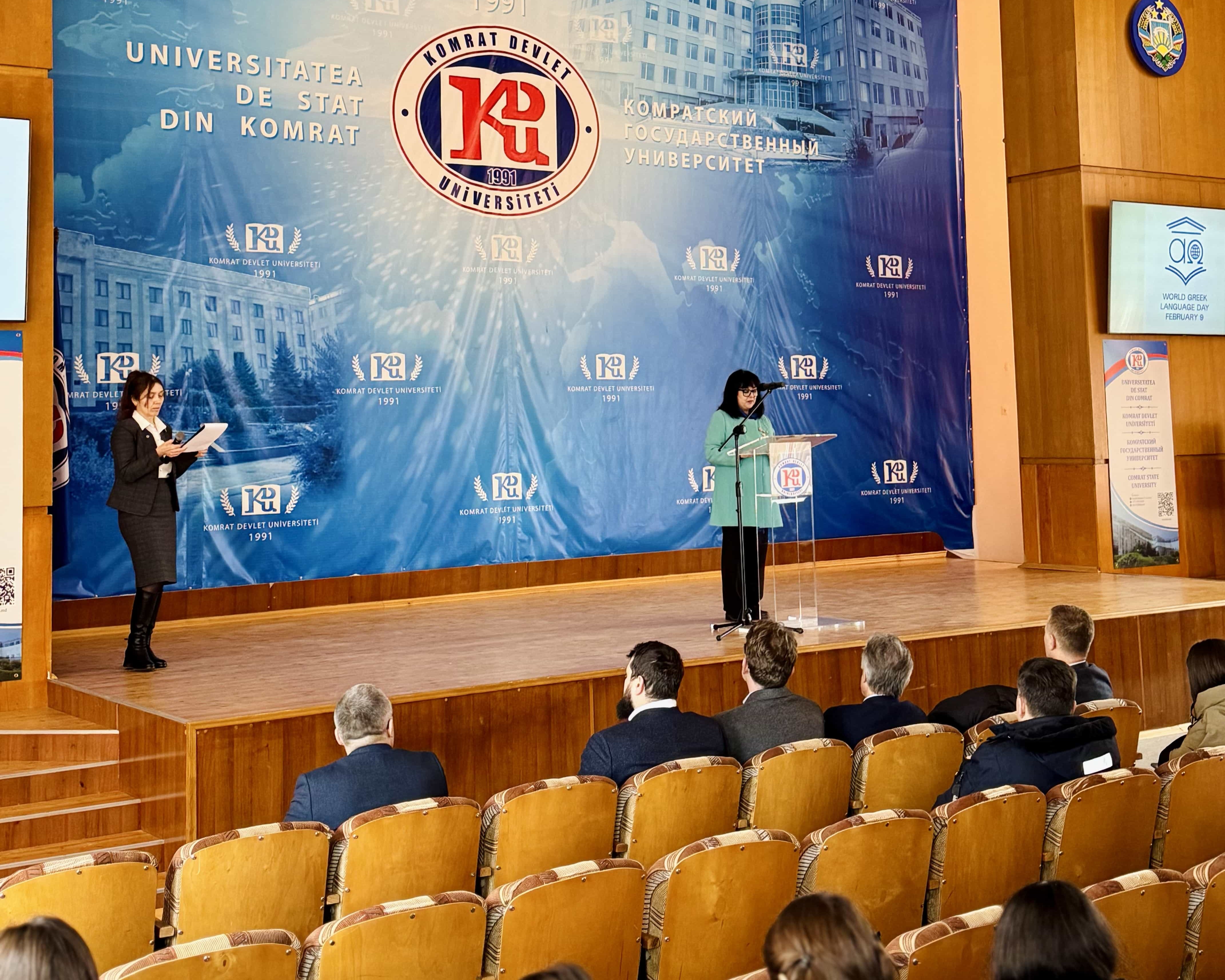 The event was opened with a welcoming address by the Rector of the State University of Comrat, Assoc.,Prof. PhD who emphasized the special role of the Hellenic language as one of the most ancient languages of Europe, which has had a profound influence on the development of science, philosophy, culture, and education. He also underlined the importance of intercultural dialogue and international cooperation, actively supported by CSU.
