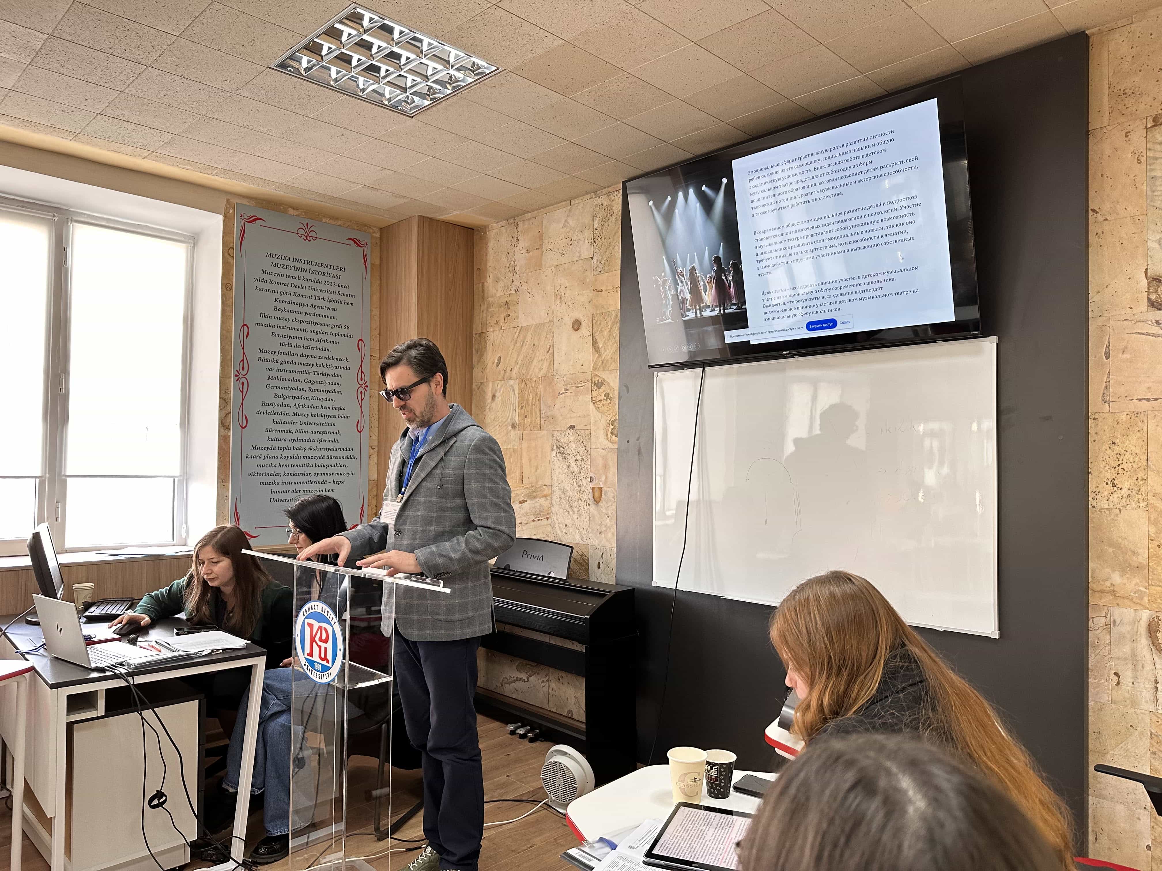 08 Nisan 2025 tarihinde, uluslararası katılımlı Öğrenci Bilimsel hem Uygulamalı Konferansı “Rekabetçi Uzmanların Yetiştirilmesinde Eğitimin Rolü. Öğrenci Araştırmaları – 2025” çerçevesinde 4. Oturum: Müzik Eğitimi: Bilimsel hem Pratik Yönleri düzenlenmiştir. Bu oturumda 21 yazarın 21 bildirisi sunulmak üzere kayıt altına alınmıştır. Sunulan bildirilerde müzik eğitimi hem öğretimiyle ilgili güncel sorunlar gerekçelendirilerek ele alınmış; müzik pedagojisi alanında etkili araçlar haline gelen modern interaktif müzik eğitim yöntemleri tanıtılmıştır. Oturuma M. Çakir Koleji öğrencileri, Komrat Devlet Üniversitesi'nin 1. hem 2. kademe öğrencileri ile Türkiye Cumhuriyeti’nden bir öğrenci aktif olarak katılmıştır. Sunumlar Rumence, Türkçe hem Rusça dillerinde gerçekleştirilmiştir. Tüm katılımcılar konferansın yüksek seviyesini vurgulamış, düzenin netliğinden dolayı teşekkürlerini iletmiş hem bilimsel-mesleki iş birliğinin devamına olan isteklerini ifade etmişlerdir.