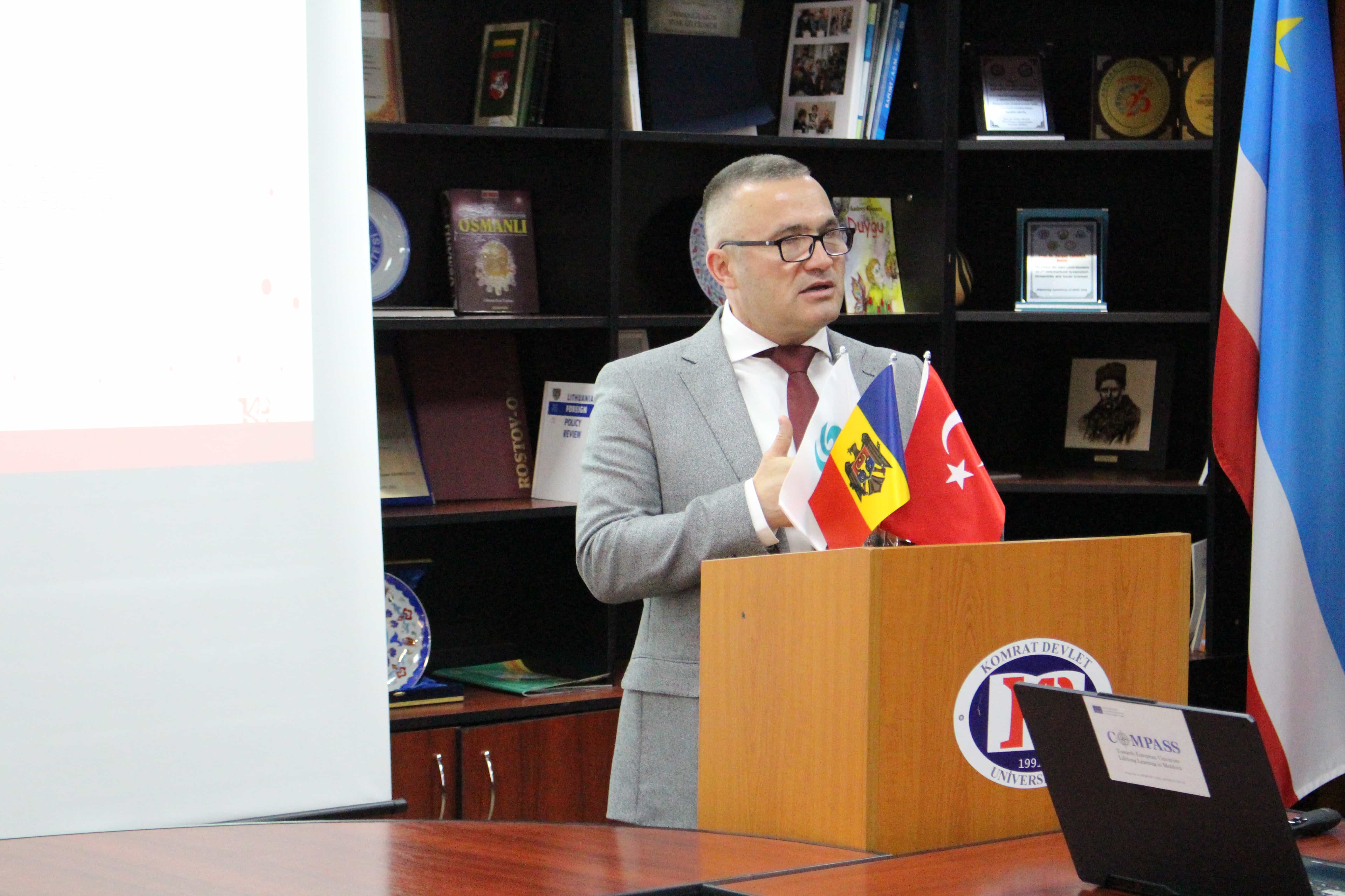 11 Kasım 2022 tarihinde Moldova-Komrat Devlet Üniversitesi Konferans Salonunda Erasmus+ Personel Hareketliliği kapsamında Türkiye Cumhuriyeti'nde Sivas Cumhuriyet Üniversitesi ve Aksaray Üniversitelerini ziyaret eden öğretim elemanları tarafından bir sunum gerçekleştirildi. Programda, Türkiye Cumhuriyeti Komrat Başkonsolosu Sayın Hasan AKDOĞAN onur konuğuydu. AKDOĞAN, gerçekleştirilen faaliyetin Türkiye ile Moldova arasındaki eğitim diplomasisine katkıda bulunduğunu ifade ederek bu tür faaliyetleri artırma noktasında çalışmaların devam ettiğini belirtti.