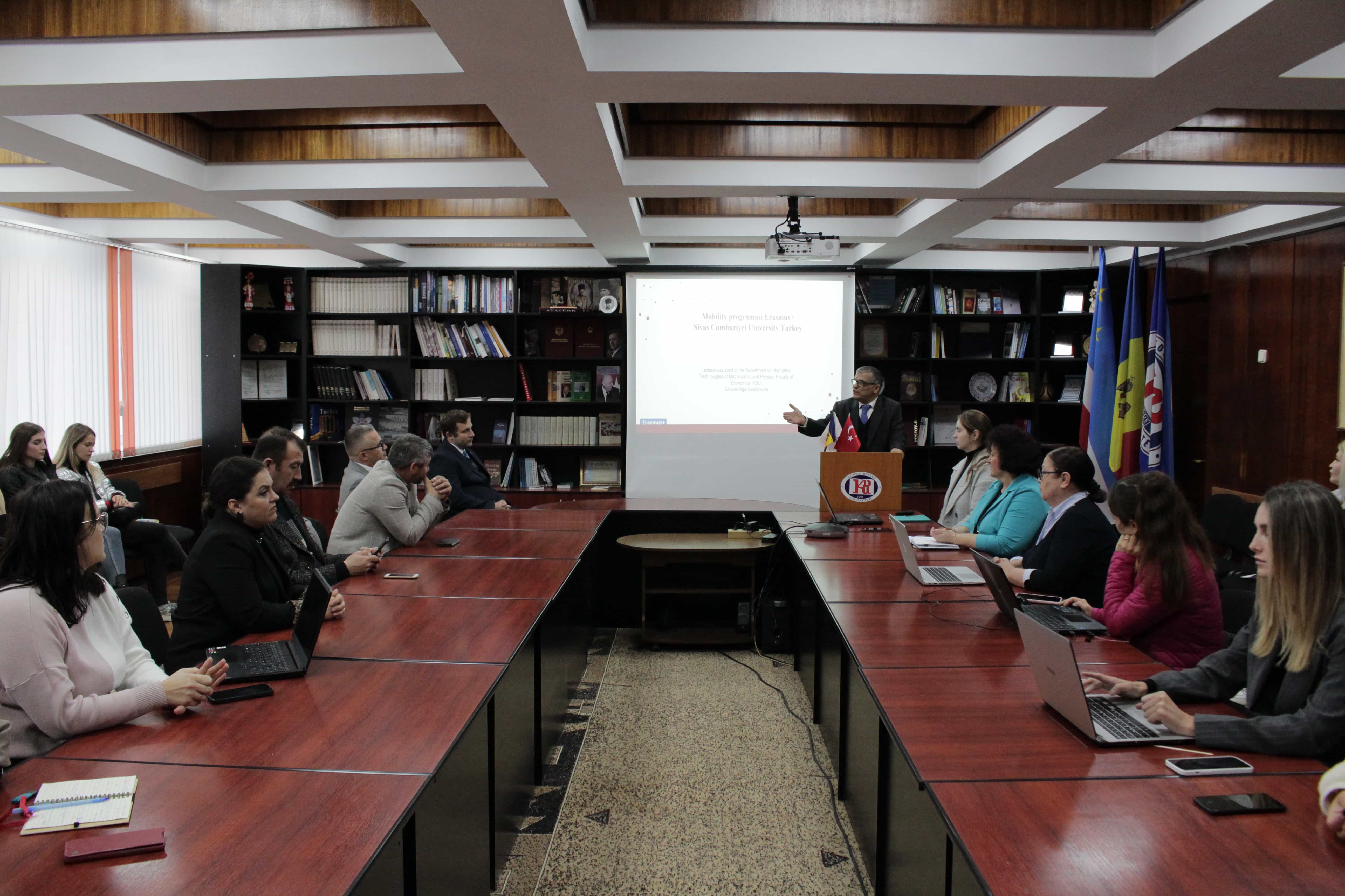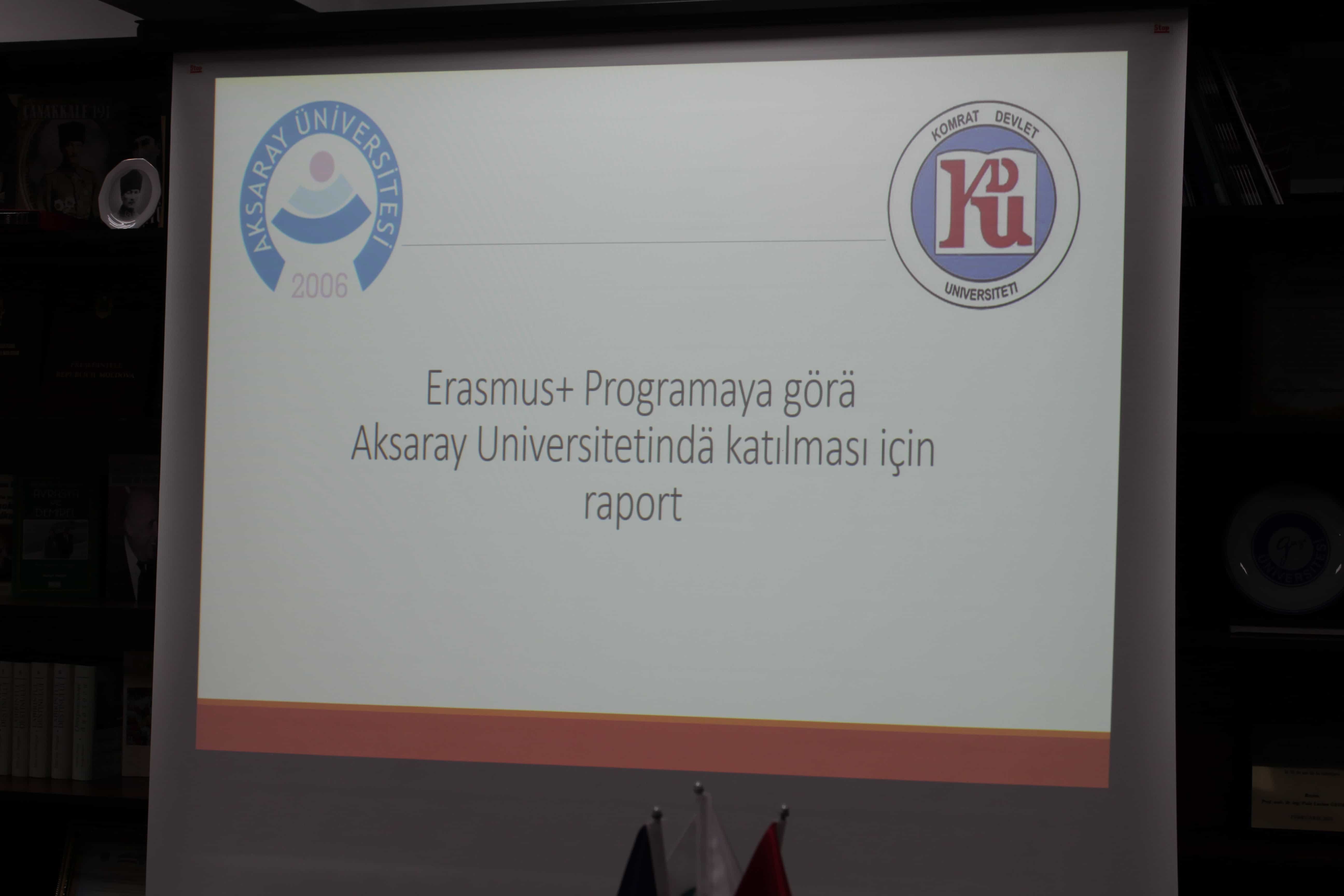 Erasmus + Personel hareketliliği katılımcıları, yapılan çalışmalar hakkında sunumlar yapıp raporlarını sundular, deneyimlerini ve ziyaret edilen üniversitelerin çalışmalarının özelliklerini paylaştılar. Sunum sırasında Sivas Cumhuriyet Üniversitesi, Aksaray Üniversitesi ve Komrat Devlet Üniversitesi arasındaki öğrenci ve öğretim elemanı hareketliliği, akademik değişimin günümüz gerçeklerinde önemi ve Türkiye'nin önde gelen üniversitelerinin deneyimlerinin üniversitemizin gelişimine kazandırılması üzerine fikir alışverişinde bulunuldu.