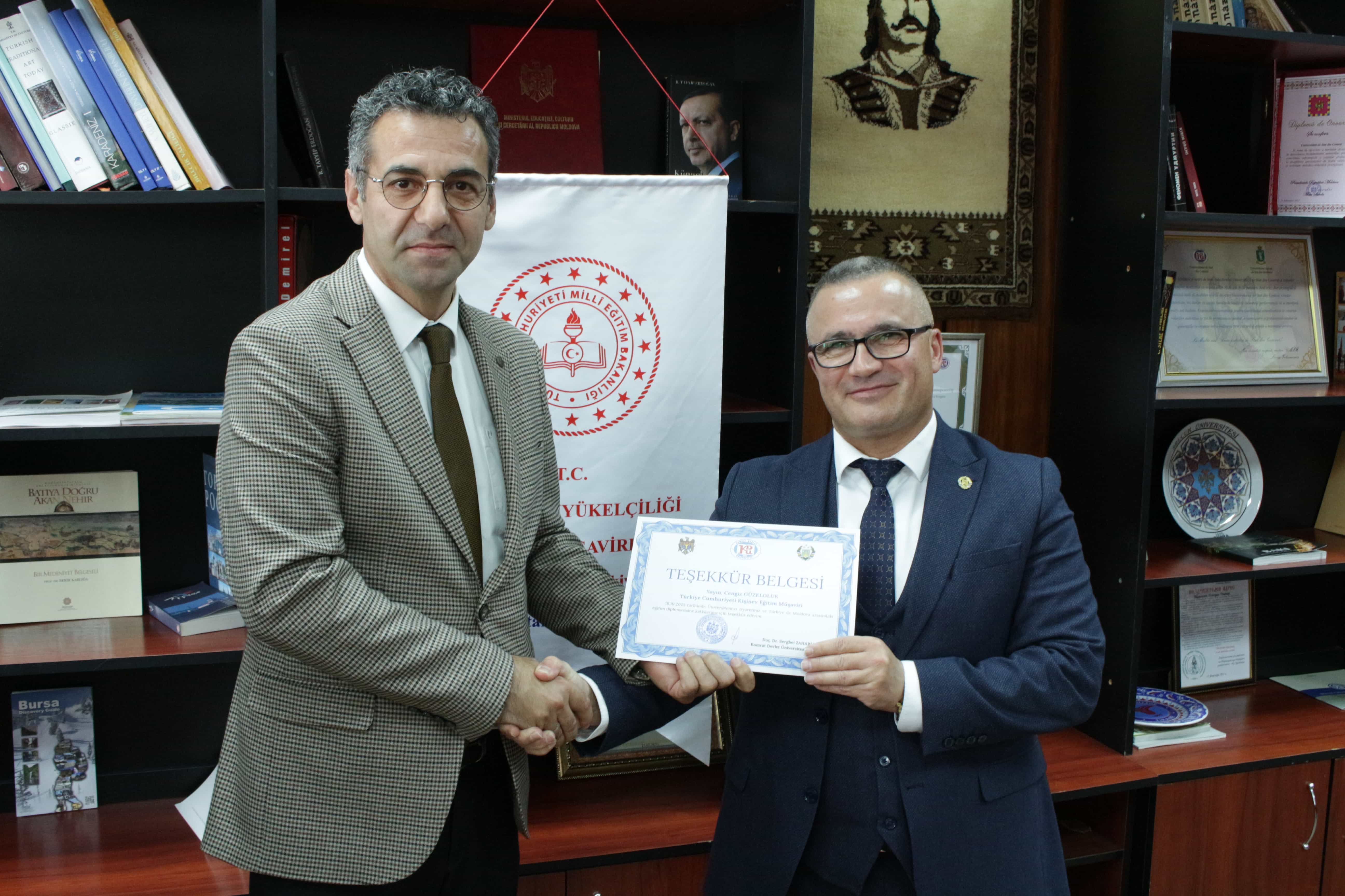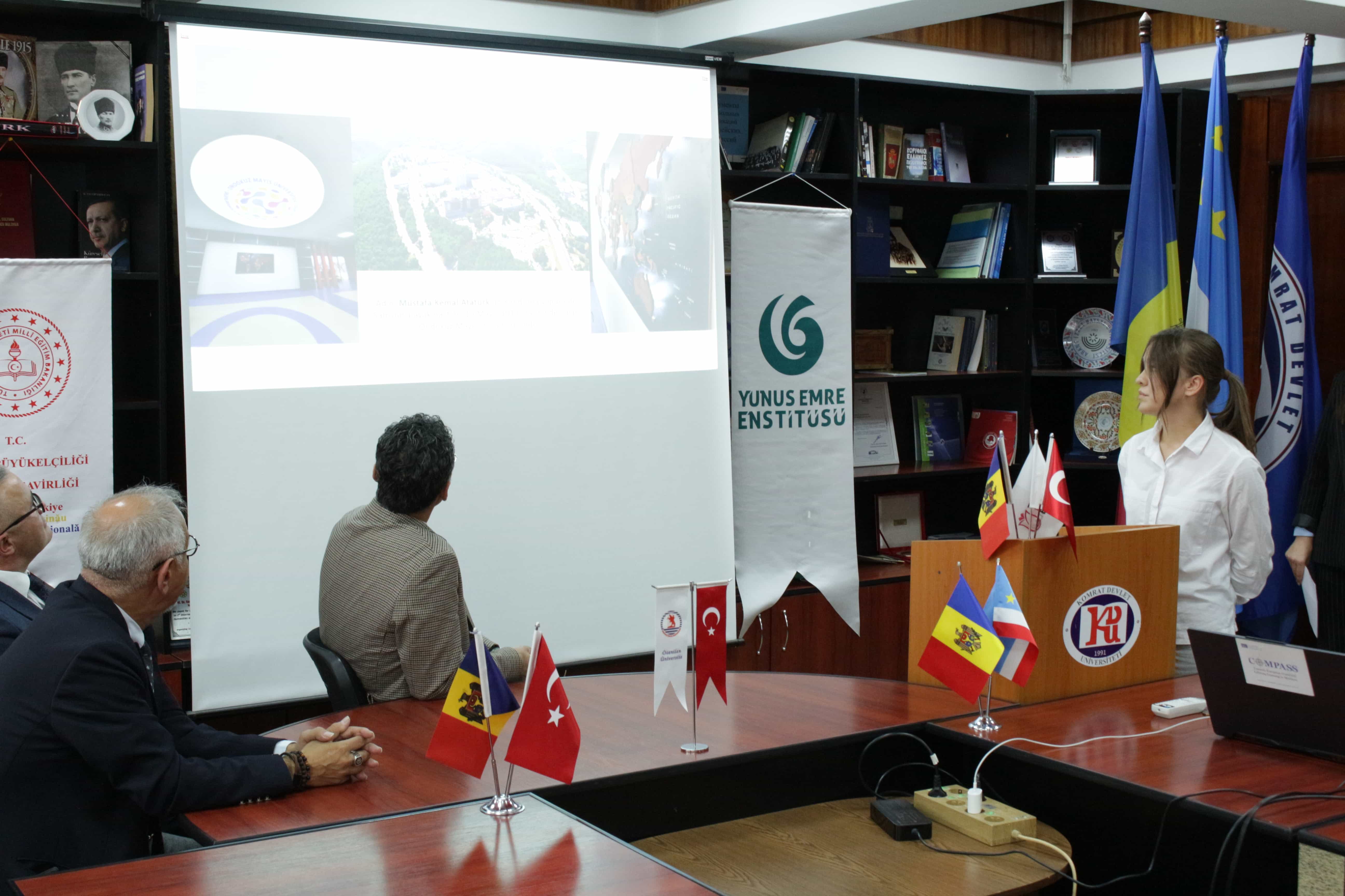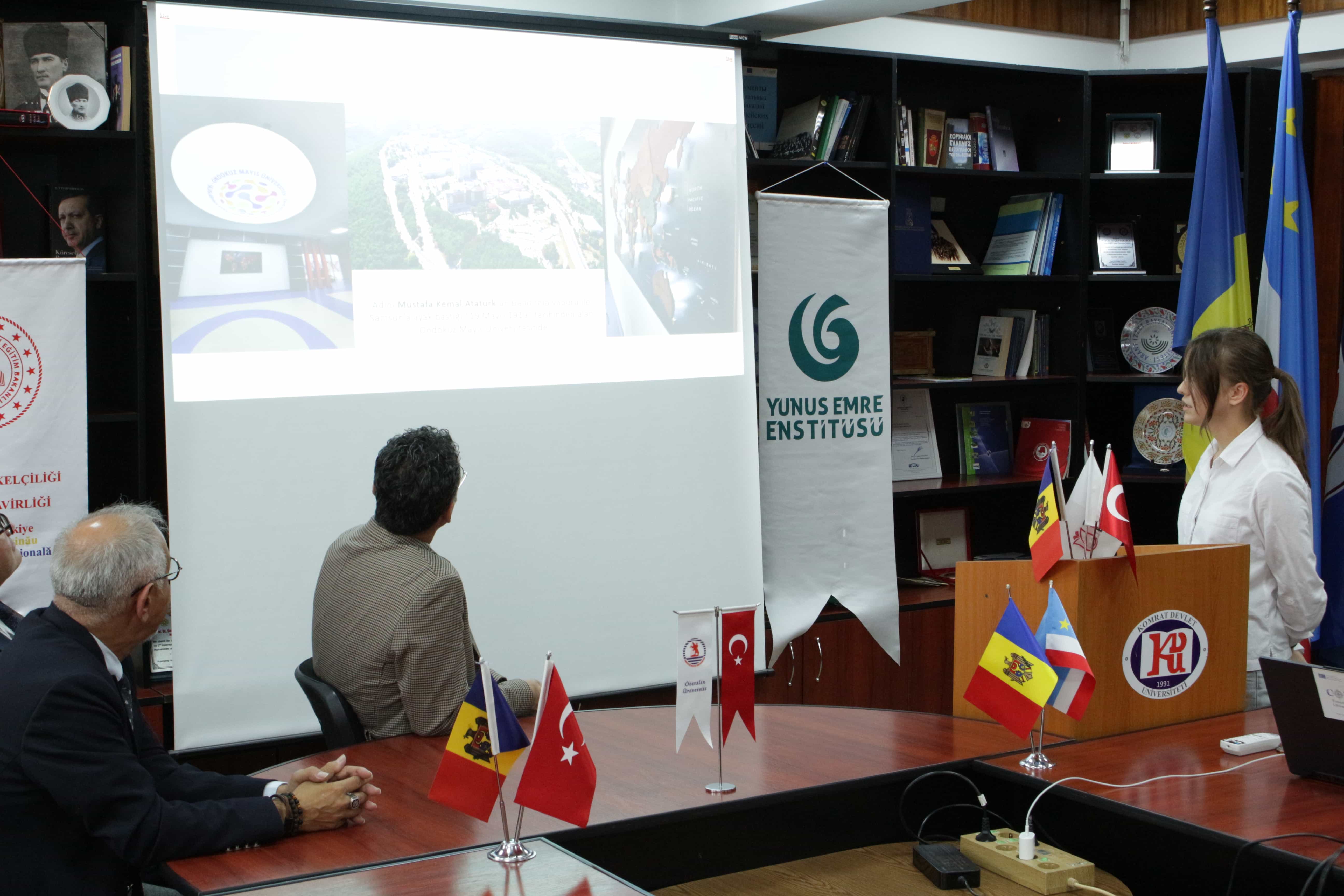 18 Ekim 2023 tarihinde Komrat Devlet Üniversitesi konferans salonunda Erasmus+ Personel Hareketliliği programı kapsamında Türkiye Cumhuriyeti'nde Sivas Cumhuriyet Üniversitesi, Ondokuz Mayıs Üniversitesi ve Nevşehir Hacı Bektaş Veli Üniversitesi'ni ziyaret eden öğrencilerin rapor sunumu gerçekleştirildi. Programın onur konuğu Türkiye Cumhuriyeti Komrat Başkonsolosu Adnan Hayal ve Kişinev Büyükelçiliği Eğitim Müşaviri Cengiz Güzeloluk oldu. Bu programın Türkiye ve Moldova arasındaki eğitim diplomasisine katkıda bulunduğu ve Türkiye ve Moldova'daki üniversiteler arasında hareketliliğe yönelik faaliyetlerin genişletilmesi için çalışmaların devam ettiği de kaydedildi.