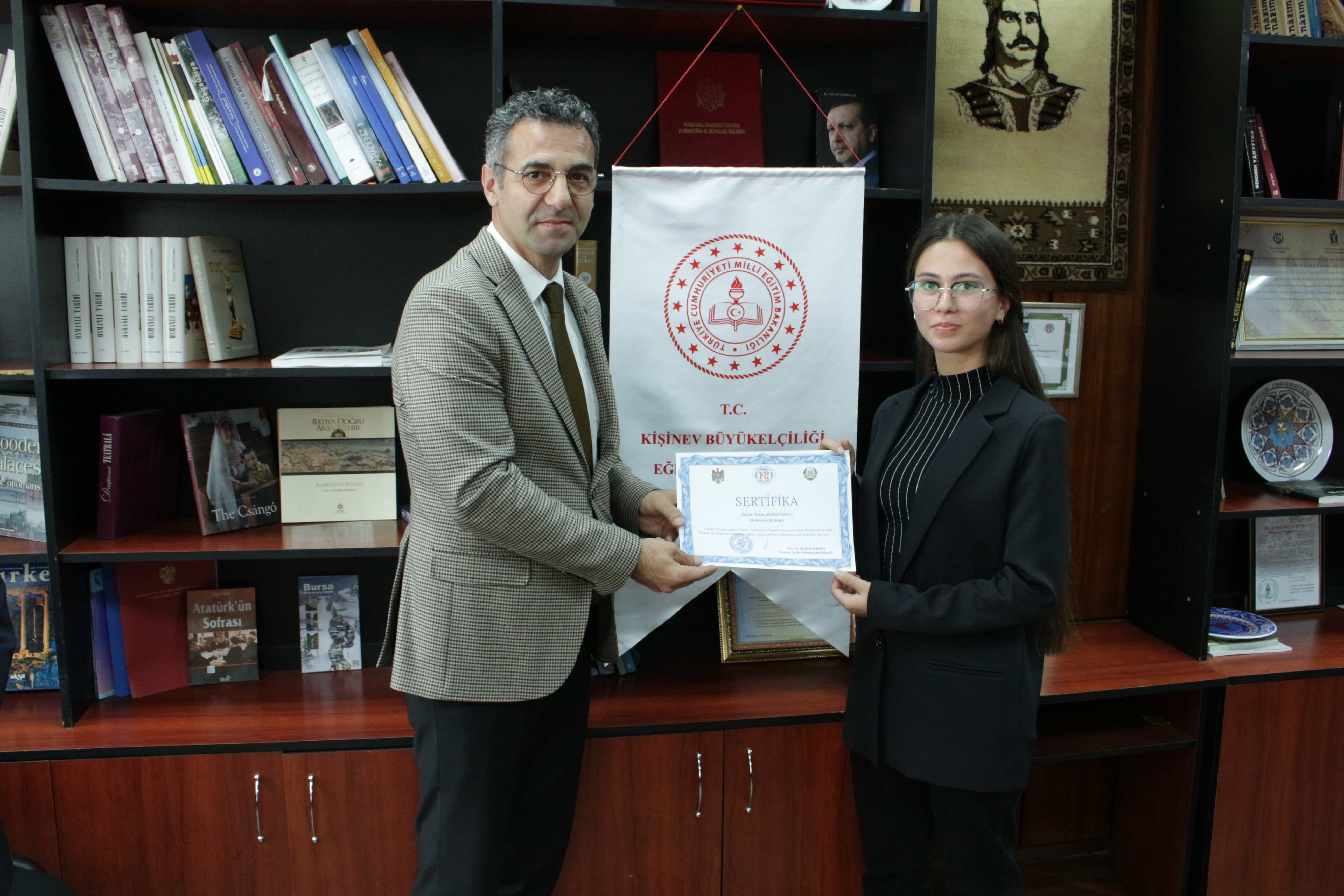 Conferința s-a încheiat cu înmânarea certificatelor participanților la programul Erasmus+, precum și cu înmânarea unui certificat de recunoștință Consulului General al Turciei la Comrat și Consilierului pentru Educație al Ambasadei de la Chișinău.