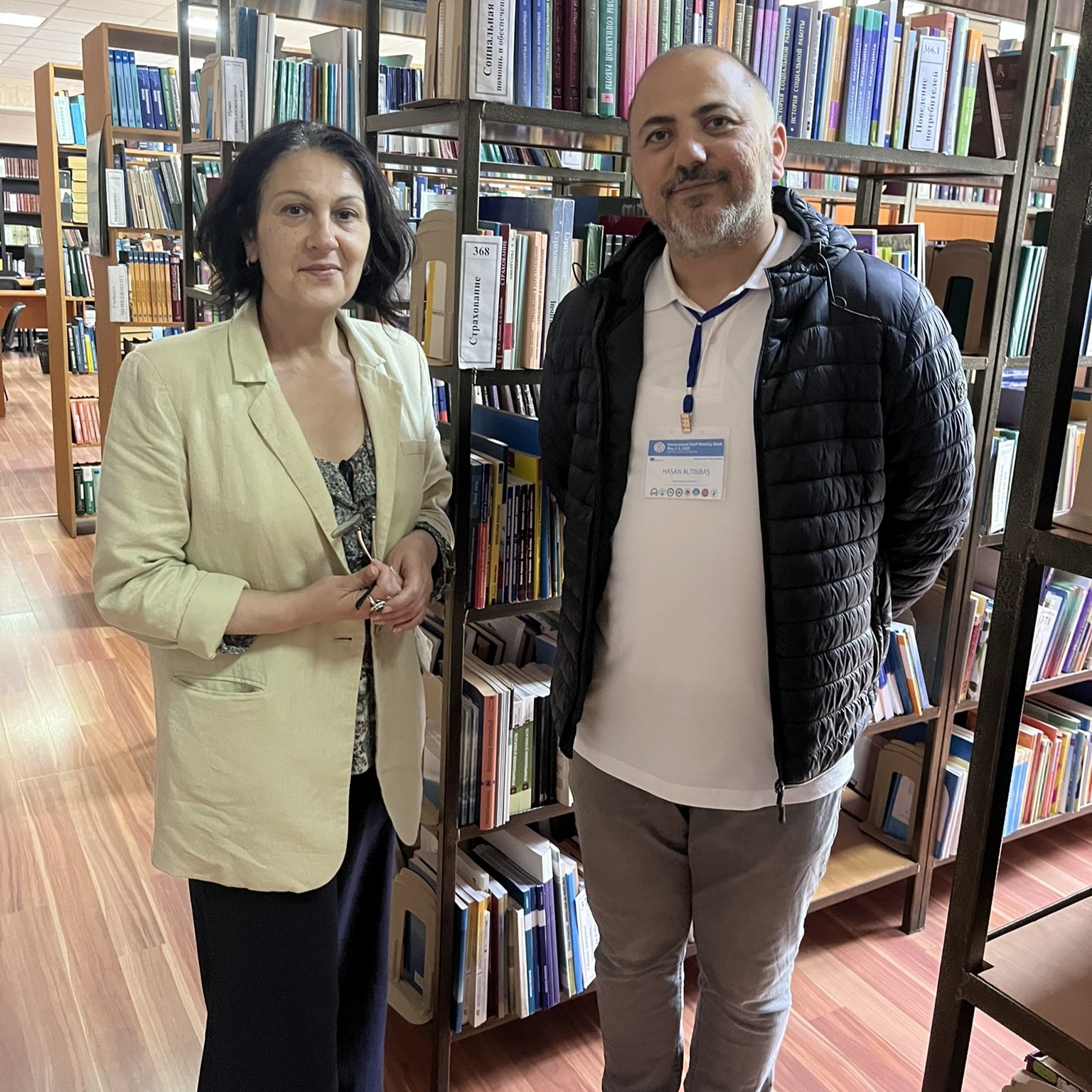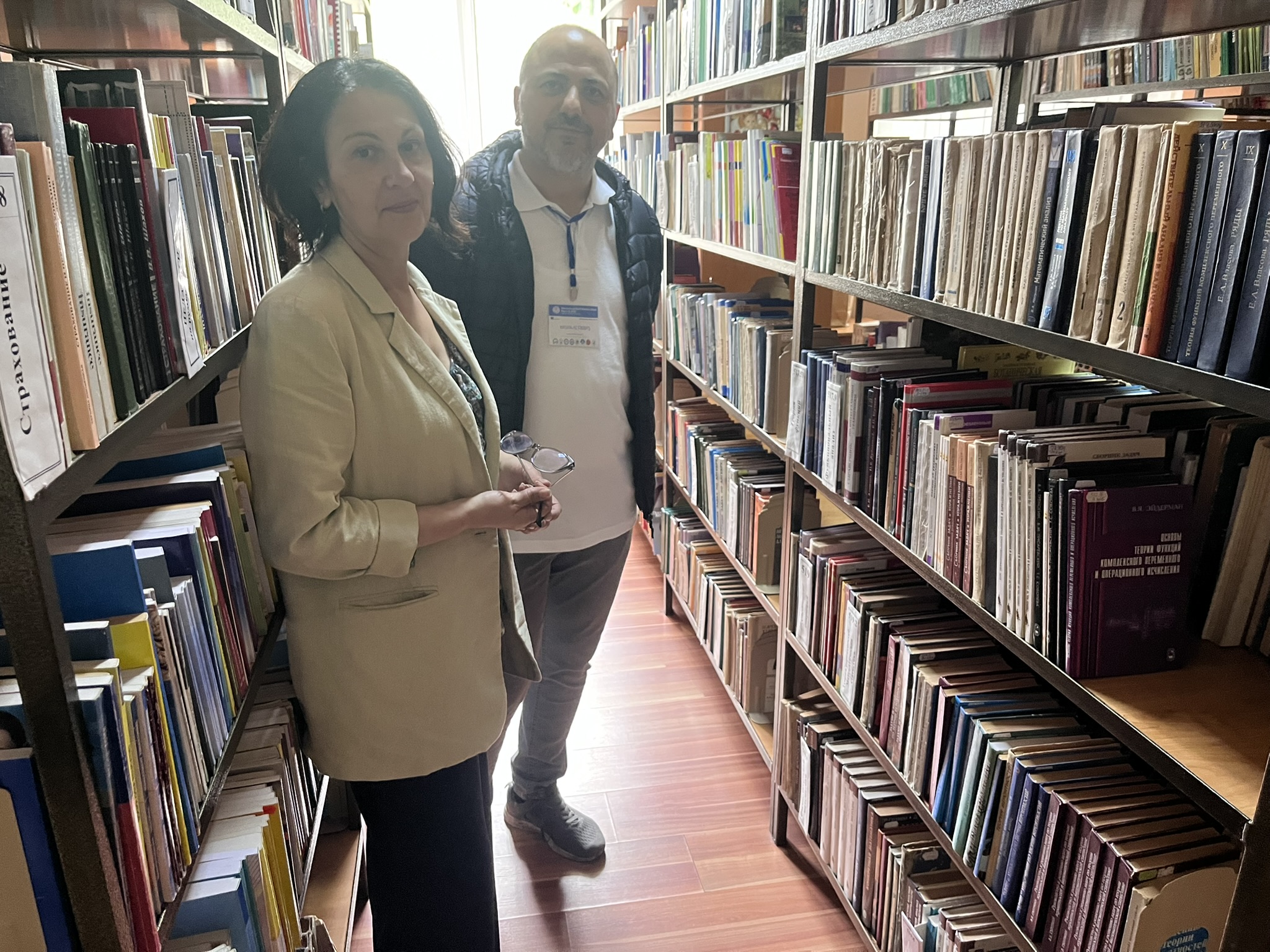 Doç. Dr. Tatiana Velicova ise konuğa üniversitemizi tanıttı. Kütüphane ziyareti sırasında Hasan ALTINBAȘ, üniversitenin matematik alanındaki kaynak koleksiyonunu inceleme fırsatı buldu.