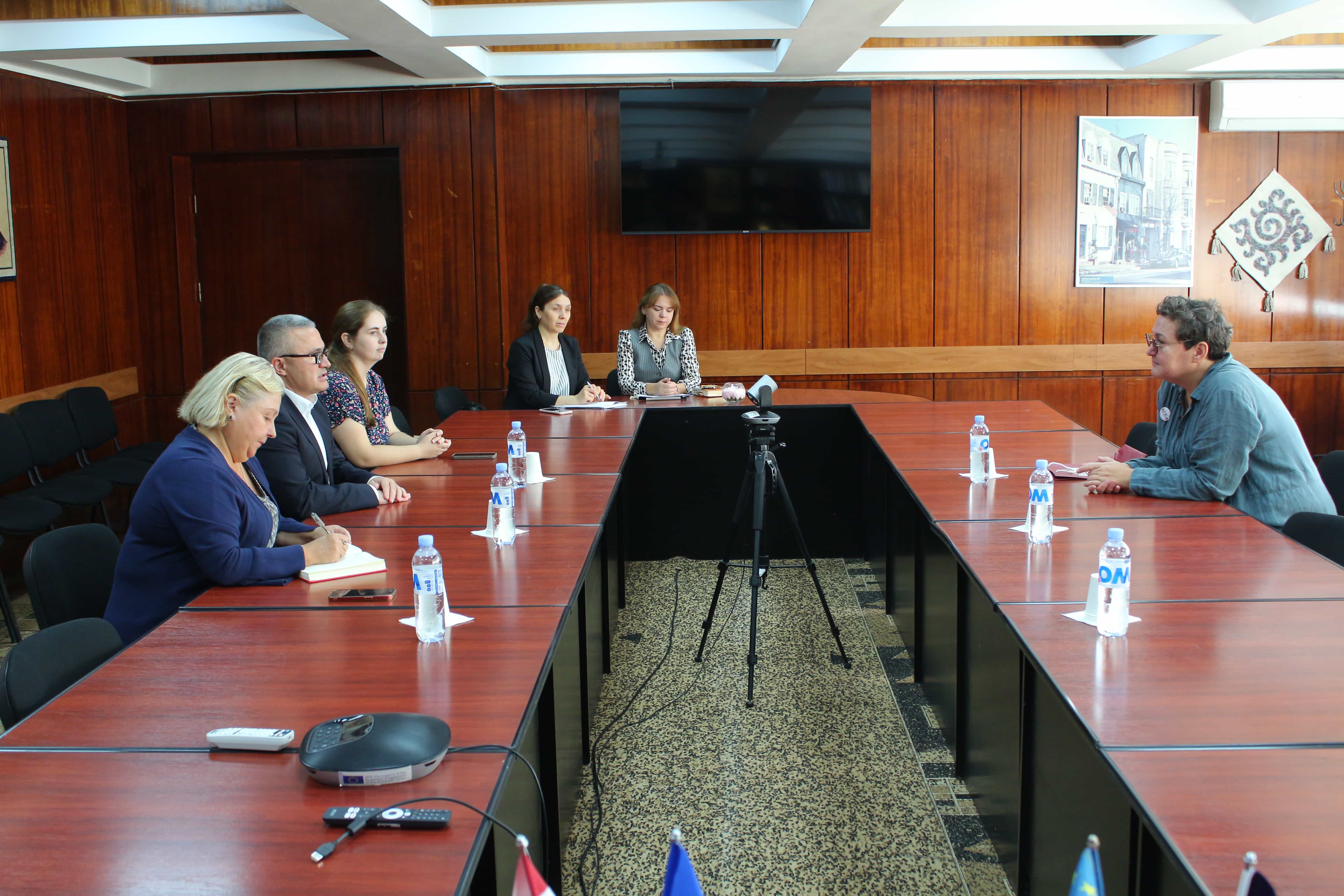 23 Eylül 2025 tarihinde Komrat Devlet Üniversitesi'nde, KDU Rektörü Doç. Dr. Serghei Zaharia, Bilim ve Uluslararası İlişkilerden Sorumlu Rektör Yardımcısı Doç. Dr. Svetlana Ghenova ile Erasmus+ Staff Mobility for Teaching programı katılımcısı — Alberta Koleji’nden (Letonya) Inga Milēviča arasında bir görüşme gerçekleşti. Toplantıya ayrıca KDU Uluslararası İlişkiler ve Proje Faaliyetleri Departmanı temsilcileri, Milli Kültür Fakültesi Dekanı Doç. Dr. Oxana Curteva ve Yabancı Diller Bölüm Başkanı Öğr. Gör. Prascovia Nicolaeva katıldı.