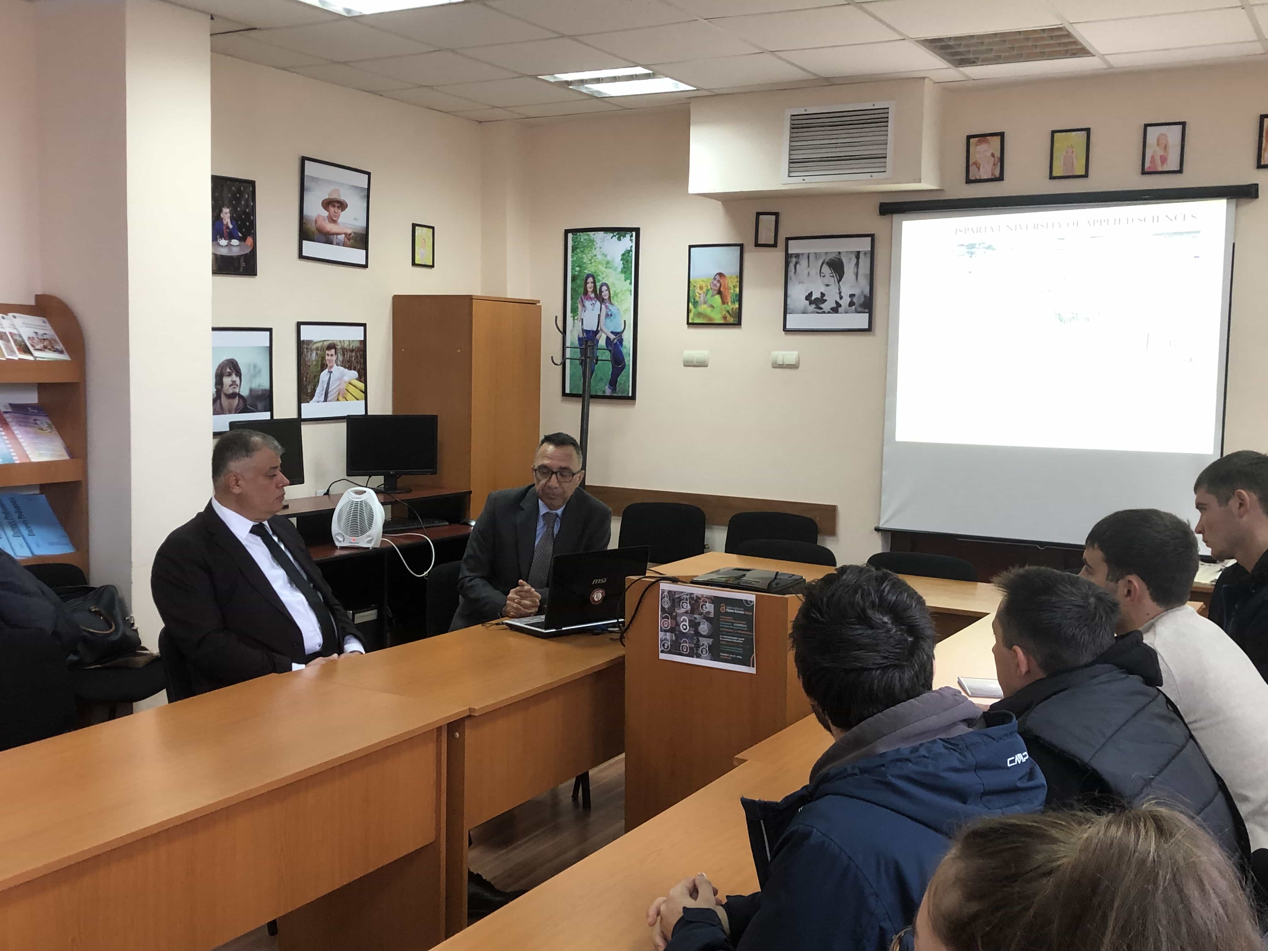 Yükseköğretimin uluslararasılaşması stratejisi çerçevesinde hem Komrat Devlet Üniversitesi ile Isparta Uygulamalı Bilimler Üniversitesi (Türkiye Cumhuriyeti) arasındaki işbirliği anlaşmalarına dayanarak, 4-8 Kasım 2024 tarihleri arasında Tarım Teknolojileri Fakültesi'nde açık dersler kursu düzenlendi. Bu kurs, Isparta Uygulamalı Bilimler Üniversitesi Tarım Fakültesi Dekanı Profesör Deniz Yılmaz hem Profesör Ali Çoşkan tarafından verildi. Profesör Deniz Yılmaz, "Tarım Üretimi Mekanizasyonunda İnovatif Yöntemler: Türkiye Cumhuriyeti'nin Başarılı Uygulamaları" konulu dersler verdi. Profesör Ali Çoşkan ise "Topraklardaki Mikroorganizmaların Rolü hem Toprak Süreçlerine Etkisi" hem "Toprak Özelliklerini İyileştirmek İçin Solucanların Kullanımı" konularında dersler sundu. Komrat Devlet Üniversitesi Rektörü, Doç. Do. Serghei Zaharia uluslararası işbirliğinin güçlendirilmesine olan ilgisini dile getirerek, Profesör Deniz Yılmaz hem Profesör Ali Çoşkan'a derslerin verilmesinde katkılarından dolayı teşekkür etti. İşbirliklerinin yalnızca eğitim sürecini zenginleştirmekle kalmayıp, aynı zamanda bilimsel araştırmaları hem üniversitenin uluslararasılaşmasını da desteklediğini belirtti. Bu dersler dizisi, üniversitenin stratejik hedeflerine ulaşması hem yurtdışındaki üniversitelerle olan işbirliği ilişkilerinin güçlendirilmesinde önemli bir adım oldu. Profesörlerin yüksek profesyonel yeterlilikleri hem pedagojik deneyimleri, fakülte öğrencileri için eğitim sürecini önemli ölçüde güçlendirmiş, araştırma çalışmalarının gelişimine önemli bir katkı sağlamış hem fakültenin uluslararası işbirliği hem eğitim kalitesinin artırılması alanındaki stratejik hedeflerine ulaşmasına katkıda bulunacaktır.