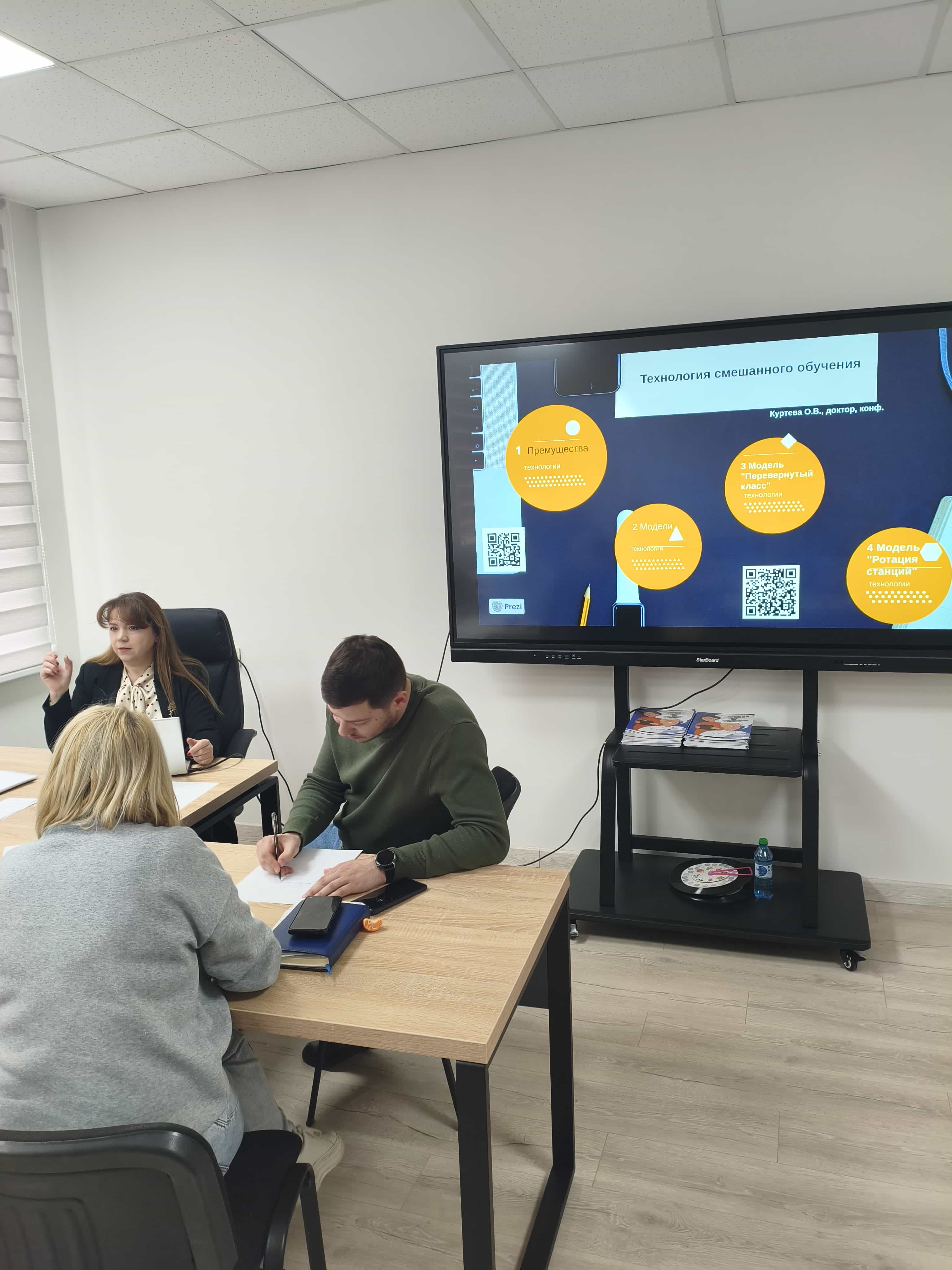 İnteraktiv lektsiyanın teması — “Karışık ögrenme (blended learning) eğitim teknolojiyası” oldu. Bu derstin maksadı magistrantları tanıştırmak oldu çağdaş modellerlan, angıları birleştirer tradicional hem digital ögrenme formalarını, hem da gelecek eğitim menedjerlerinä inovatsion pedagogika teknolojiyalarını praktikada kullanmak becerilerini kurmak.