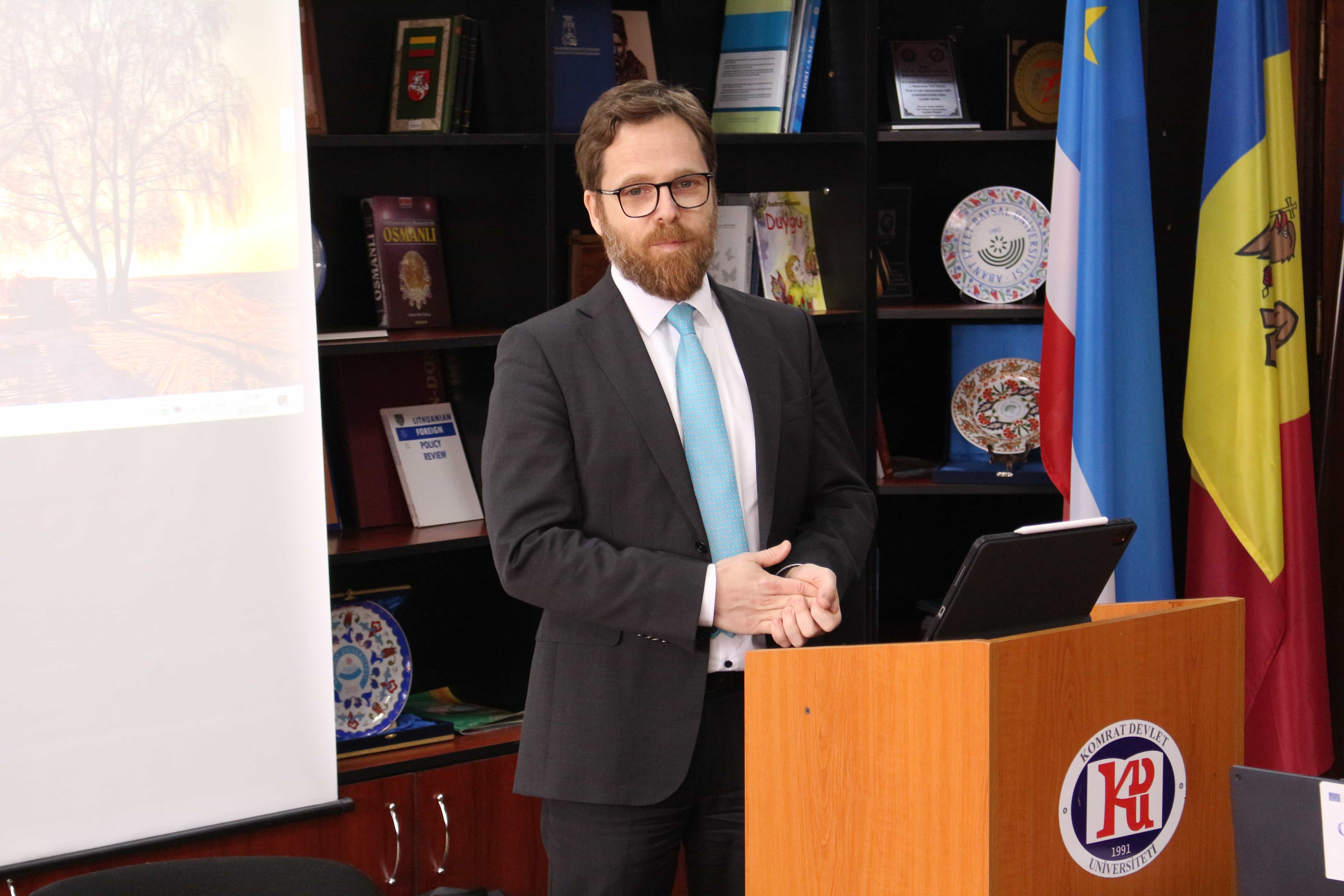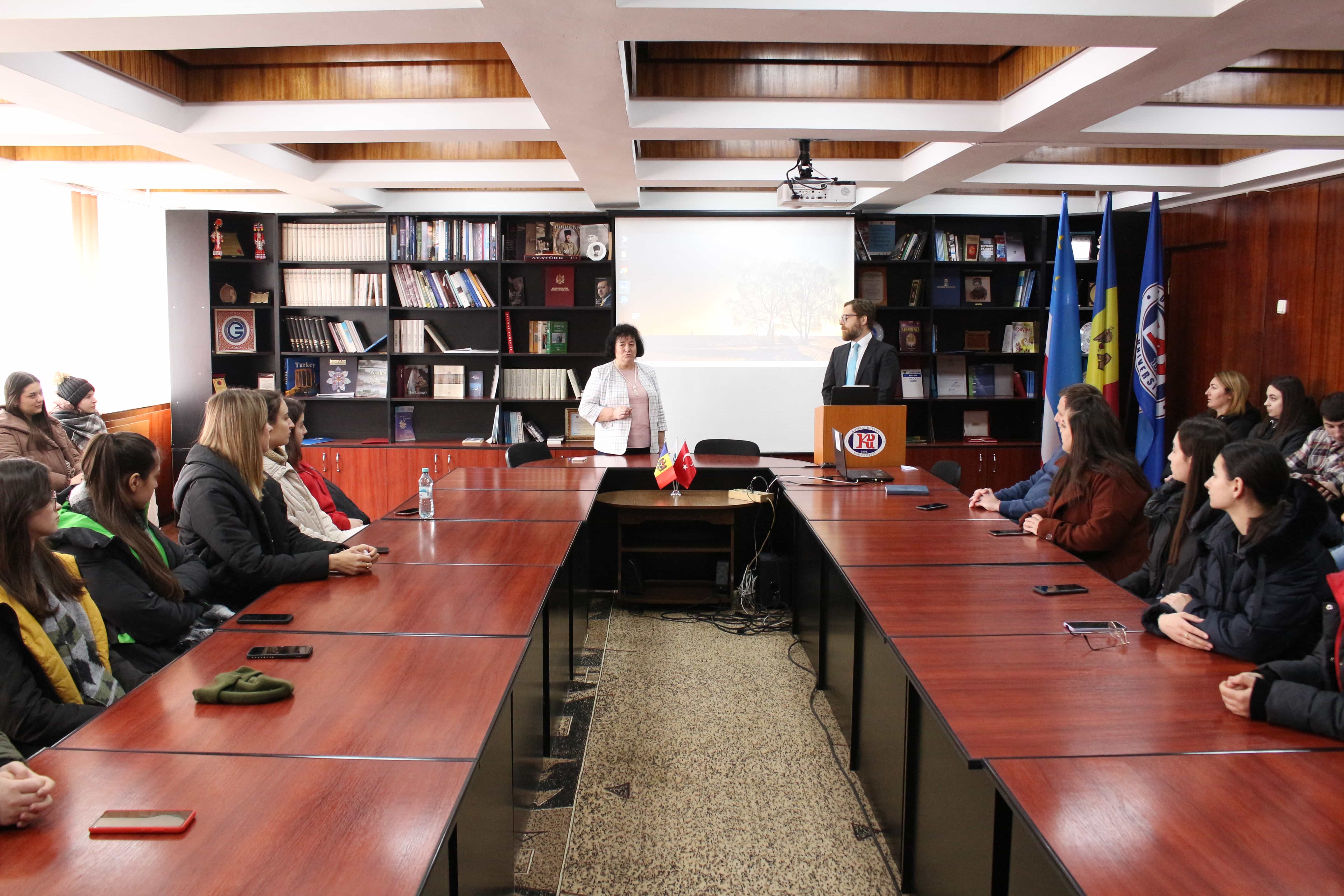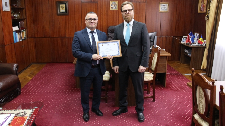 28 Şubat 2023 tarihinde Komrat Devlet Üniversitesi, Litvanya'nın Moldova Cumhuriyeti'ndeki Büyükelçisi Sayın Tadas Valionis tarafından ziyaret edildi. Tadas Valionis, öğrenciler ile bir araya gelerek Litvanya ve Moldova arasındaki eğitim diplomasisine katkılar hakkında öğrencilerimizle görüştü. Öğrencilerle buluşmanın ardından ziyaret, Sayın büyükelçinin Komrat Devlet Üniversitesi Rektörü Doç. Dr. Serghei ZAHARIA ile görüşmesiyle devam etti. Rektörümüz, Sayın büyükelçiyi üniversite ile ilgili bilgilendirdi. Toplantı sırasında Moldova ve Litvanya üniversiteleri arasındaki bağların geliştirilmesine yönelik önemli stratejik konular konuşuldu. Sayın büyükelçiye verilen teşekkür belgesi ile ziyaret sona erdi.