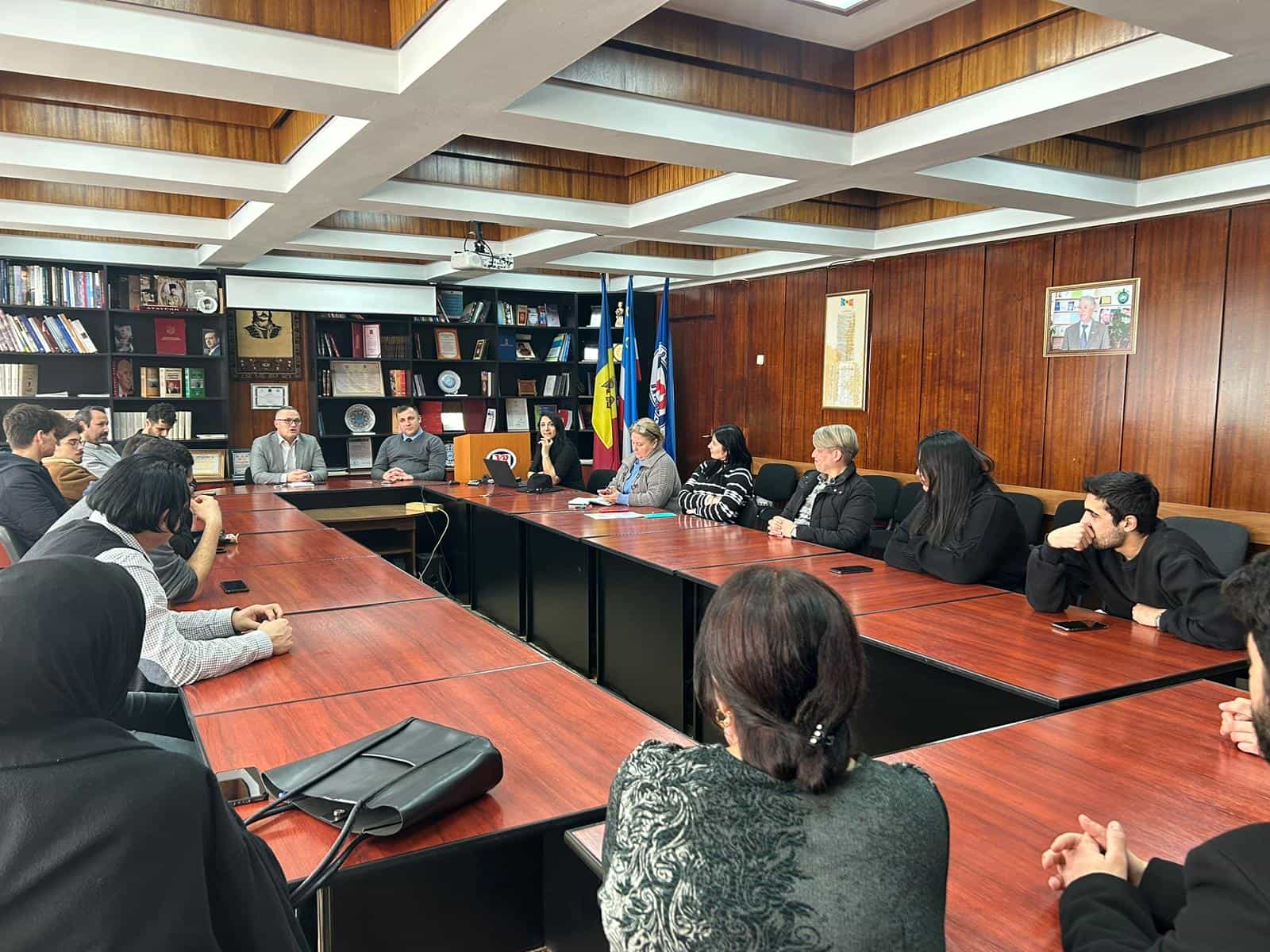 26.03.2024 tarihinde Komrat Devlet Üniversitesi Senato Odasında, Türkiye’den gelen öğrenciler ile bir araya gelen Rektörümüz Doç. Dr. Serghei ZAHARIA, Türk öğrencilerin oryantasyon sürecinde yaşadığı problemlerin temel konu alındığı bir toplantı gerçekleştirdi. Toplantıda, Komrat Devlet Üniversitesi Rektör Yardımcısı Doç. Dr. Svetlana GENOVA, Türk Dili ve Edebiyatı Bölümü öğretim üyesi ve Uluslararası İlişkiler ve Türkiye Koordinatörü Dr. Kudret Safa GÜMÜŞ, Türk Dili ve Edebiyatı Bölümü öğretim üyesi Dr. Seyfullah ÖZTÜRK de yer aldı.