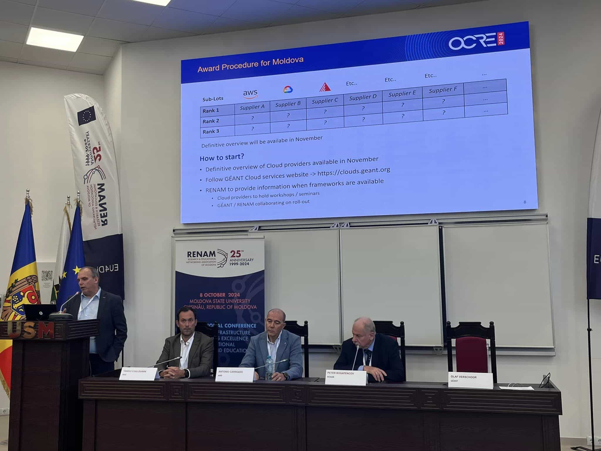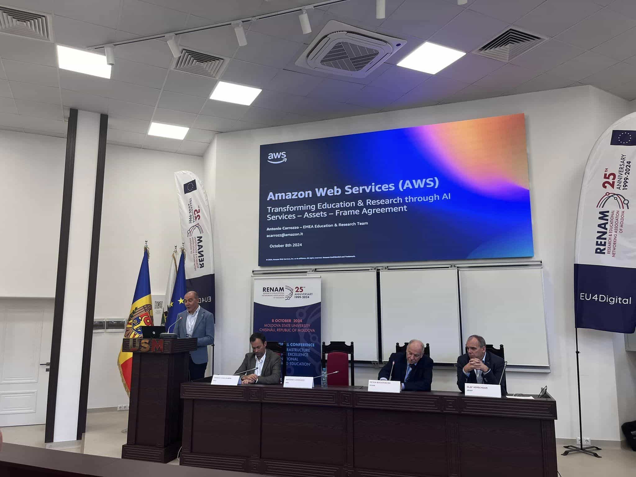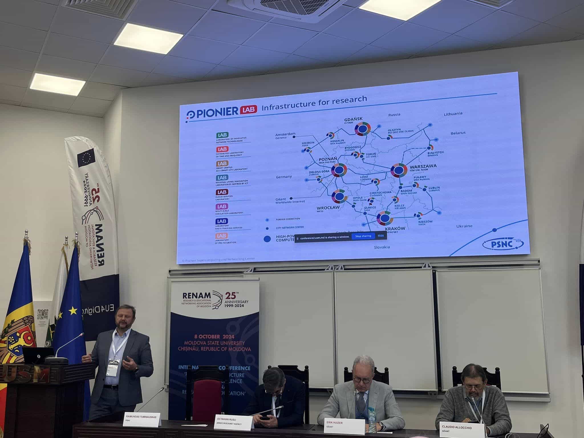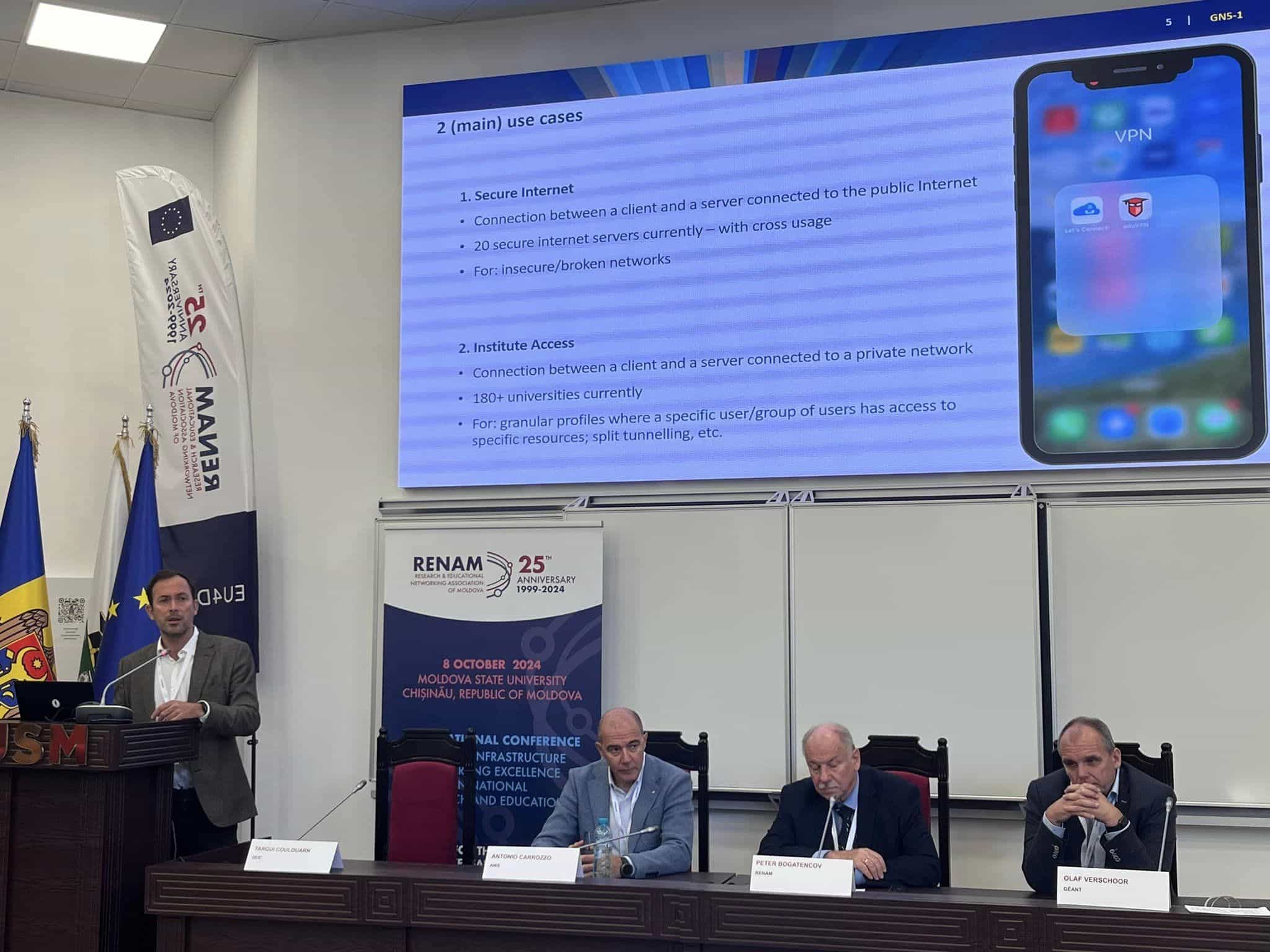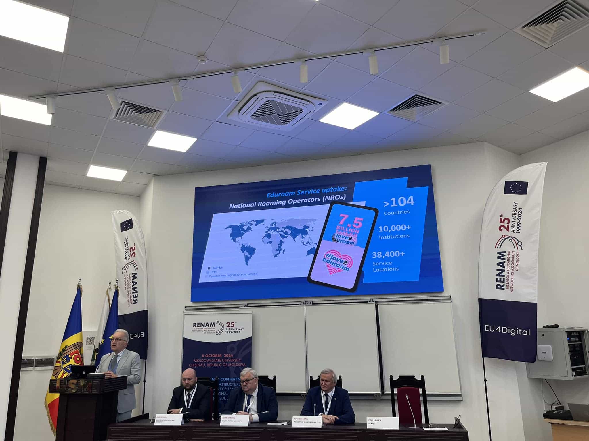 8 Ekim 2024 tarihinde, Ekonomi Bölümü Profesörü, Ekonomi Bilimleri Doktoru Alla Levitskaya ve Bilgi Teknolojileri, Matematik ve Fizik Bölümü Üniversite Konferansı Doktoru Tatyana Velikova, RENAM Derneği, Moldova Devlet Üniversitesi ve Avrupa genelindeki akademik ağ GÉANT tarafından Moldova Eğitim ve Araştırma Bakanlığı, Moldova Bilimler Akademisi’nin desteğiyle ve AB tarafından finanse edilen “EU4Digital: Araştırma ve Eğitim Topluluklarını Birleştirme (EaPConnect)” projesi kapsamında düzenlenen, RENAM Ulusal Araştırma ve Eğitim Ağı’nın 25. yıldönümüne adanmış “RENAM Elektronik Altyapısı - Ulusal Araştırma ve Eğitimde Mükemmelliği Destekleme” Uluslararası Konferansı’na katıldılar. Konferans, Moldova Devlet Üniversitesi’nde gerçekleşti. Konferansın yıldönümü olması nedeniyle, davetli konuşmacılar RENAM’ın kuruluşu, ağın gelişimi, ortaklar ve gelecekteki planlar hakkında konuştular. RENAM altyapısının eğitim ve bilimi desteklemesi, GEANT omurga ağı, GEANT hizmetleri, açık eğitim kaynakları ve AI aracılığıyla eğitimin dönüşümü ile ilgili konular ele alındı. Konferans katılımcıları, ulusal ve uluslararası uzmanlarla iletişim kurma fırsatı buldular. Konferansın tam programı şu bağlantıda mevcuttur: https://events.geant.org/event/1641 .
