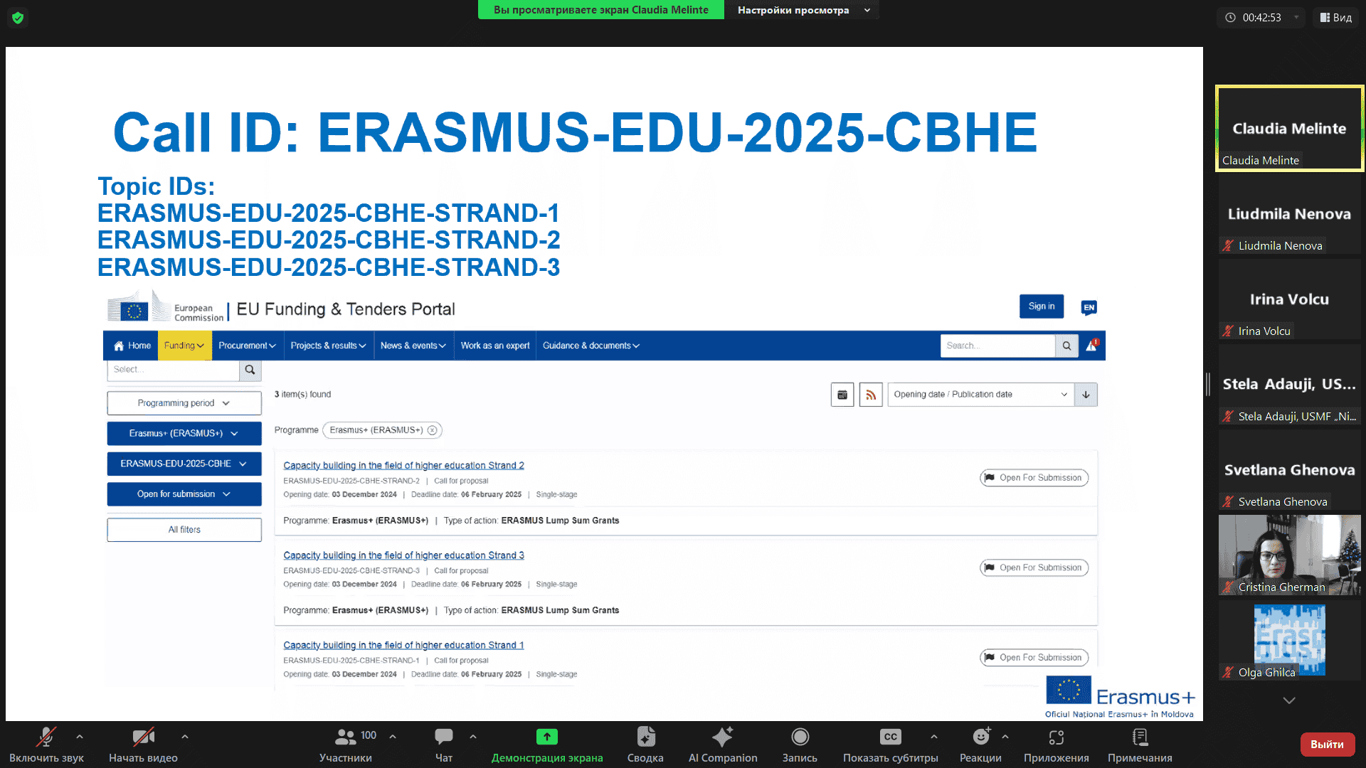 10 Ocak 2025 tarihinde, Moldova'daki Erasmus+ Ulusal Ofisi, Moldova Cumhuriyeti Eğitim hem Araştırma Bakanlığı ile iş birliği içinde “2025 Call: How to Write a Good Project Proposal?” başlıklı çevrim içi bir eğitim semineri düzenledi. Etkinliğe, Komrat Devlet Üniversitesi Uluslararası İlişkiler hem Proje Faaliyetleri Bölümü personeli hem öğretim üyeleri dahil olmak üzere çok sayıda katılımcı katıldı. Bu seminer, Erasmus+ programının 2025 yılına dair yeni fırsatlarını anlamak hem proje yazma becerilerini geliştirmek adına önemli bir eğitim platformu oldu.
