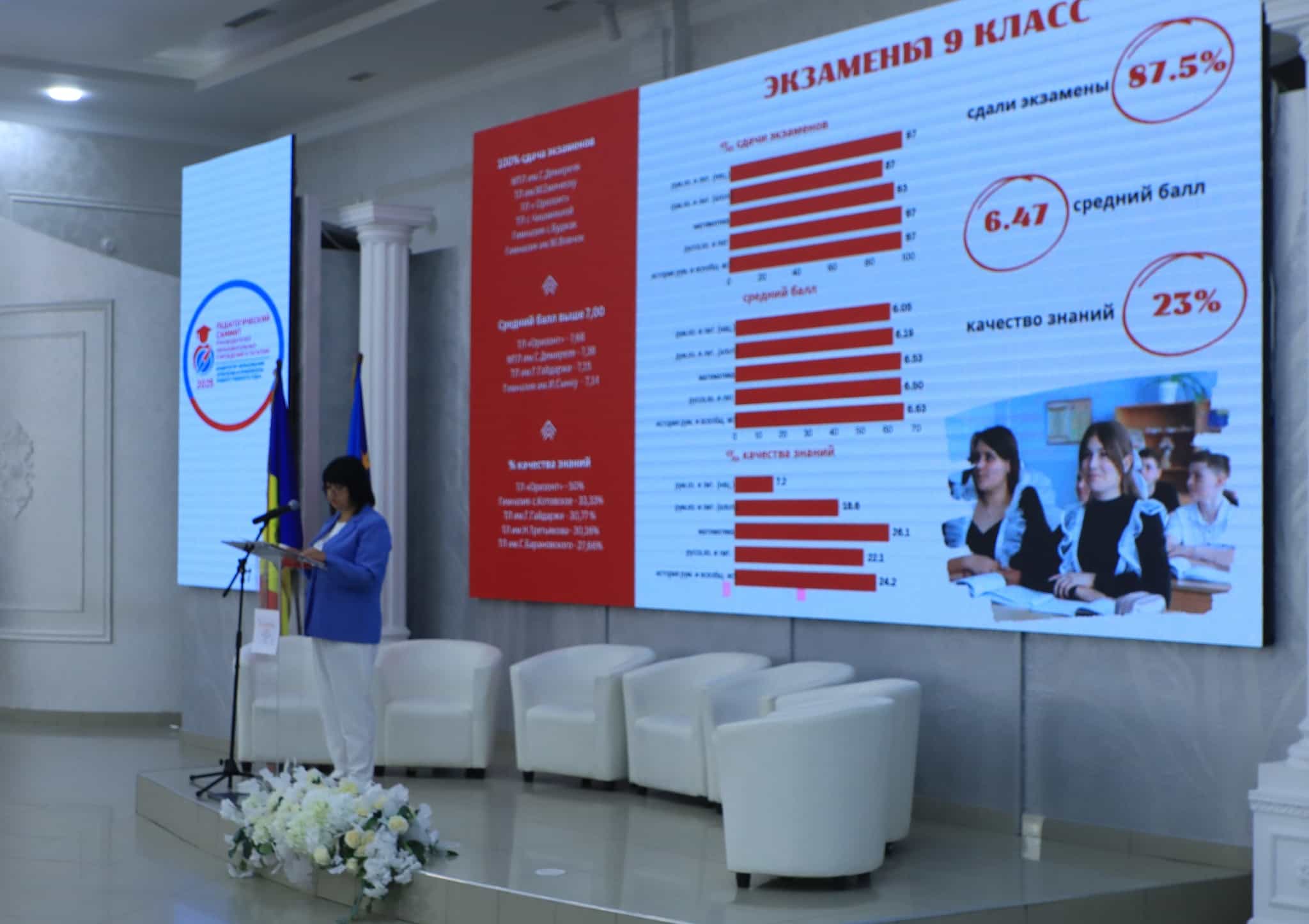 Gagavuzya Eğitim Baş Müdürlüğü Başkanı Natalia Cristeva’nın zirvedeki konuşması, 2024–2025 eğitim-öğretim yılının sonuçlarını, eğitim sisteminin karşılaştığı sorun hem zorlukları yansıttı. Aynı zamanda, zorlukların üstesinden gelmeye hem yeni eğitim yılında daha yüksek sonuçlar elde etmeye yardımcı olacak çıkarımlar hem öneriler de sunuldu.
