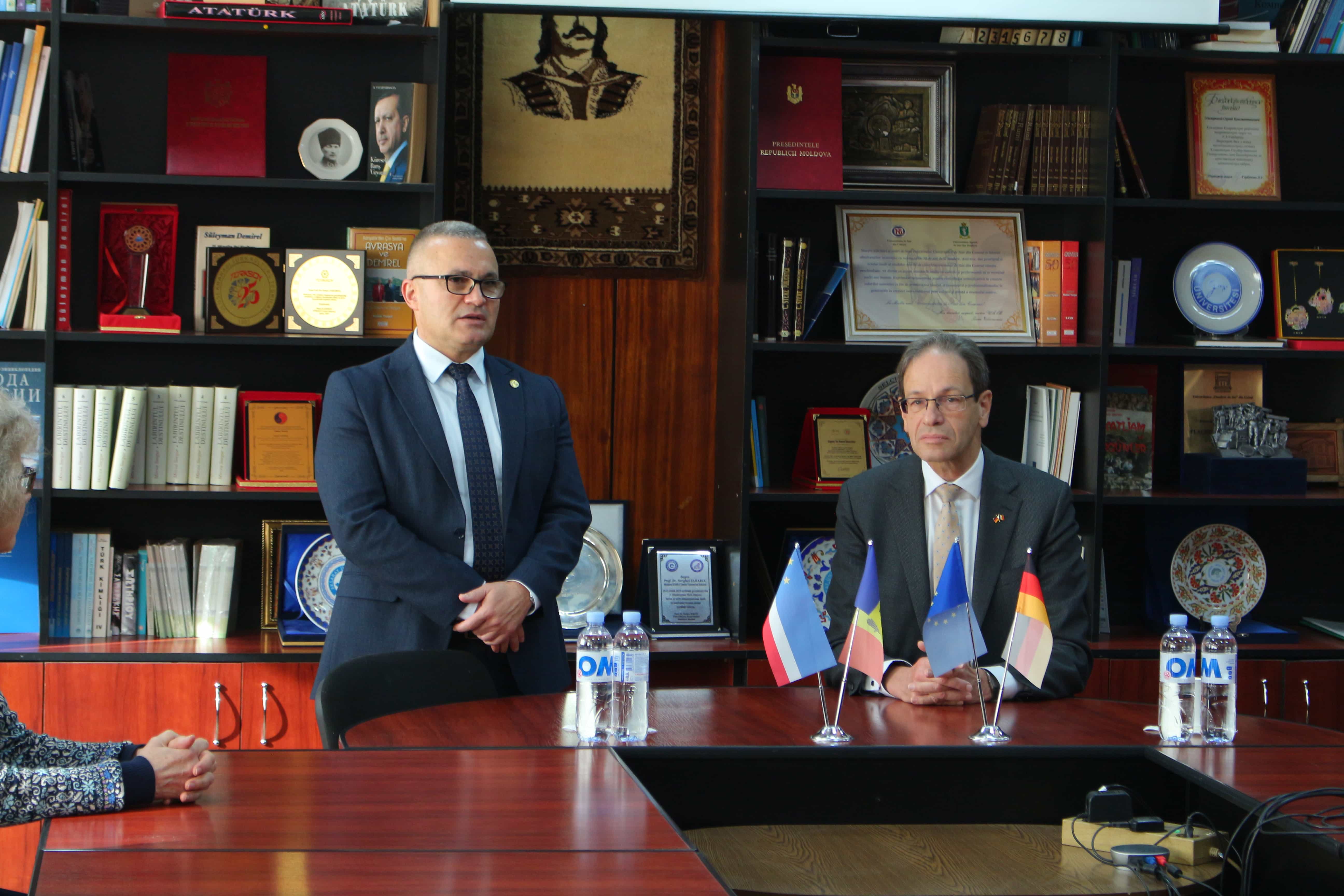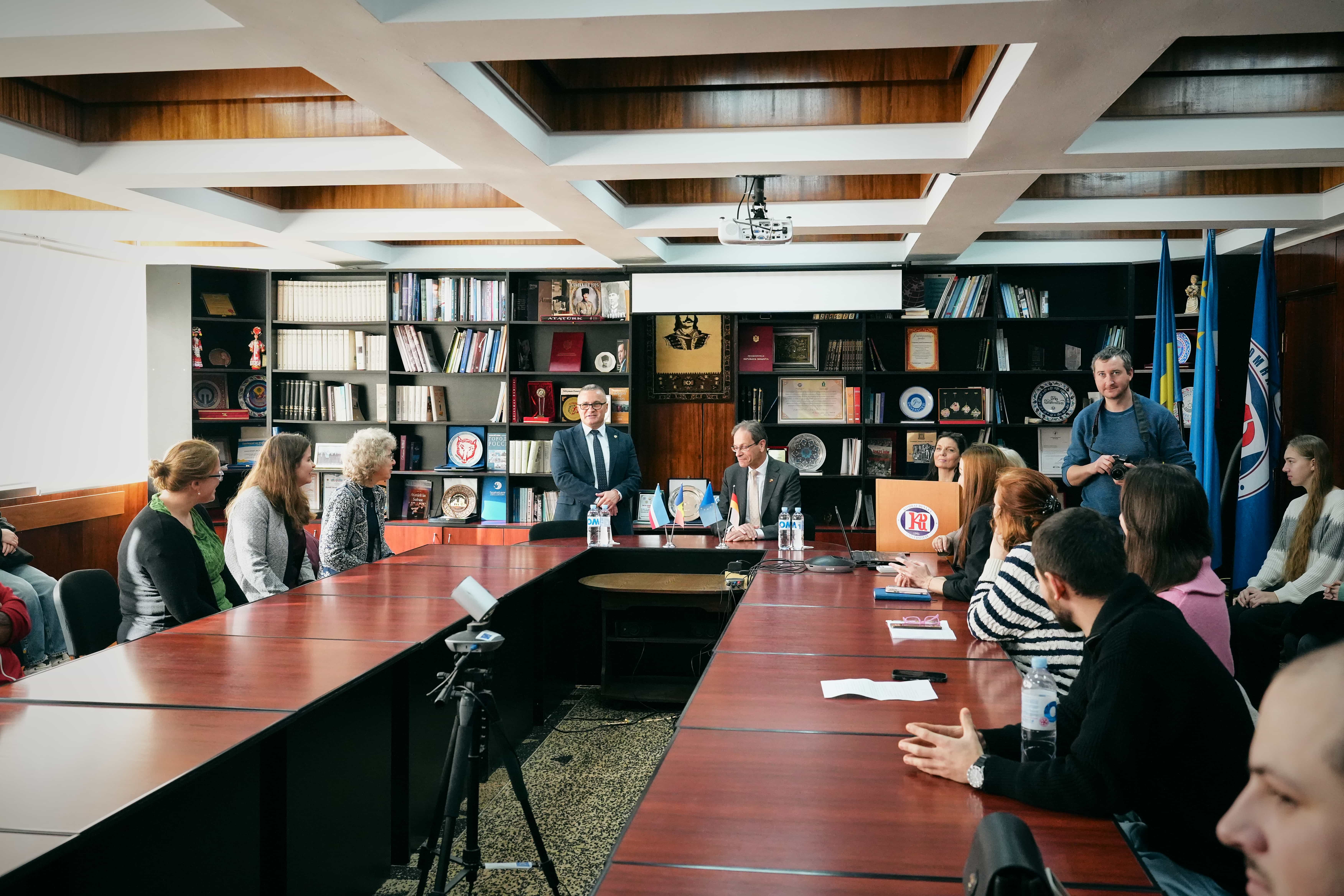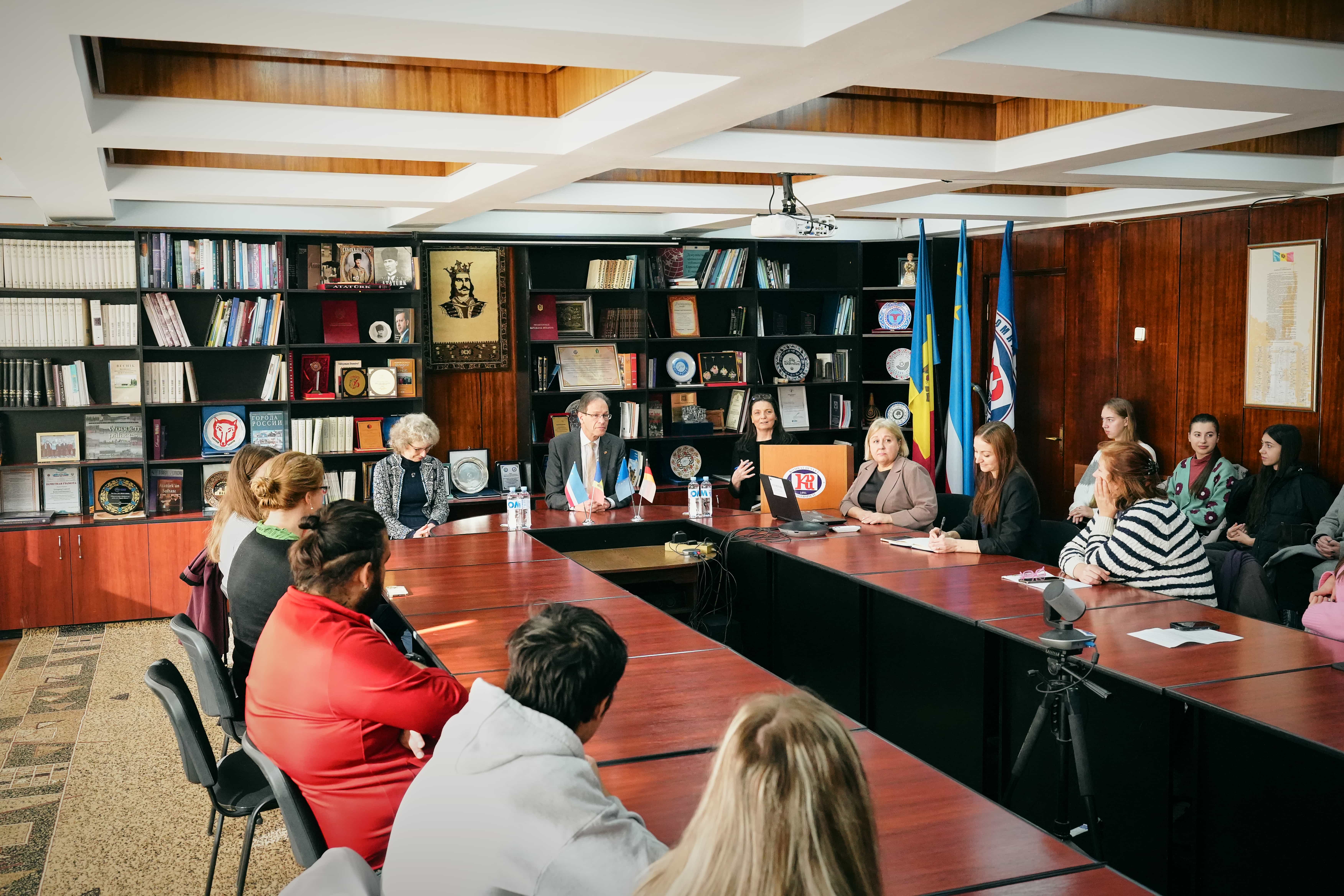 13 Kasım 2025’teki resmi ziyareti kapsamında, Almanya Federal Cumhuriyeti’nin Moldova Cumhuriyeti’ndeki yeni Büyükelçisi Hubert Knirsch, Komrat Devlet Üniversitesi öğrencileriyle ayrı bir toplantı gerçekleştirdi. Bu buluşma, ziyaretin etkileyici bir devamı niteliğinde oldu ve Büyükelçinin gençlere ve KDU’nun akademik topluluğuna olan açıklığını vurguladı.