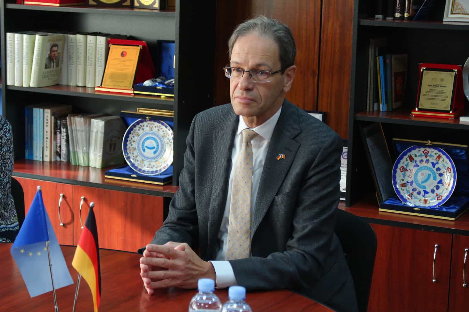 Büyükelçi Hubert Knirsch tüm sorulara memnuniyetle yanıt vererek Alman eğitim programları, gençlik girişimlerine verilen destek ve kültürlerarası iletişimin önemi hakkında ayrıntılı bilgiler sundu. Kendisi de öğrencilere sorular yönelterek onların beklentileri, mesleki planları ve Gagauzya’nın gelişimine dair görüşleriyle ilgilendi. Bu dinamik fikir alışverişi, farklı fakültelerden öğrencilerin aktif katılımıyla canlı ve değerli bir diyaloğa dönüştü.