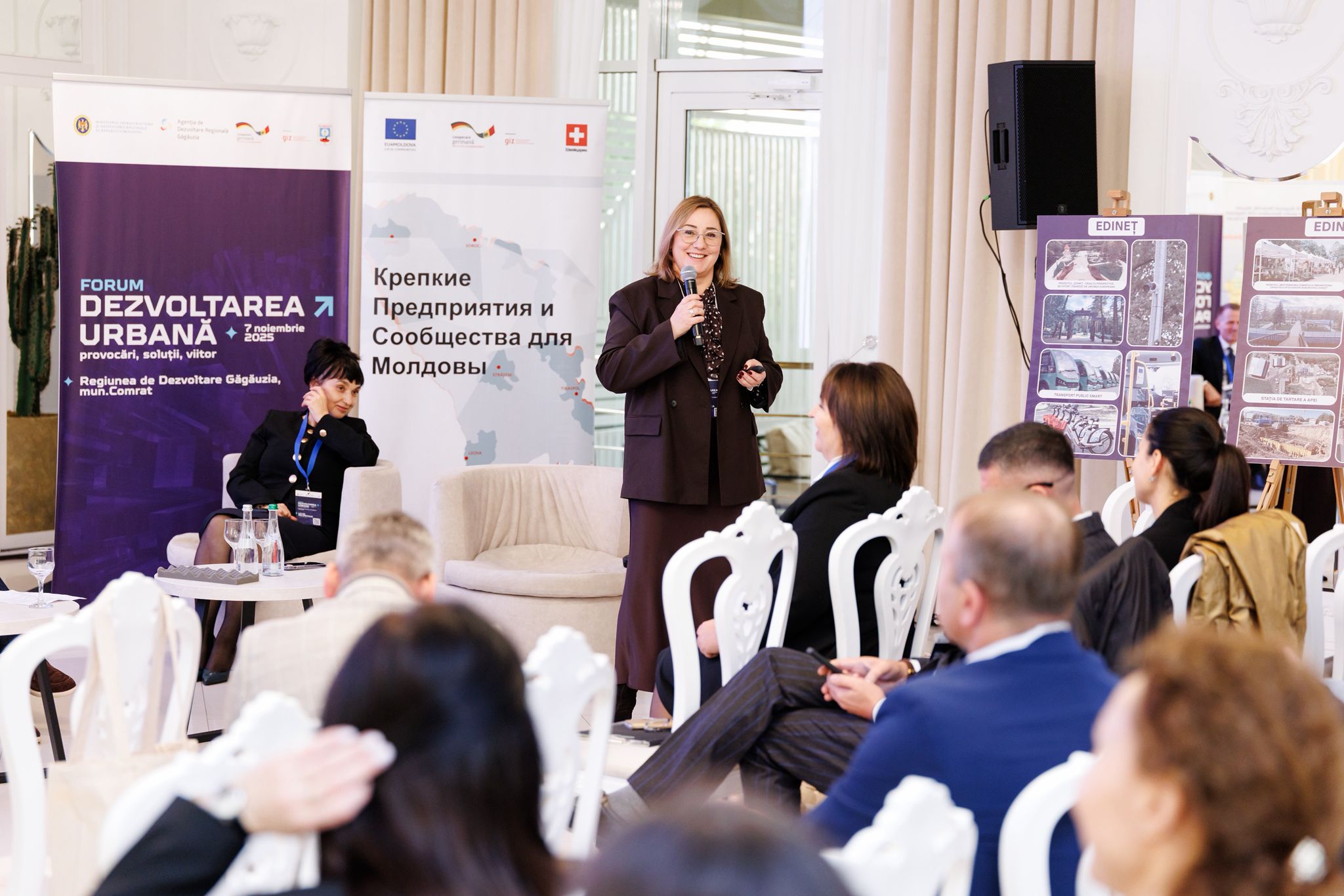 7 Kasım 2025 tarihinde Komrat Devlet Üniversitesi’ni temsilen, Ekonomi Fakültesi’nin birinci ve ikinci kademe öğrencileri ile birlikte Ekonomi Bölümü öğretim üyeleri — Ekonomi Bilimleri Doktoru, Profesör Alla Levitskaia ve Ekonomi Bilimleri Doktoru, Doç. Svetlana Kuraxina — Gagauzya Bölgesel Kalkınma Ajansı tarafından düzenlenen “Kentsel Kalkınma: Zorluklar, Çözümler, Gelecek” konulu foruma katıldılar.