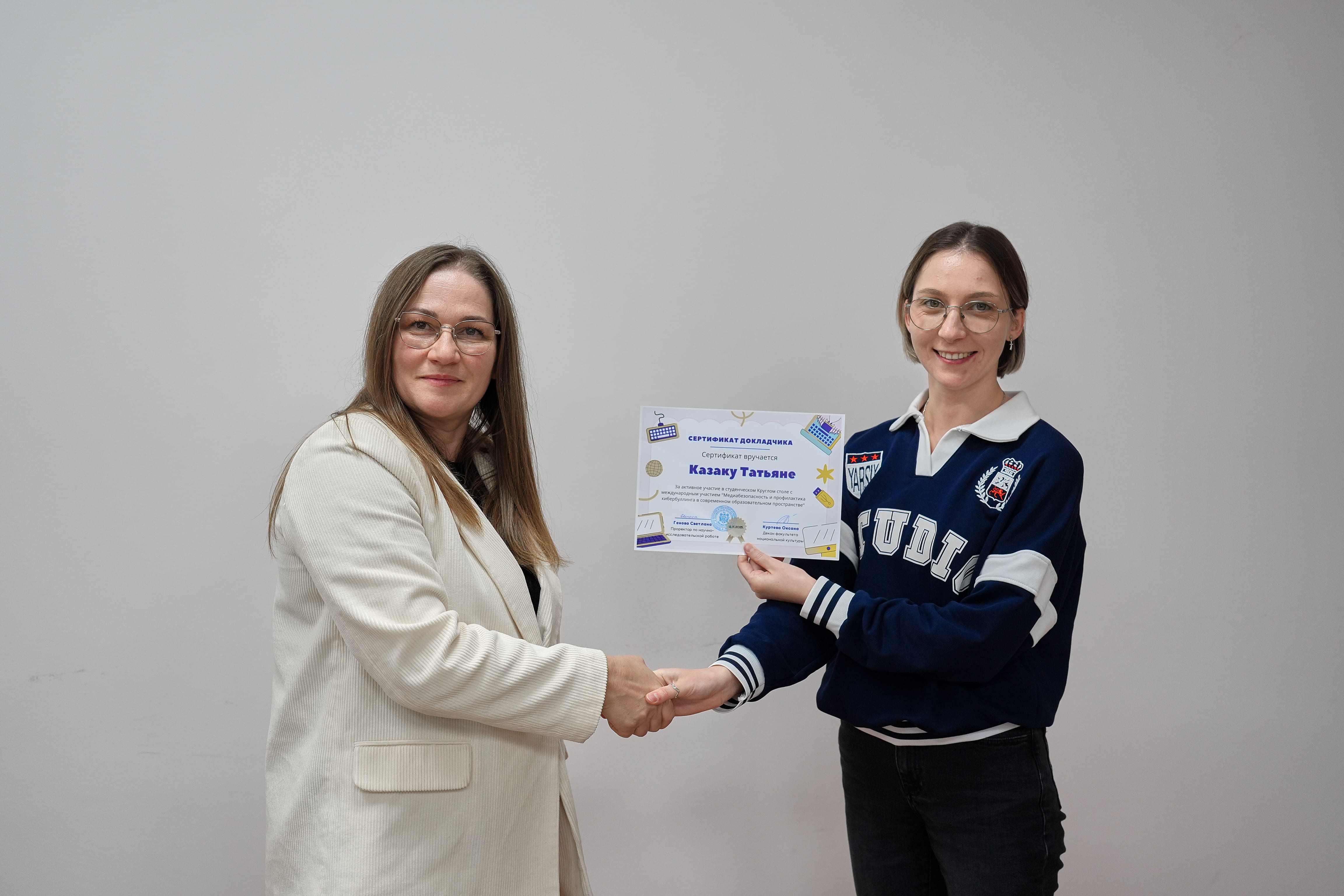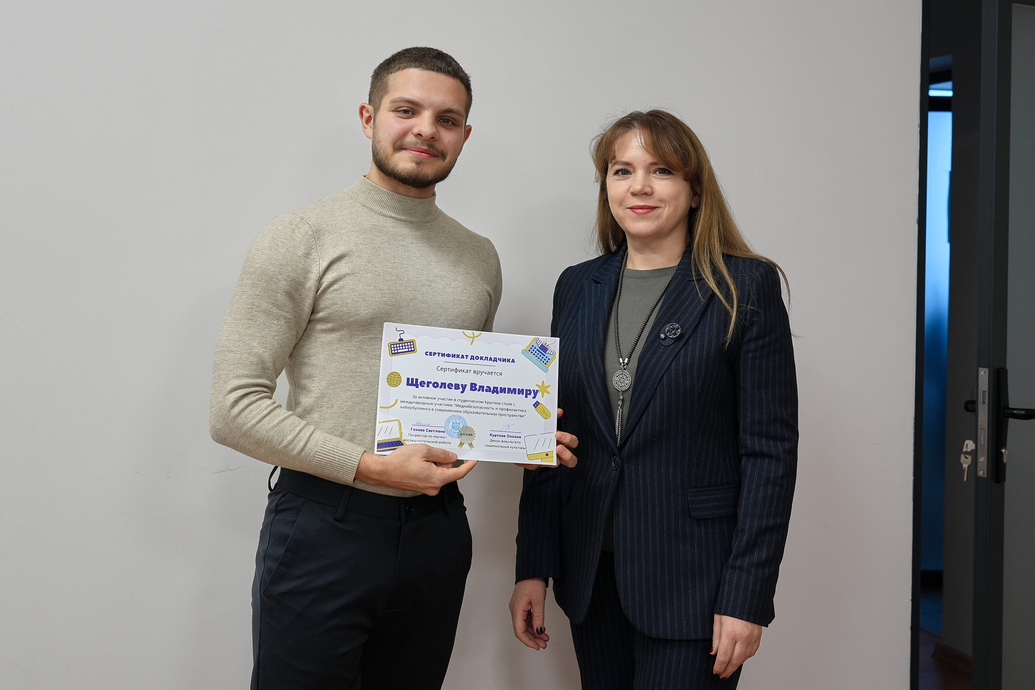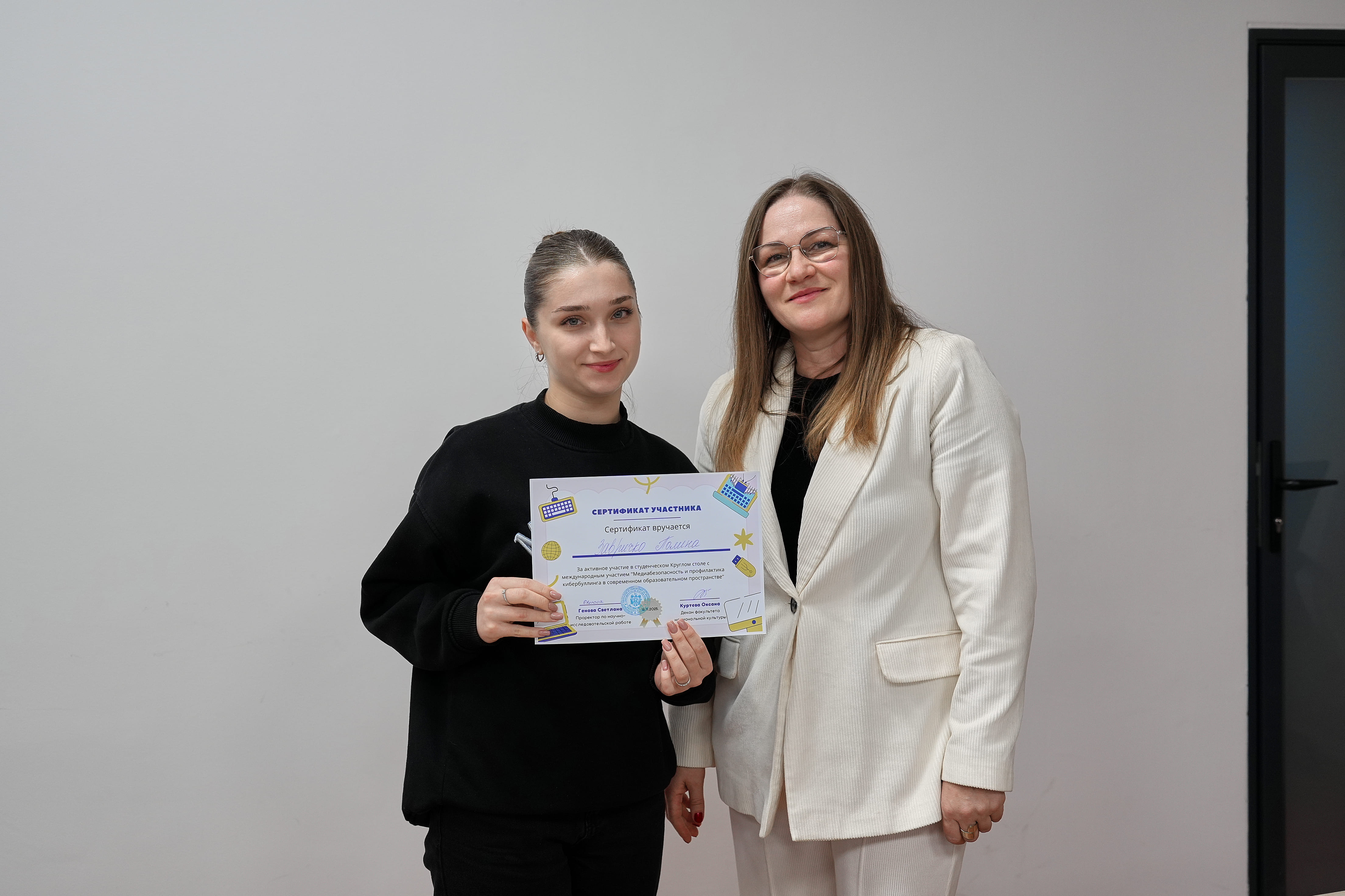 Ayrıca eğitim kurumlarında medya güvenliği yönetim stratejileri, PROTECTOR AI sisteminin uygulanması, anonim bildirim mekanizmalarının geliştirilmesi (Viktor Doyçev, MOM-24), dijital ortamda telif haklarının korunması (Vladimir Şçegolev, PM-24) ve çevrimiçi tehditleri önlemenin pratik yolları (Nina Ormanji, MOM-25) da ele alındı. Çalıştay sonunda sonuçlar değerlendirilerek dijital kültürün, medya okuryazarlığının ve güvenli eğitim ortamı uygulamalarının geliştirilmesine yönelik bir karar metni kabul edildi. Etkinlik, modern bilgi toplumunun gerçek sorunlarına çözüm üretmeye yönelik öğrencileri teşvik eden, akademik diyalog ve deneyim paylaşımı için önemli bir platform haline geldi.