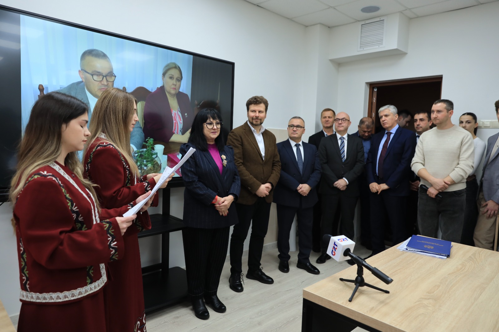 27 Kasım 2025 tarihinde Komrat Devlet Üniversitesi’nde Bulgar Dili ve Kültürü Merkezinin resmi açılışı gerçekleştirildi. Yeni merkez, Moldova Cumhuriyeti’ndeki Bulgaristan Cumhuriyeti Büyükelçiliği ve Moldova’daki Bulgar Toplumu Geliştirme Derneği’nin desteğiyle kuruldu. Merkezin açılışı, Gagauzya’da Bulgar dilinin, tarihinin ve kültürel geleneklerinin öğrenilmesi için yeni imkânlar sunarak kültürel bağların güçlendirilmesinde önemli bir adım olmuştur. Etkinlik kapsamında merkezin faaliyet alanları, eğitim programları ve Bulgar ortaklarla işbirliği perspektifleri tanıtıldı. KDU Rektörü, Doç. Dr. Serghei Zaharia projenin üniversite ve bölge için önemini vurgulayarak Bulgar Dili ve Kültürü Merkezinin eğitimsel ve kültürel işbirliği için yeni ufuklar açtığını belirtti. “Ortaklığımızın güçlenmesinden memnuniyet duyuyor, Bulgar tarafına destekleri ve güvenleri için teşekkür ediyoruz,” dedi. Bulgaristan’ın Moldova Cumhuriyeti Büyükelçisi Sayın Maya Dobreva, açılışta yaptığı konuşmada Gagauzya’da Bulgar dilinin ve kültürünün geliştirilmesinin önemine dikkat çekerek merkezin kurulmasının kültürel ilişkilerin güçlendirilmesine değerli bir katkı olduğunu ifade etti. Comrat Devlet Üniversitesi’nin Bulgar dili çalışmalarını geliştirme konusundaki kararlılığının yüksek değerlendirildiğini ve merkezin diyalog, eğitim ve ortak girişimler için önemli bir mekân haline geleceğine olan güvenini belirtti.