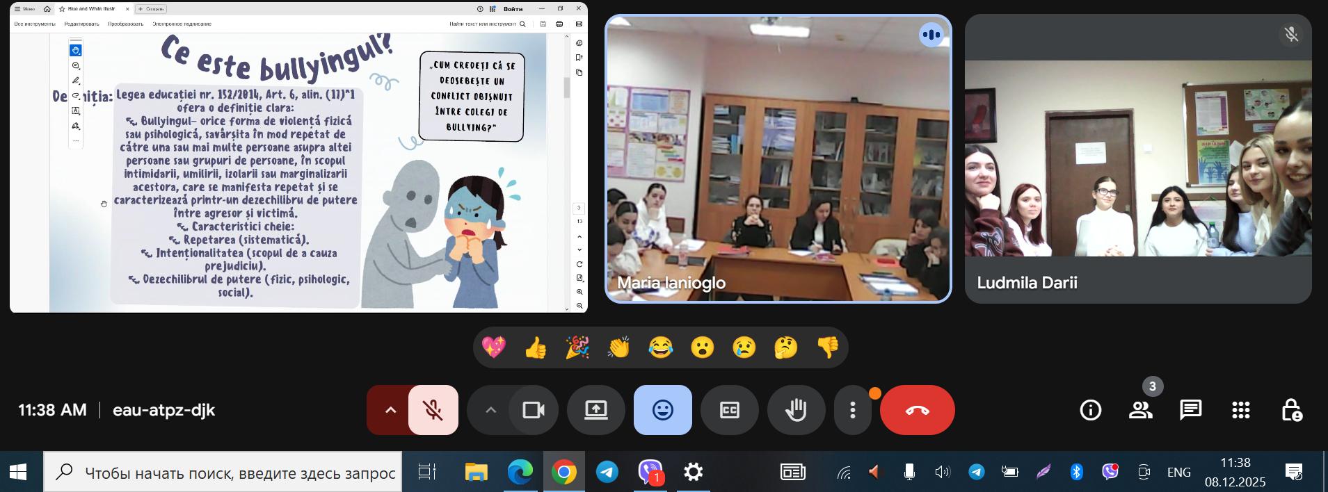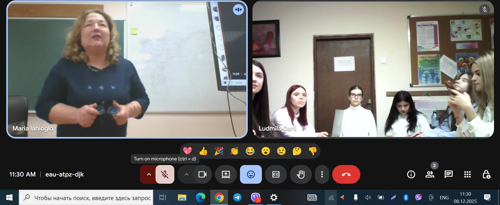 8 Aralık 2025 tarihinde, EİE Merkezinin Operasyonel Faaliyet Planı ve KDU Pedagoji ve Psikoloji Bölümünün Çalışma Planı doğrultusunda, Komrat Devlet Üniversitesi ve Moldova Devlet Üniversitesi’nin Kültürlerarası Eğitim için Didaktik Kaynak Merkezleri (CRDEIC) tarafından, insan haklarının teşvik edilmesine ve kültürlerarası ve kapsayıcı eğitim kurumlarında eğitim aktörlerinin korunma mekanizmalarının güçlendirilmesine adanmış üniversitelerarası bir yuvarlak masa toplantısı düzenlendi.