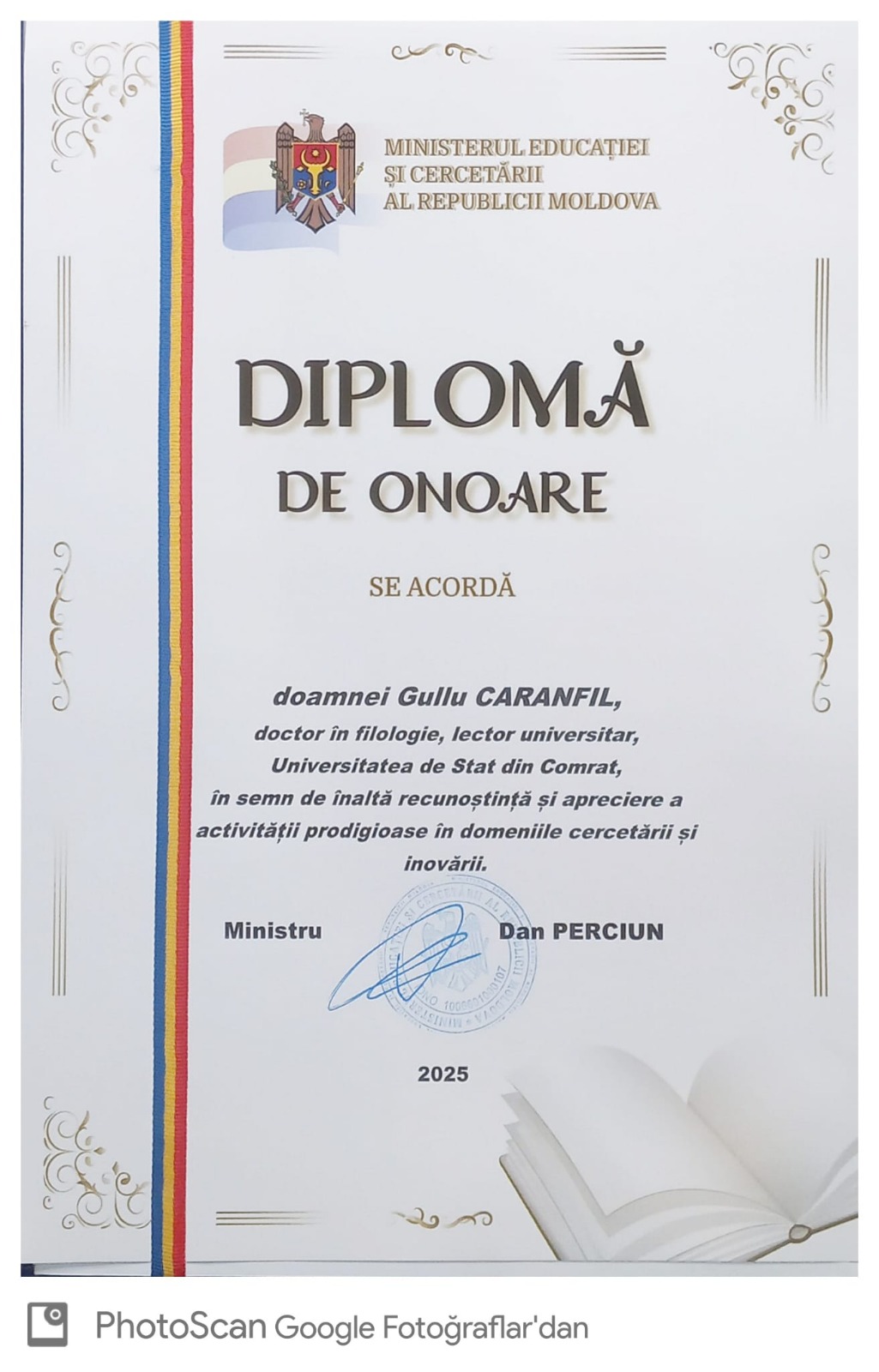 20 Aralık 2025 tarihinde Komrat Devlet Üniversitesi araştırmacıları — Levitskaia A., Ekonomi alanında doktor habilitat, üniversite profesörü, Karanfil G., Filoloji doktoru, öğretim görevlisi, Cerga T., Doçent, Ekonomi doktoru, — Moldova Cumhuriyeti Eğitim ve Araştırma Bakanlığı tarafından geleneksel olarak düzenlenen Gala Cercetătorilor 2025 törenine katıldılar. Gala çerçevesinde ülkenin bilim camiasının başarıları onurlandırıldı; 53 araştırmacıya Moldova Cumhuriyeti Hükümeti ve Moldova Cumhuriyeti Eğitim ve Araştırma Bakanlığı tarafından diploma takdim edildi. Törende konuşan Eğitim ve Araştırma Bakanı Sayın Dan Perciun, bilimsel araştırmanın titizlik, cesaret ve kararlılık gerektiren, ekip çalışmasına dayalı ve uzun vadeli bir süreç olduğunu vurguladı. 2025 yılında alınan kararların — maaş ve burslarda önemli artışlar, inovasyona, araştırma altyapısına ve Avrupa entegrasyonuna yapılan yatırımların — Moldovalı araştırmacıların emeğine duyulan saygının ve ülkede bilimin gelişimine olan güvenin açık bir göstergesi olduğunu ifade etti. 2025 yılında Moldova Cumhuriyeti Eğitim ve Araştırma Bakanlığı, ulusal araştırma ve inovasyon sistemini güçlendirmeye yönelik bir dizi önlem hayata geçirdi. Araştırma, inovasyon ve teknoloji transferi projelerinde yer alan proje yürütücüleri ve koordinatörleri, araştırma ekipleri ile teknik ve destek personeline yönelik ücretlendirme standartları iki katına çıkarıldı. Genç araştırmacıların desteklenmesine özel önem verildi. Doktora bursları iki katından fazla artırıldı: Moldova Cumhuriyeti Hükümeti doktora bursu 3.165 leyden 6.600 leye yükselirken, sektörel bilim bursları 5.720 leye ulaştı. Ayrıca bilimsel unvan sahiplerine yönelik aylık ek ödenekler önemli ölçüde artırıldı: doktor habilitatlar için 4.500 ley, doktora derecesine sahip araştırmacılar için 4.000 ley. Bu önlemler, akademik kariyerin prestijini artırmaya ve araştırma alanında insan sermayesinin korunmasına katkı sağlamaktadır. Hâlihazırda, doktora ve doktor habilitat dosyalarının yanı sıra proje başvurularının değerlendirilmesine katılan uzmanların ücretlerinin önemli ölçüde artırılmasını öngören ve 2007 yılından bu yana güncellenmeyen tarifelerin yerini alacak yeni bir Hükümet kararı üzerinde çalışmalar sürdürülmektedir. Araştırma sonuçlarının ülke ekonomisine aktarılmasını teşvik etmek amacıyla 2025 yılında, ilk iki yıl için yaklaşık 35 milyon ley bütçeye sahip İnovasyon ve Teknoloji Transferi Fonu başlatıldı. Fon, proje çağrıları ve inovasyon kuponları aracılığıyla akademi ile iş dünyası arasındaki iş birliğini desteklemektedir. Ayrıca, Dünya Bankası tarafından finanse edilen “Moldova Cumhuriyeti’nde Yükseköğretim” projesi kapsamında ilk kez ayrı bir araştırma bileşeni dâhil edilmiş olup, bu bileşen Avrupa Araştırma Alanı’na entegrasyon açısından kilit öneme sahip olan araştırma altyapısına yatırımları öngörmektedir. Moldova Cumhuriyeti, Horizon Europe programına katılımını da güçlendirmekte; bu kapsamda M-HERO projesi aracılığıyla araştırmacıların ve ulusal kurumların Avrupa fonlarına erişimini desteklemektedir. Gala töreni kapsamında, Komrat Devlet Üniversitesi Ulusal Kültür Fakültesi, Gagauz Filolojisi ve Tarihi Bölümü öğretim görevlisi, Filoloji doktoru Karanfil Güllü de onurlandırılmış ve bilimsel araştırma ve inovasyon alanındaki verimli çalışmalarından dolayı Moldova Cumhuriyeti Eğitim ve Araştırma Bakanlığı Onur Diploması ile ödüllendirilmiştir. 2025–2026 döneminde Dr. Karanfil Güllü, GAGAUZMODEL (https://kdu.md/gag/bilim-hem-halklar-aras-baalant-lar/proektlar/2025-y-l-nda-baslayan-projeler/modelgagauz-projesi/modelgagauz-projesi-aciklamasi) adlı ikili bilimsel araştırma projesinin koordinasyonunu yürütmektedir. Komrat Devlet Üniversitesi araştırmacılarının Gala Cercetătorilor 2025 törenine katılımı, üniversitenin araştırma ve inovasyonun geliştirilmesine aktif katkısını ve akademisyenlerinin ulusal ve Avrupa bilim alanının güçlendirilmesine sunduğu değeri açıkça ortaya koymaktadır