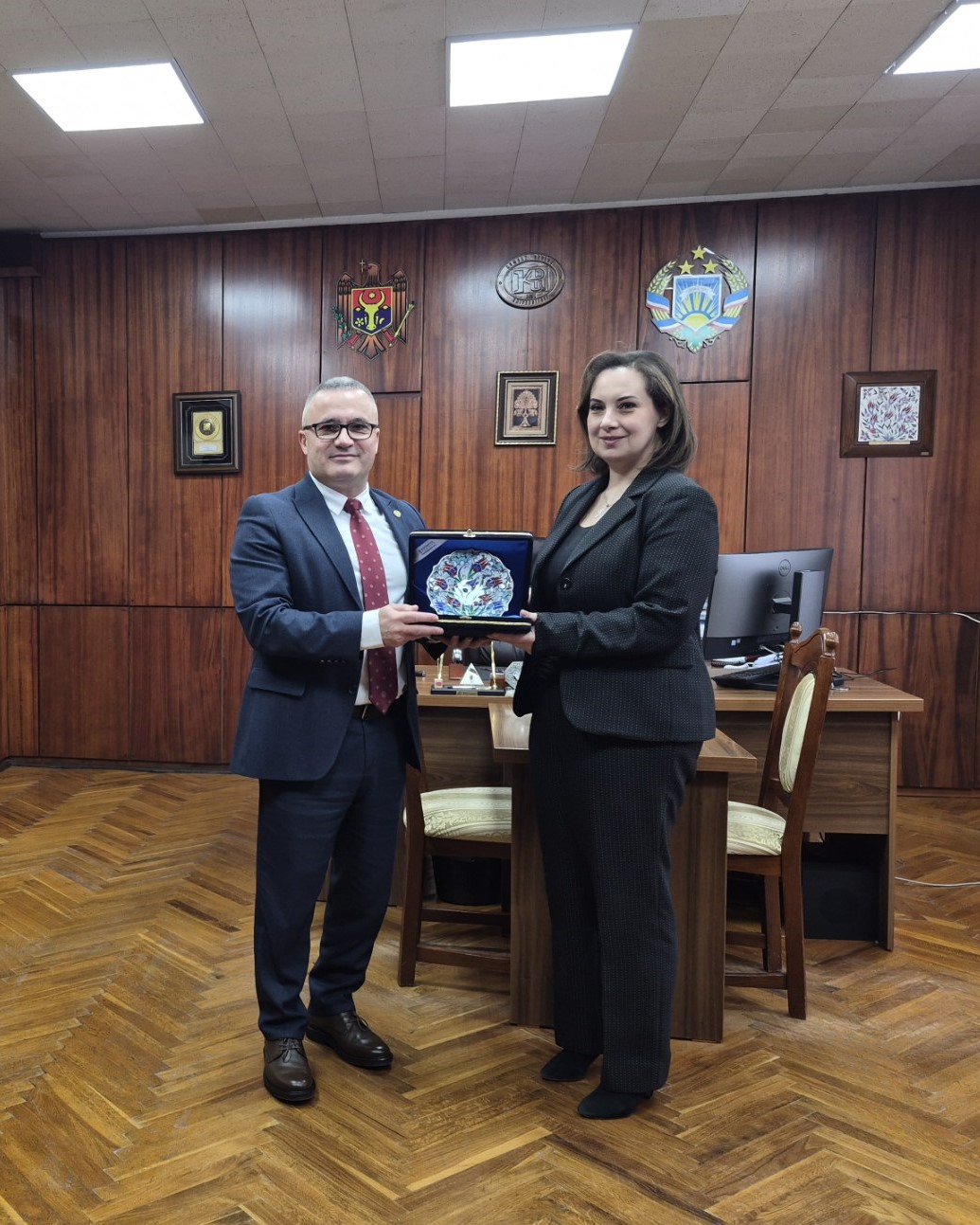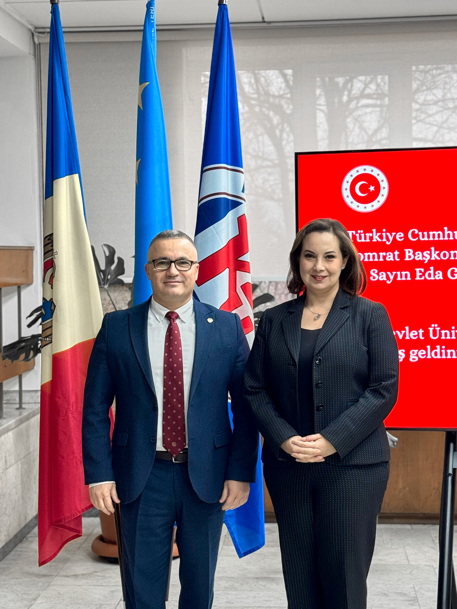 Türkiye Cumhuriyeti Komrat Başkonsolosu Sayın Eda Güç, Komrat Devlet Üniversitesi Rektörü Doç. Dr. Serghei Zaharia’yı makamında ziyaret etti. Gerçekleşen ziyarette, Türkiye ile Moldova-Gagauz Yeri arasında eğitim alanındaki iş birliği imkânları ele alındı. Görüşme samimi bir atmosferde gerçekleşti.