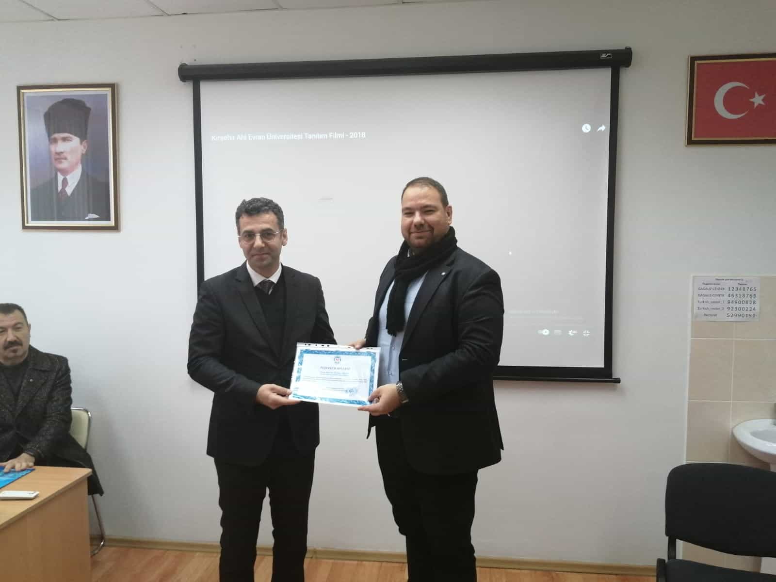 Ziyaret esnasında, Dış İlişkilerden Sorumlu Rektör Yardımcısı Prof. Dr. Ahmet GÖKBEL, “Türk Dünyasında Ahilik Teşkilatı” konulu konferansta Gagauzların bu konuyla olan bağlantısına değindi. Dış İlişkiler Koordinatörü Doç. Dr. Erman AKILLI ise “Türkiye’de Uluslararası Eğitim ve Erasmus + Projeleri” konulu bir konferans vererek öğrenciler ve öğretim elemanlarımızın Türkiye-Kırşehir Ahi Evran Üniversitesindeki Erasmus+ Programına katılabilme olanaklarından bahsetti.