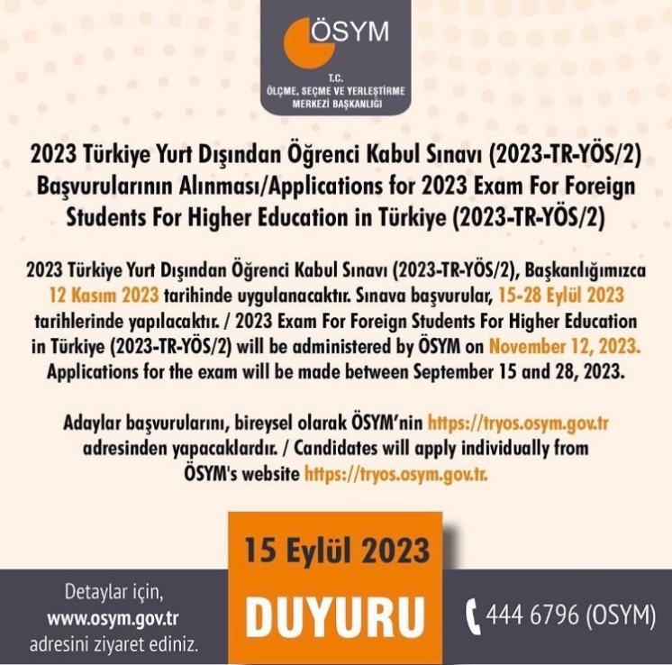 2023 Türkiye Yurt Dışından Öğrenci Kabul Sınavı (2023-TR-YÖS/2)