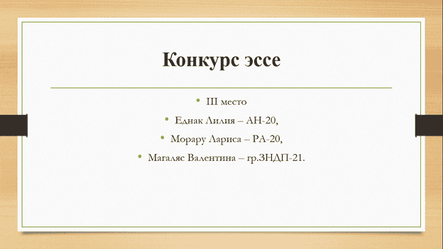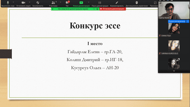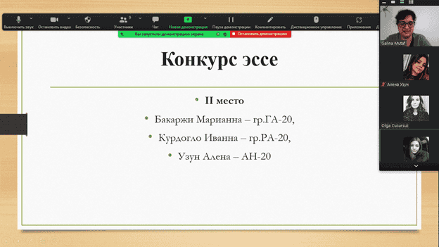 Ese yazmasında aktiv pay aldılar millet kultura fakultetindä üürenän studentlär: GA-20 gr. (Gagauz dili hem literaturası. Englez dili), İG-18 gr. (İstoriya hem çivik terbietmesi), AN-20 gr. (Englez dili hem literaturası. Alman dili), gr.RA-20 (Rus dili hem literaturası. Englez dili). Katılımcılar 3 dildä ese yazdılar: gagauz, rus hem englez dillerindä. Ese yarışmasında pay alannara diplom verildi.