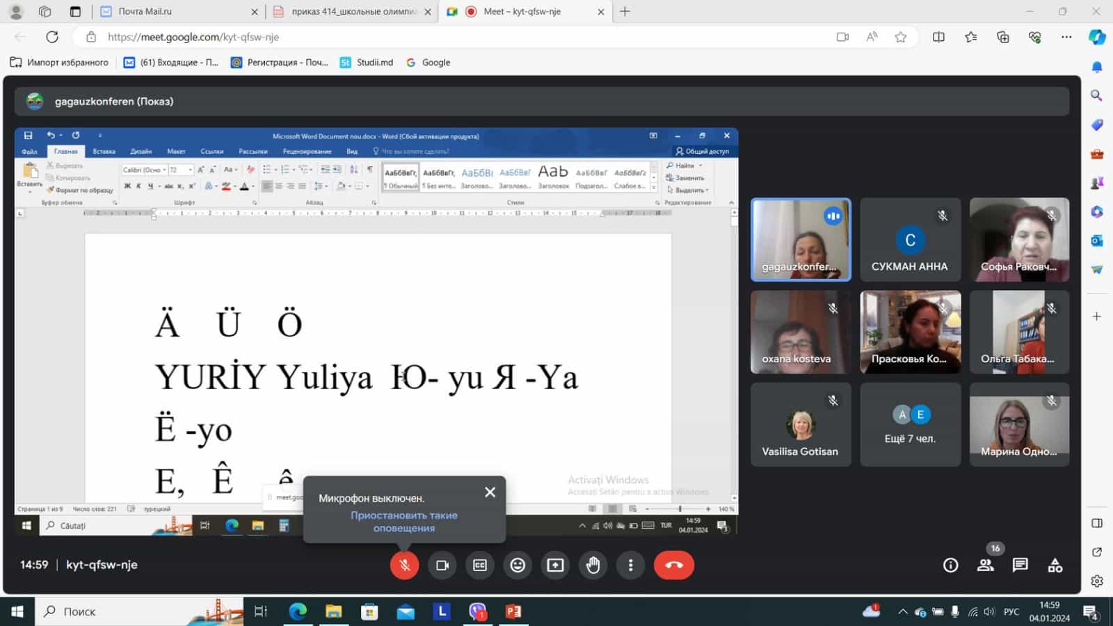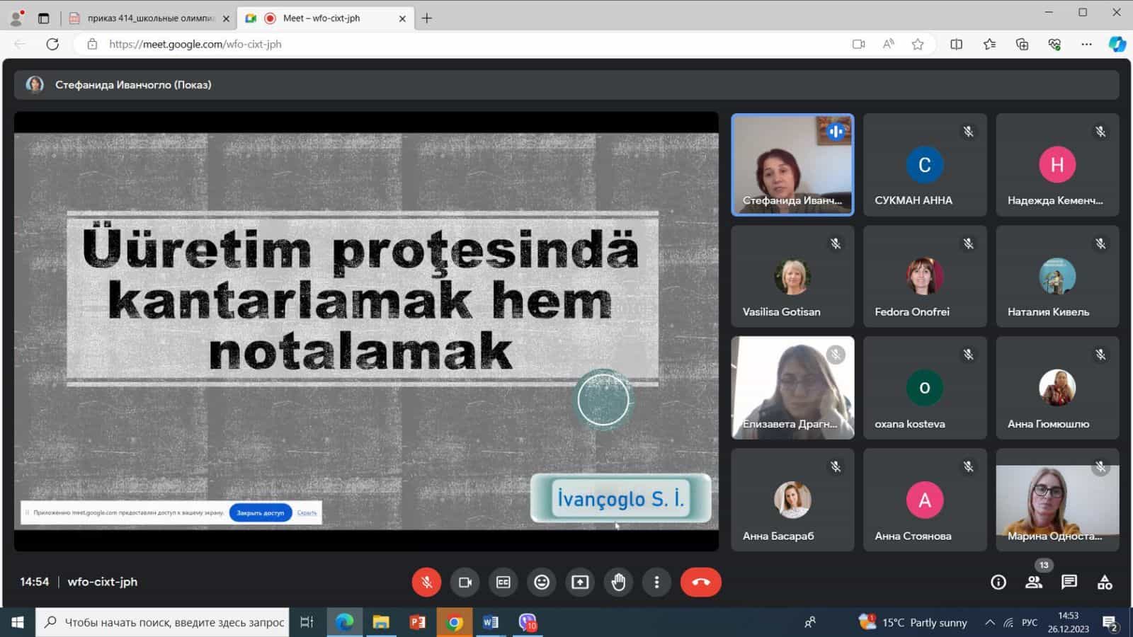 Komrat Devlet Universitetinin izininȁ görȁ (№ 21, 13.12.2023.) Gagauz filologiya hem istoriya kafedrasında Dekabrinin 18-dän Yanvarin 31-yȁdȁn ‘Gagauz dili hem literaturası’ (600 saat/20 kredit) programasında didaktika kursları üüredicilerä deyni geçti.