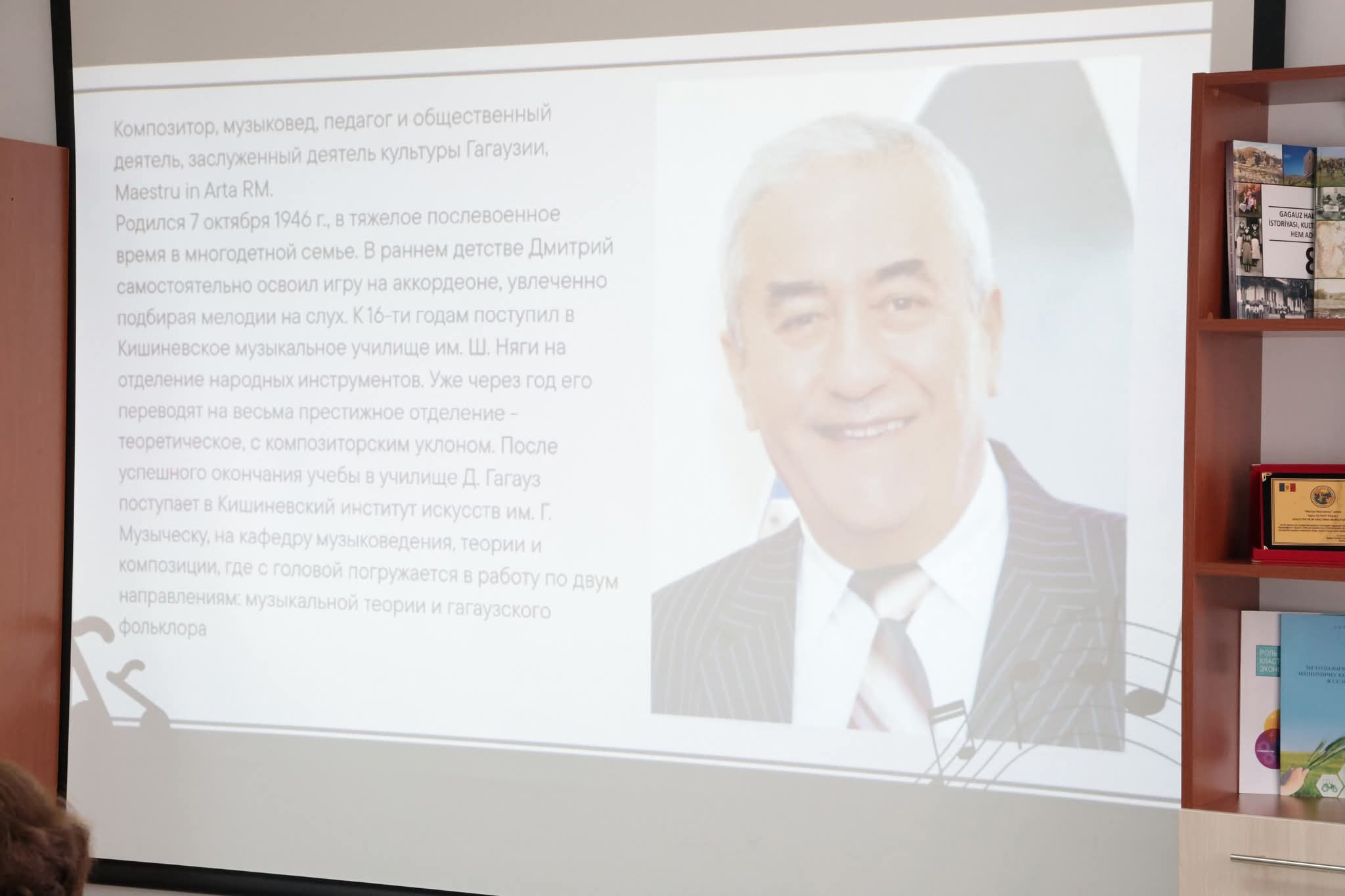 Komrat Devlet Üniversitesi Bilimsel Araştırma Merkezinde, Gagauzya’nın Emektar Kültür Emekçisi Dmitri Gagauz’un doğum günü vesilesiyle, “Seçkin bir müzikolog, besteci ve eğitimcinin yaratıcı yolu” konulu halka açık bir konferans düzenlendi.