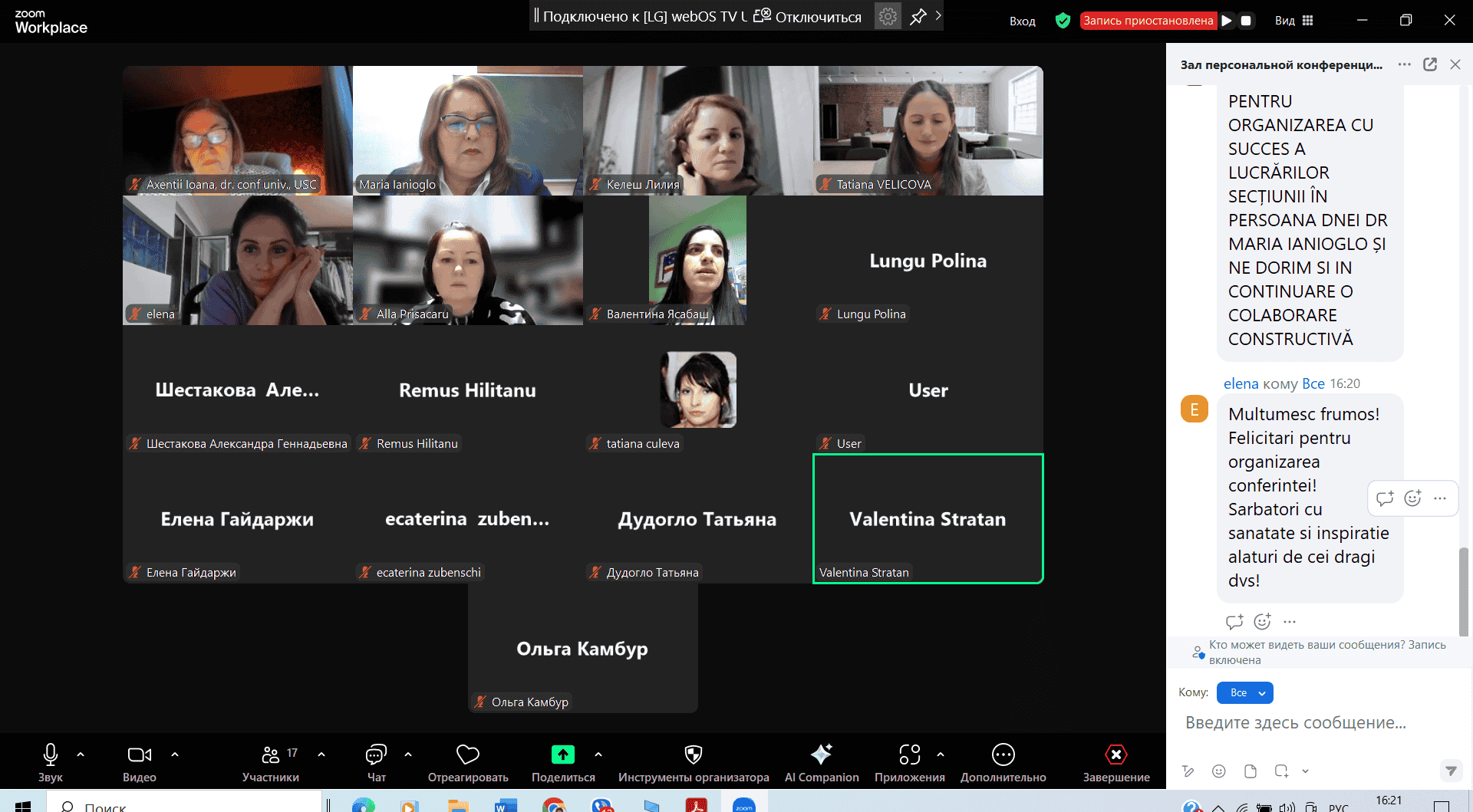 6 Aralık 2024 tarihinde Komrat Devlet Üniversitesi'nde (KDU), Milli Kültür Fakültesi'nde düzenlenen IV. Uluslararası Bilimsel hem Uygulamalı Konferansı "Bilimsel hem Eğitimsel Alan: Eğitimin Kalitesine İlişkin Gerçekler hem Beklentiler" kapsamında, Bölüm 1'in çalışması. “Pedagojik Bilimler” düzenlendi " Moderatörler yaratıcı başarı, yapıcı diyalog hem verimli çalışma dilekleriyle konuşmacılara, katılımcılara hem dinleyicilere hitap etti: Maria Ianioglo, Doktor, Conf. Üniv. Pedagoji hem Psikoloji Bölümü, Komrat Devlet Üniversitesi hem Axentii Ioana, doktor, konf. univ., Universitatea de Stat "B.P. Hasdeu" din Cahul, Bölümün eş lideri/eş moderatörü, üniversitenin pedagoji hem psikoloji bölümü öğretmeni Maria Vlah, Pedagojik Bilimler Yüksek Lisansıydı. Araştırma sonuçları (52 makale), yazarlar/ortak -Bölüm çalışmalarına farklı ülkelerden yazarlar kaydedilmiştir: Bölümün çalışmalarına Belarus Cumhuriyeti, Azerbaycan, Kırgızistan, Özbekistan, Moldova Cumhuriyeti, Rusya Federasyonu, Romanya katılmıştır. çevrimiçi-çevrimdışı formatta, 34 katılımcı: bilim insanları, doktora öğrencileri/yüksek lisans öğrencileri, öğretim elemanları, yükseköğretim ikinci aşama öğrencileri - yüksek lisans; Konuşmacıların da belirttiği gibi, akademik camianın, bilim adamlarının, yüksek, mesleki hem genel eğitim öğretim elemanlarının yanı sıra eğitimin her düzeyindeki öğrencilerin karşılaştığı bir konu: PERSPECTIVA CONSTRUCTIVISTÎ A ÎNVĂĂRII ÎN CONTEXTUL INTEGRÂRII NOILOR TEHNOLOGII - Axentii Ioana, doktor, konf. univ., Universitatea de Stat "B.P. Hasdeu" din Cahul, Moldova; SEVICIILOR EDUCATUIONALE TI SOSYAL ÎN EDUCATİA INCLUZIVĂ A COPIILOR CU CES - Stratan Valentina, doktor, konf. univ., Universitatea Pedagogică de Stat “Ion Creangă”, Kişinev; IDEI DESPRE COMUNICAREA EducatiionalĂ ÎN REALITATEA POSTMODERNĂ - Zagaevschi Corina, doktor, konf. univ., Universitatea Pedagogică de Stat “Ion Creangă”, Kişinev; YETKİLENDİRİCİ ARTISTICO -PLASTICE A ELEVILOR DIN ÎNVĂĂMÂNTUL PRIMAR - Lungu Polina, doktor, konf. univ., Universitatea de Stat "B.P. Hasdeu" din Cahul; UNELE SECVENTİ DE PRATICARE A CHINETOTERAPIEI ÎN ANTICHITATE - Ecaterina Zubenschi, doktor., conf. univ., Universitatea Pedagogică de Stat „I. Creangă” Kişinev'de; Wooclap hem AhaSlides HİZMETLERİ ÖRNEĞİYLE İNTERAKTİF TEKNOLOJİLER YOLUYLA ÖĞRENCİLERİN EĞİTİM SÜRECİNE DAHİL EDİLMESİ - Tatyana Velikova, Doktor, Konf. üniv., KDU; BİLGİ TEKNOLOJİSİ HEM TARİHTE BİLGİ KALİTESİ - Svetlana Romanova, 1. derece öğretmeni. derece, PU Koleji adını aldı. M. Chakira, Comrat hem diğerleri bölümün çalışmalarında aktif rol alarak araştırmanın sonuçlarını sundular: Crișan Elena (Romanya), Alla Prisakaru (Moldova), Hilițanu Remus (Romanya), Alexandra. Shestakova (Rusya Federasyonu), vb. Katılımcılar belirtilen araştırma alanlarının yüksek alaka düzeyine dikkat çektiler, pratik önemi, alaka düzeyini hem yeniliği vurguladılar. konular tartışıldı. Tüm konuşmacılar konferansın yüksek seviyesini, dost canlısı yaratıcı atmosferi belirttiler hem bilimsel forumun açık organizasyonu hem bilimsel hem pedagojik araştırma alanında daha fazla akademik işbirliği arzusu için şükranlarını dile getirdiler. Modern pedagojik bilimlerin acil sorunlarını çözmek için akademik hareketliliğin daha da genişletilmesi hem eğitim alanında ulusal hem uluslararası düzeyde işbirliğinin güçlendirilmesi gerektiğine dikkat çeken konferans katılımcıları, çalışmanın sonuçlarına dayanarak geliştirilen önerilerin güvenini dile getirdi. kaliteli eğitim hem mesleki eğitimin yüksek nitelikli rekabetçi uzmanların uygulanmasına hem uluslararası işbirliğinin güçlendirilmesine katkıda bulunacaktır.