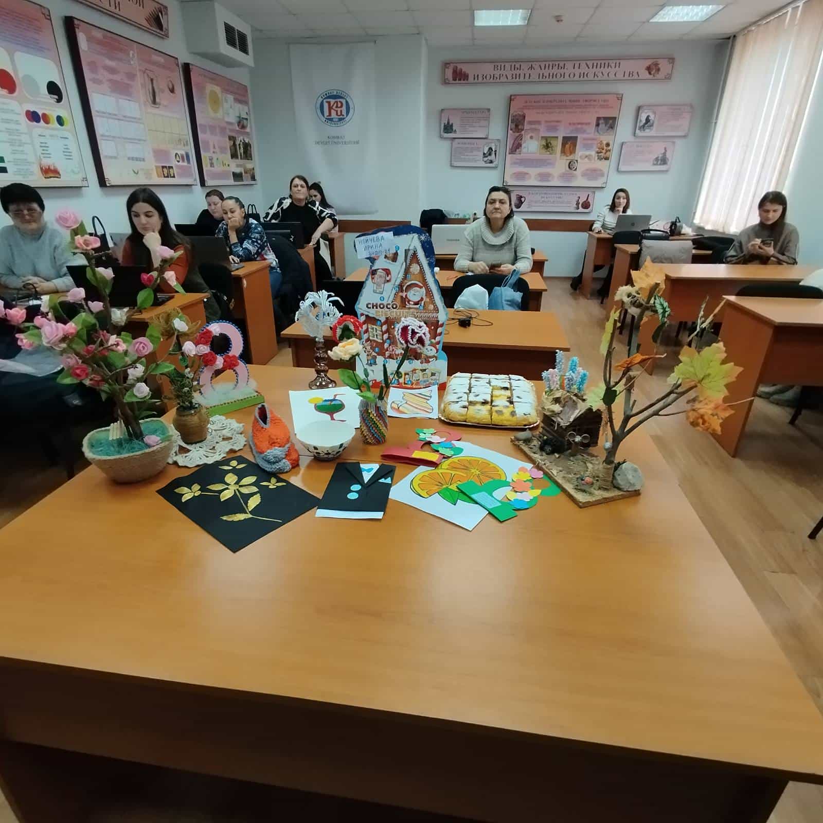 Fotograflarda göstereli onnarın çalışmaları , angılar göstererlär bizä , nicä kullanmaa türlü tehnikleri hem uymaları, angıları var nicä kullanmaa küçük üürenicilerin üüretmäk proţeslarda . Göstereli işlerin arasında var nicä görmää : kompoziţiyalar tabiat materiallardan , işlär , angıları yaptılar kvilling tehniktä , yaprak aplikaţiyalar büük grafika elementlärlän , örmek işleri , yaratıcı kompoziţiyalar dekoratif elementlerin temelindä , gözäl maketlär türlü materialardan .