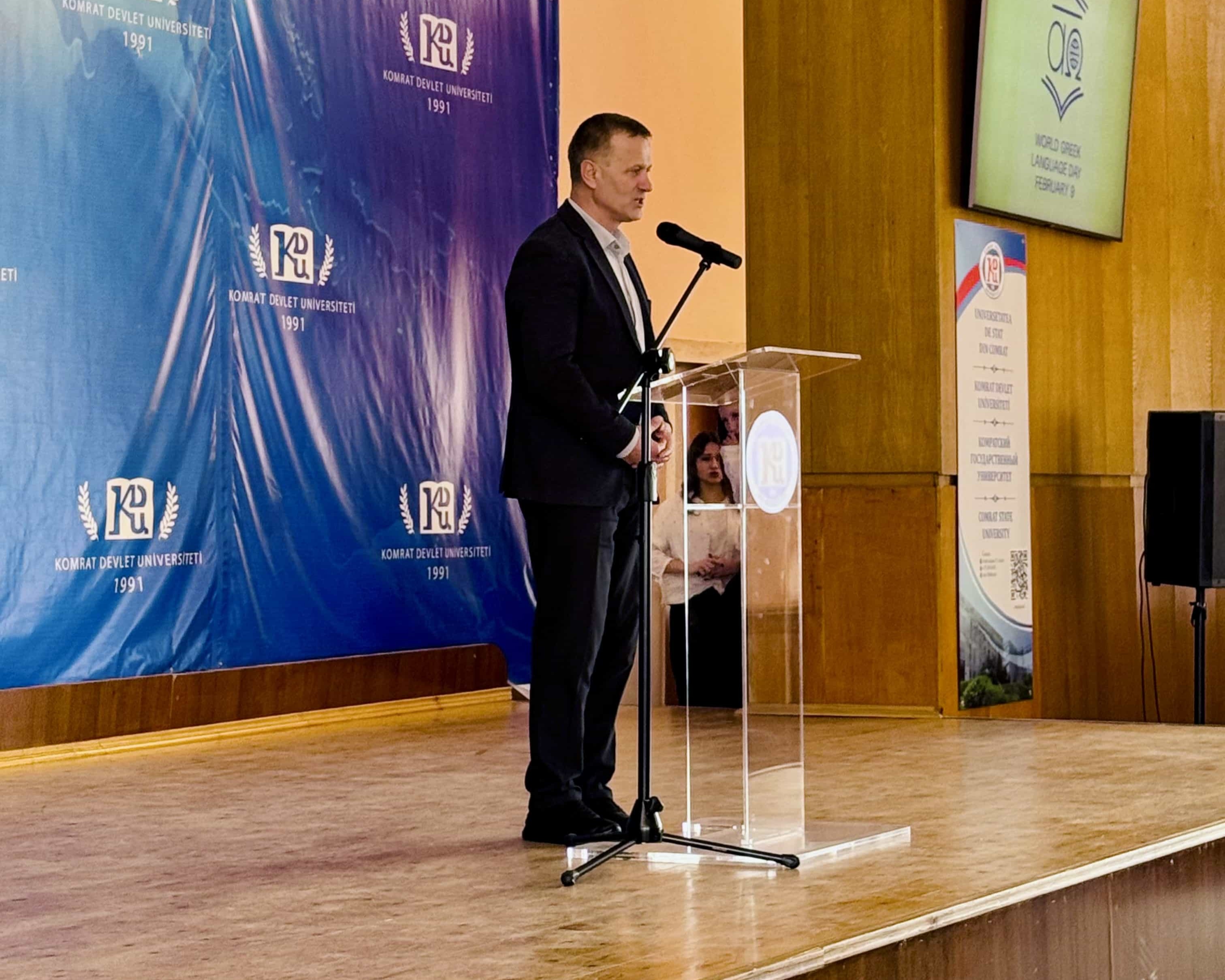 Etkinlik, Komrat Devlet Üniversitesi Rektörü Dr. Doç. Zaharia Sergeyin açılış konuşmasıyla başladı. Rektör, Helen dilinin Avrupa’nın en eski dillerinden biri olarak bilim, felsefe, kültür ve eğitimin gelişimine büyük katkılar sağladığını belirtti ve KDU tarafından aktif şekilde desteklenen kültürlerarası diyalog ile uluslararası iş birliğinin önemini vurguladı.