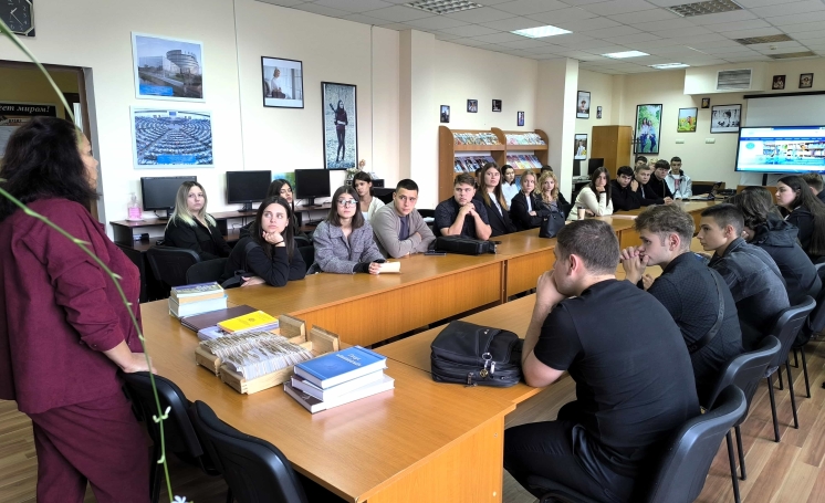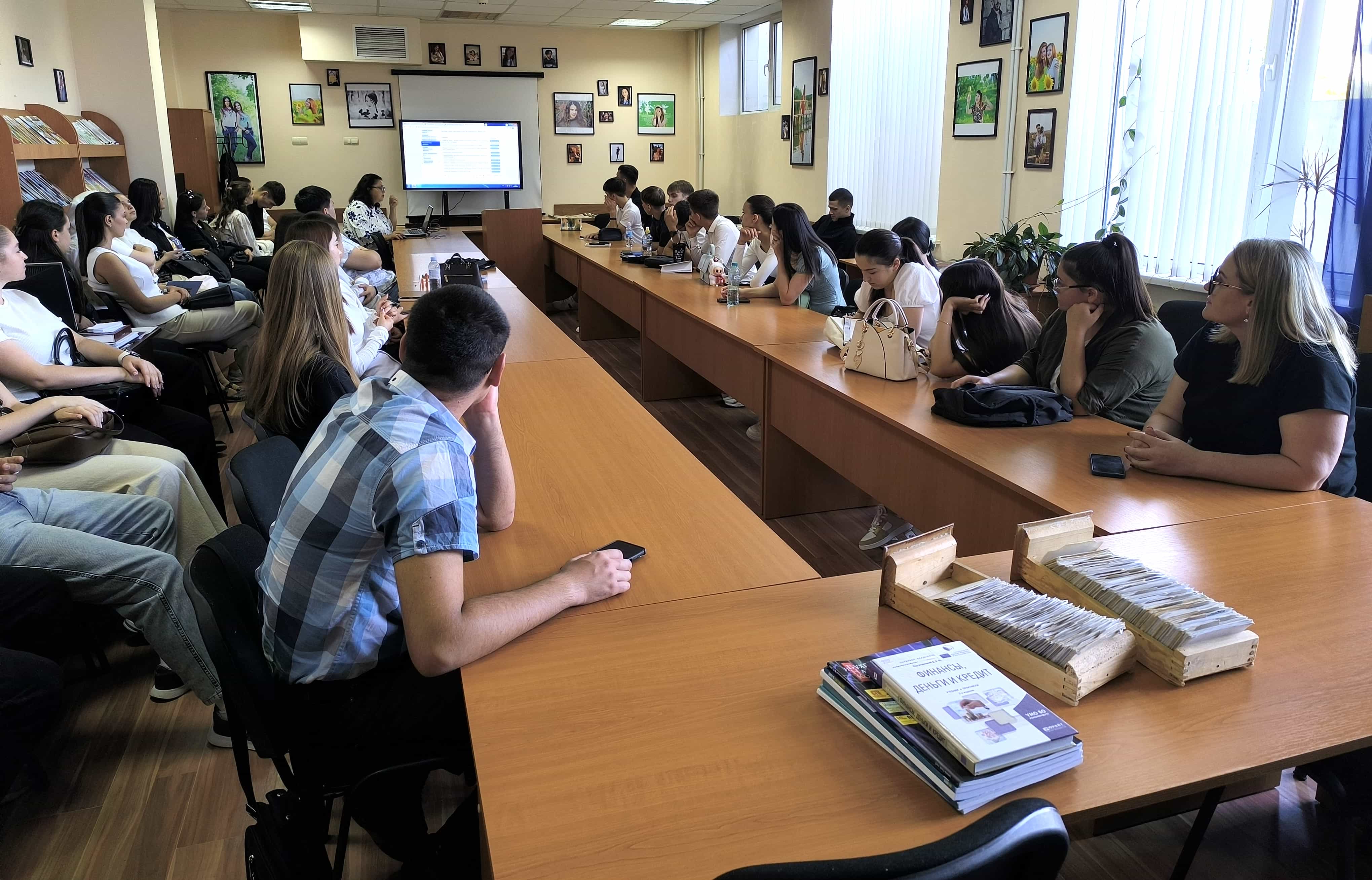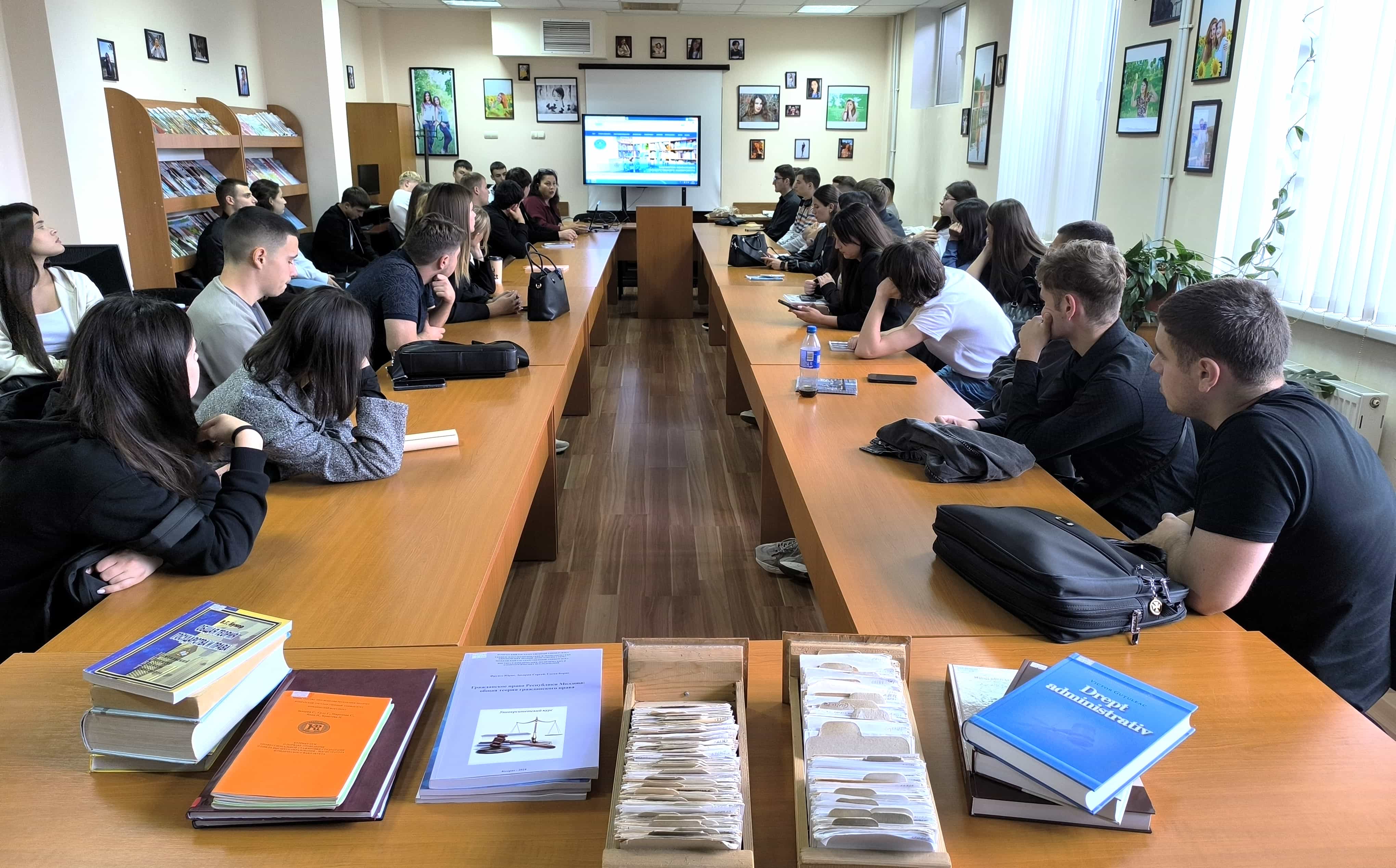 Baş kütüphaneci Anna Chesea, öğrencilere kütüphanenin çalışma saatlerini, hizmet kurallarını ve üniversitedeki bilimsel ve eğitim sürecini destekleyen bilgi kaynaklarını (kitap koleksiyonu, süreli yayınlar ve arşivler) tanıttı. Özellikle kütüphanenin arama sistemleri tanıtıldı: Elektronik Katalog, Alfabetik Kart Kataloğu ve Sistematik Katalog. Öğrencilere, bibliyografik araçların nasıl kullanılacağı, ödev, tez ve yüksek lisans çalışmaları için kaynakça listelerinin uluslararası ve Moldova standartlarına uygun şekilde nasıl hazırlanacağı anlatıldı.