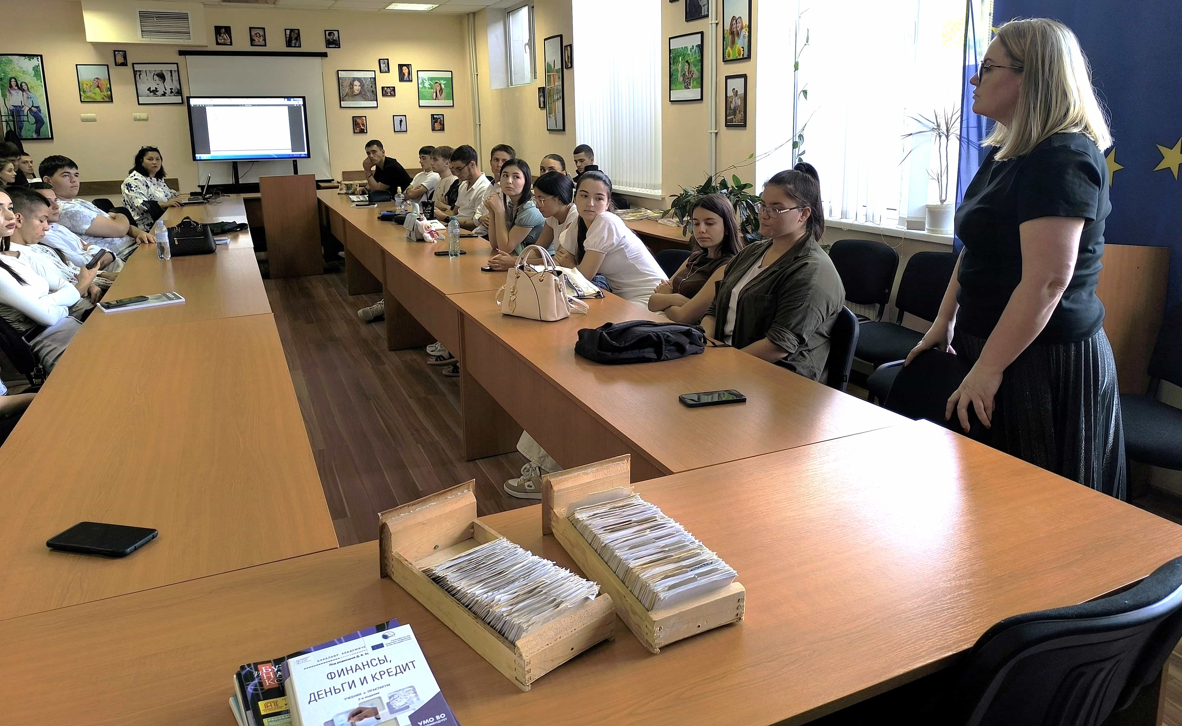 Ekonomi Fakültesi öğrencileriyle yapılan oturumda Dr., Doç. Nadejda Ianioglo, yapay zekâ (ChatGPT) kullanımı, eleştirel düşünmenin önemi, bağımsız akademik yazım ve Antiplagiarizm sistemi hakkında bilgi verdi.