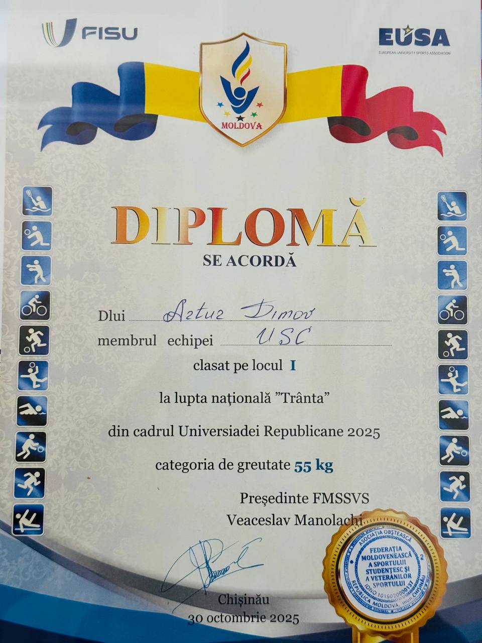 -Artur Dimov, Hukuk Fakültesi öğrencisi (YPU-25), Komrat Spor Okulu mezunu, antrenörler – Andrei ve Anatolii Romanov.