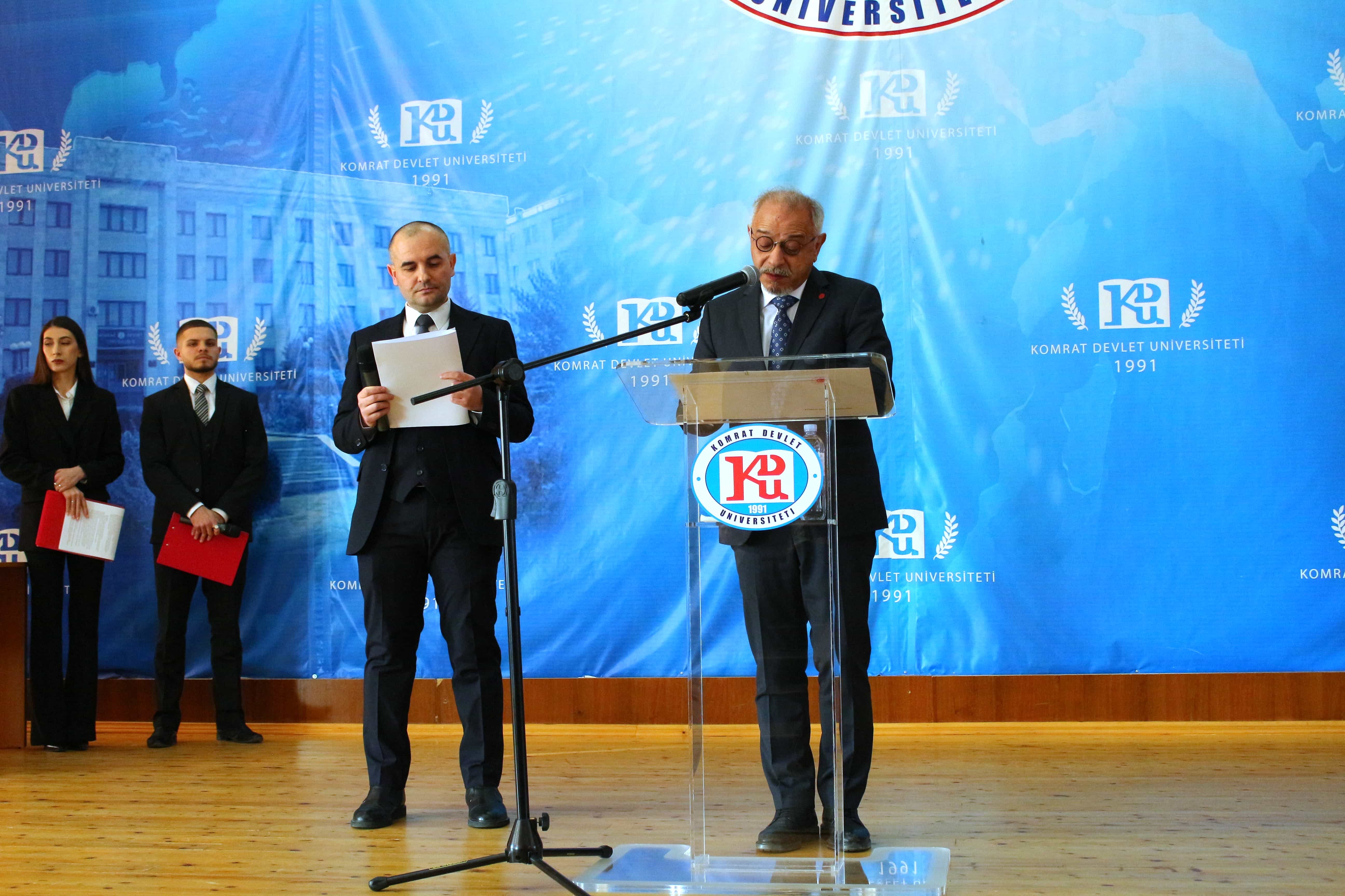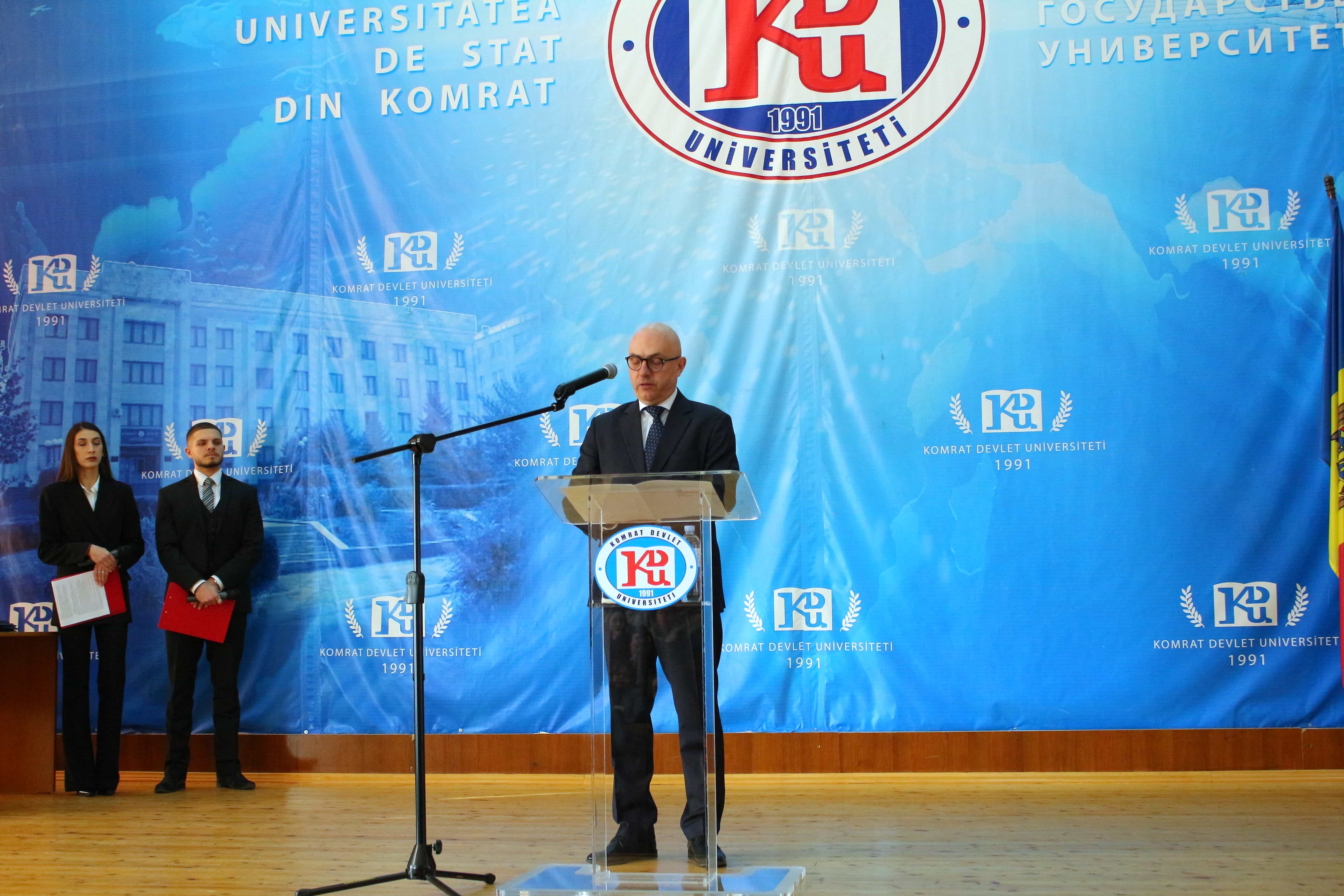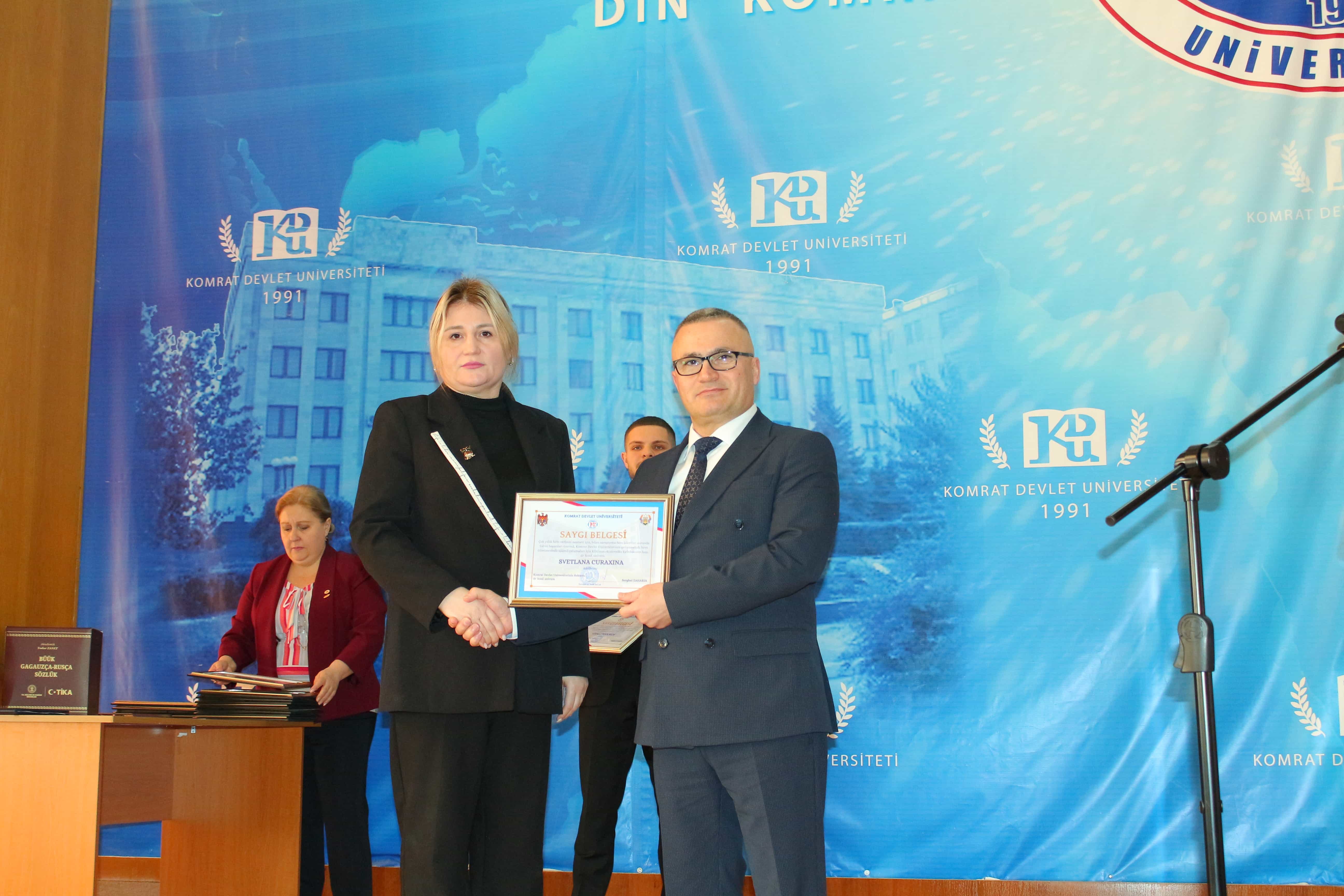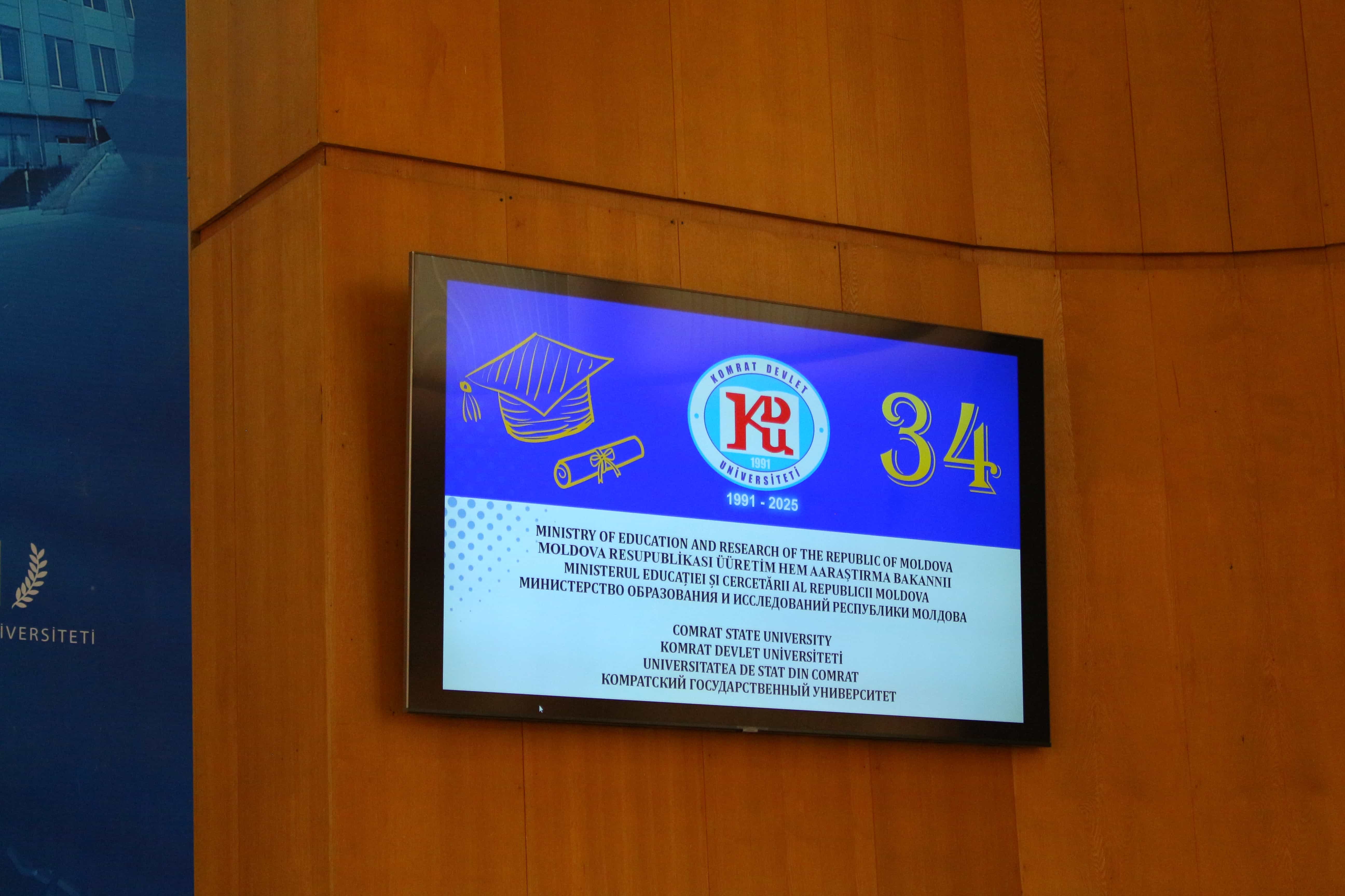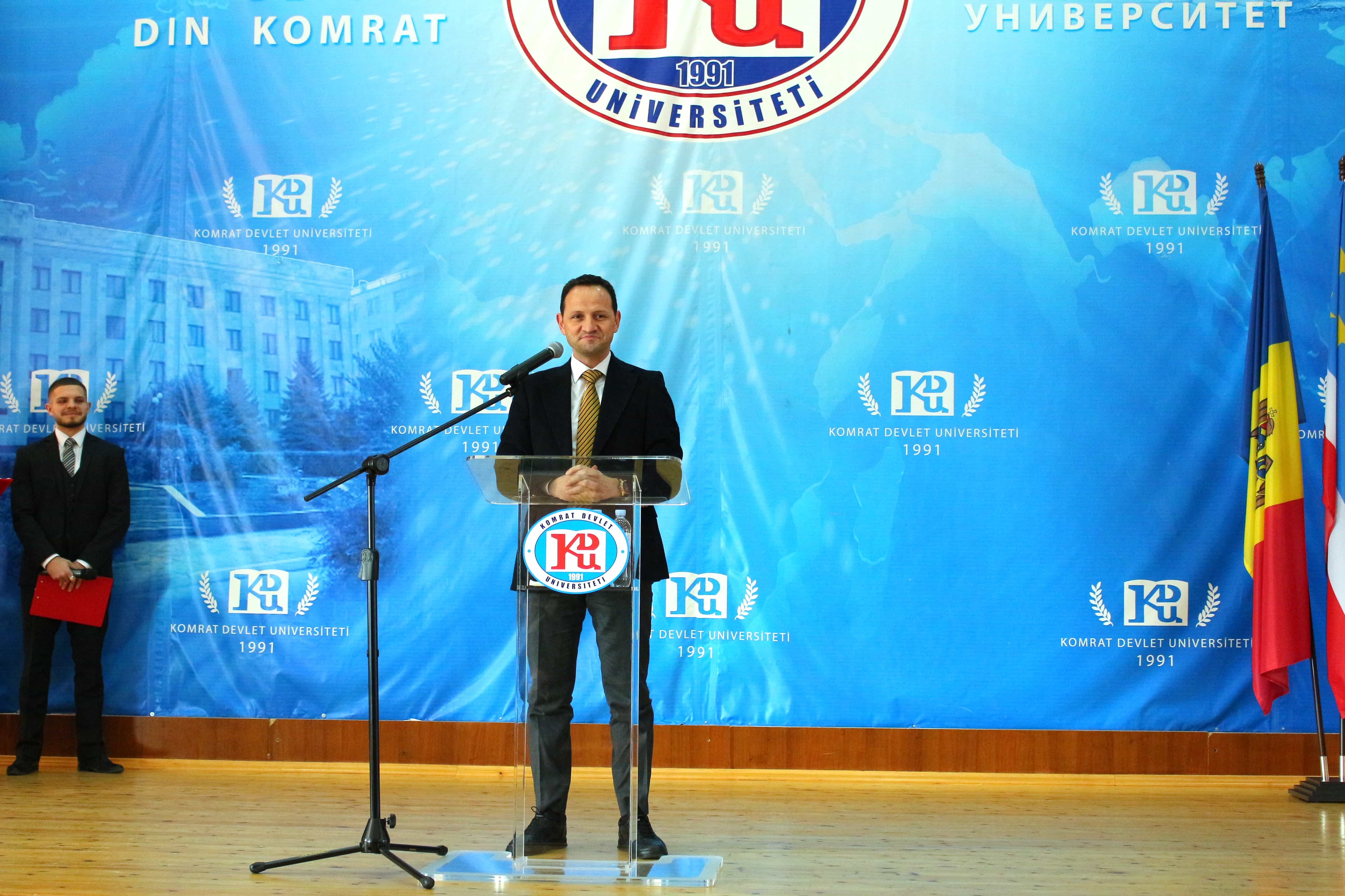 Pe 11 februarie 2025, Universitatea de Stat din Comrat și-a sărbătorit cea de-a 34-a aniversare printr-o ceremonie grandioasă dedicată deschiderii Conferinței Științifice și Practice Internaționale „Știință. Educație. Cultură.” Evenimentul a combinat valorile tradiționale cu realizările moderne, simbolizând dezvoltarea dinamică a universității. Ceremonia a început cu un discurs de bun venit din partea rectorului Universității de Stat din Comrat, Dr., Conf. Univ. Sergei Zaharia. Rectorul a subliniat că cea de-a 34-a aniversare a universității nu este doar o sărbătoare, ci și o dovadă clară a creșterii sale dinamice și a angajamentului față de inovație. El a evidențiat faptul că acest eveniment simbolizează unirea valorilor tradiționale cu realizările moderne, reafirmând statutul USC ca centru al științei, educației și culturii. Rectorul și-a exprimat profunda recunoștință față de fiecare angajat, profesor și student pentru munca lor neobosită și contribuția la cauza comună. În continuare, au urmat discursuri de salut din partea oaspeților de onoare, printre care: Doamna Adriana Cazacu-Țigăie, Secretar de Stat al Ministerului Educației și Cercetării al Republicii Moldova; Domnul Tomasz Kobzdej, Ambasadorul Republicii Polonia; Domnul Adnan Hayal, Consul General al Republicii Turcia la Comrat; Domnul Gabriel Nicola, Consul General al României la Cahul; Domnul Tarık Mete, Coordonator de programe al Agenției Turce pentru Cooperare și Coordonare (TİKA) la Chișinău; Domnul Aziz Șahin, Președintele General al Consiliului Internațional pentru Cooperare Turcă (ATİK); Domnul İsmail Fırat, Guvernatorul părții centrale a orașului Antalya; Profesor, Dr. Adalat Muradov, Rectorul Universității de Stat de Economie din Azerbaidjan (UNEC); Profesor, Dr. Viorel Bostan, Rectorul Universității Tehnice a Moldovei; Profesor, Dr. Alpay Arıbaş, Rectorul Universității Aksaray (ASÜ); Profesor, Dr. Yücel Oğurlu, Rectorul Universității Balıkesir; Profesor, Dr. Emine Gümüşsoy, Decanul Facultății de Științe Umaniste și Sociale a Universității Eskişehir Osmangazi; Domnul Serghei Anastasov, Primarul municipiului Comrat; Domnul Todur Zanet, poet, scriitor, dramaturg și cercetător găgăuz. Oaspeții de onoare au urat Universității de Stat din Comrat prosperitate continuă, asigurând că contribuția sa la știință, educație și cultură va sprijini dezvoltarea regiunii. Aceștia și-au exprimat sincera recunoștință pentru invitație și au subliniat importanța cooperării internaționale pentru atingerea unor noi înălțimi. În cadrul ceremoniei festive, profesorii și angajații universității au fost onorați pentru contribuția lor de lungă durată la dezvoltarea științei, educației și culturii. Ei au primit premii onorifice pentru realizările lor profesionale, angajamentul față de inovație și nivelul ridicat de devotament, simbolizând recunoașterea eforturilor lor inestimabile în beneficiul universității. După ceremonia de premiere, a avut loc un program de concert vibrant, susținut de studenții universității. Aceștia și-au demonstrat talentele artistice în muzică, dans și cântec, creând o atmosferă de sărbătoare și inspirație pentru toți cei prezenți. Astfel, Universitatea de Stat din Comrat continuă cu încredere pe calea științei, educației și culturii, rămânând un loc unde tradițiile întâlnesc inovațiile, iar fiecare an marchează un pas spre noi realizări. Fie ca universitatea să continue să prospere, devenind un centru de cunoaștere și inspirație pentru generațiile viitoare!