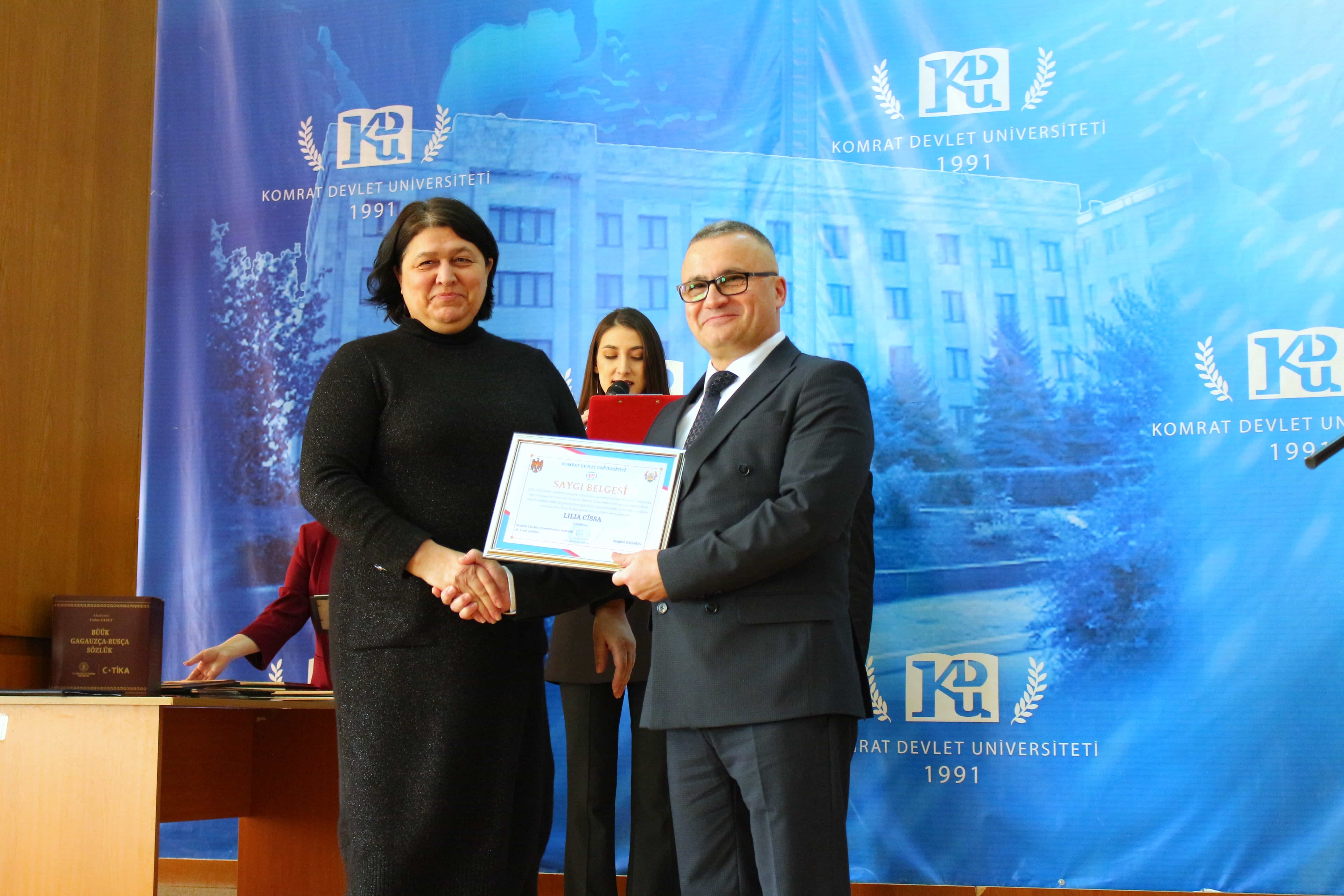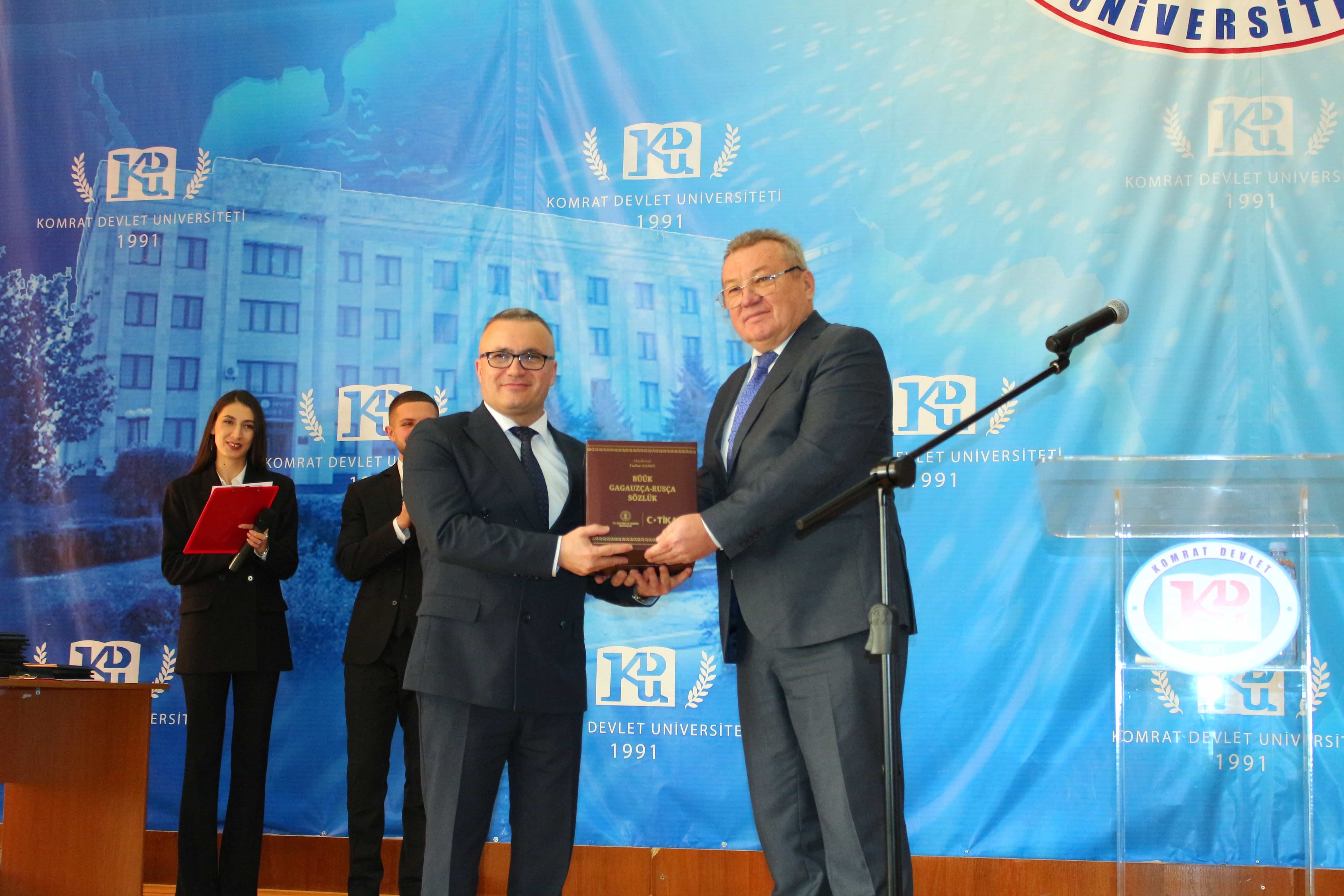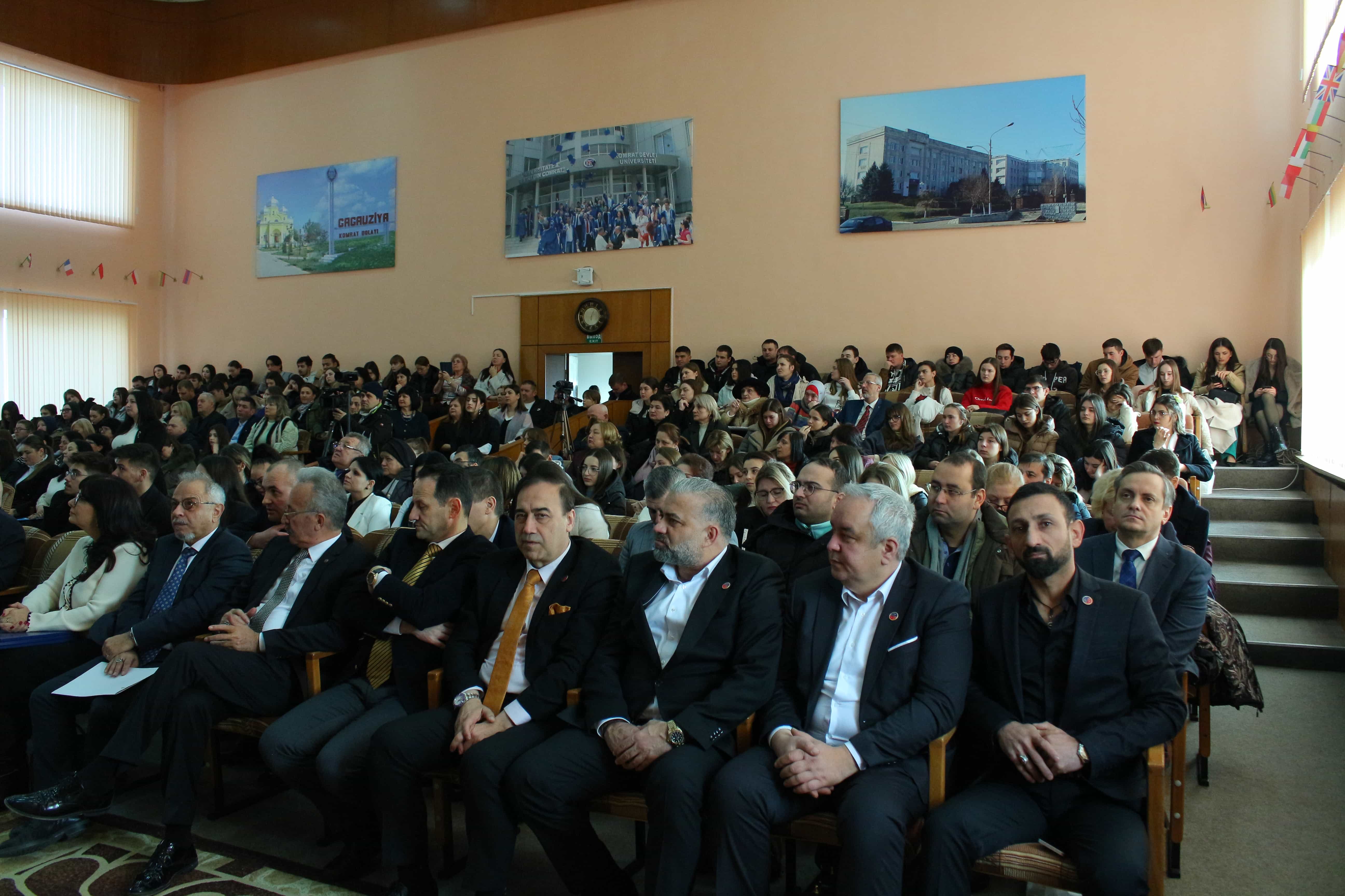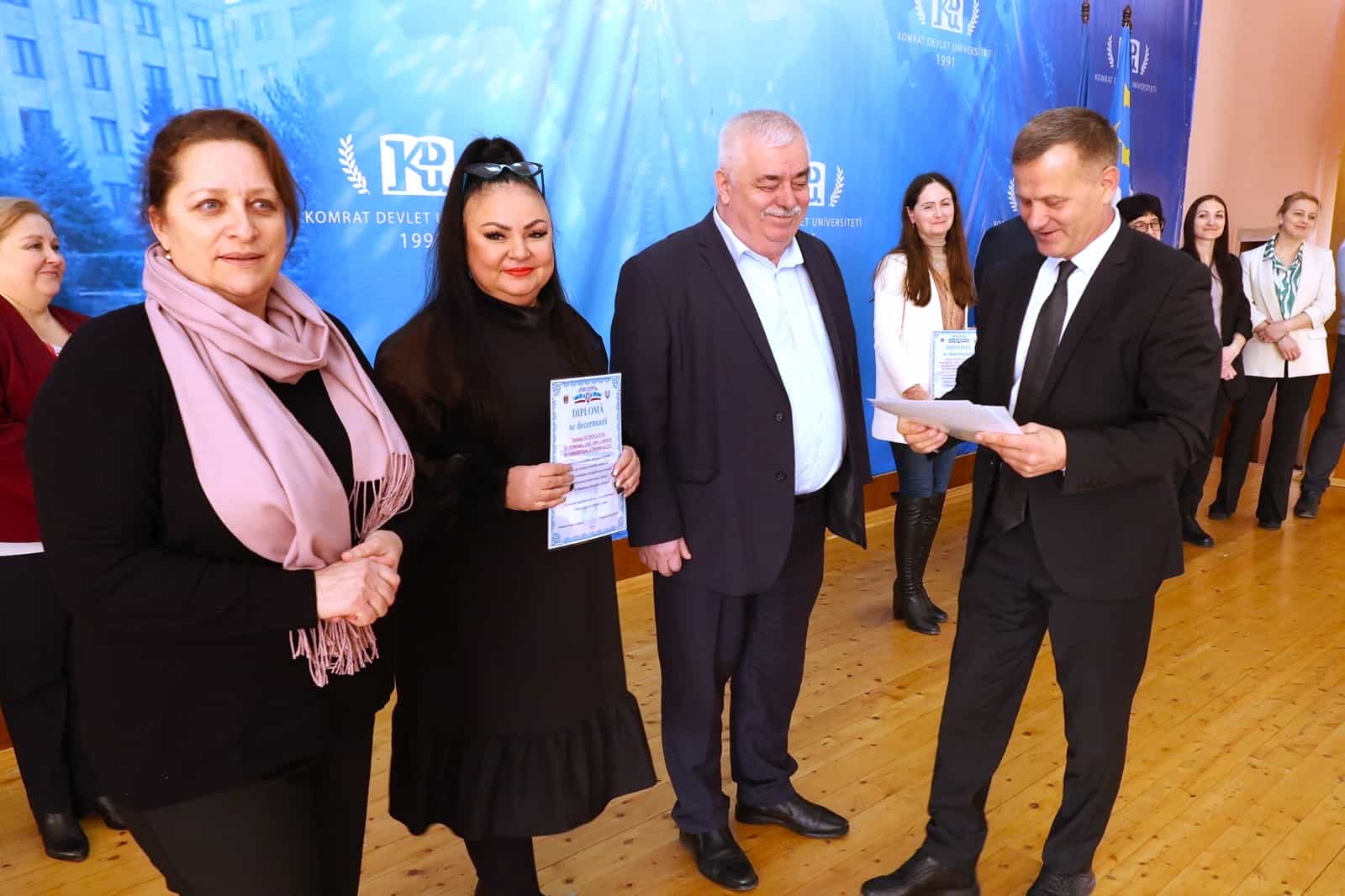 Pe 11 februarie 2025, Universitatea de Stat din Comrat și-a sărbătorit cea de-a 34-a aniversare printr-o ceremonie grandioasă dedicată deschiderii Conferinței Științifice și Practice Internaționale „Știință. Educație. Cultură.” Evenimentul a combinat valorile tradiționale cu realizările moderne, simbolizând dezvoltarea dinamică a universității. Ceremonia a început cu un discurs de bun venit din partea rectorului Universității de Stat din Comrat, Dr., Conf. Univ. Sergei Zaharia. Rectorul a subliniat că cea de-a 34-a aniversare a universității nu este doar o sărbătoare, ci și o dovadă clară a creșterii sale dinamice și a angajamentului față de inovație. El a evidențiat faptul că acest eveniment simbolizează unirea valorilor tradiționale cu realizările moderne, reafirmând statutul USC ca centru al științei, educației și culturii. Rectorul și-a exprimat profunda recunoștință față de fiecare angajat, profesor și student pentru munca lor neobosită și contribuția la cauza comună. În continuare, au urmat discursuri de salut din partea oaspeților de onoare, printre care: Doamna Adriana Cazacu-Țigăie, Secretar de Stat al Ministerului Educației și Cercetării al Republicii Moldova; Domnul Tomasz Kobzdej, Ambasadorul Republicii Polonia; Domnul Adnan Hayal, Consul General al Republicii Turcia la Comrat; Domnul Gabriel Nicola, Consul General al României la Cahul; Domnul Tarık Mete, Coordonator de programe al Agenției Turce pentru Cooperare și Coordonare (TİKA) la Chișinău; Domnul Aziz Șahin, Președintele General al Consiliului Internațional pentru Cooperare Turcă (ATİK); Domnul İsmail Fırat, Guvernatorul părții centrale a orașului Antalya; Profesor, Dr. Adalat Muradov, Rectorul Universității de Stat de Economie din Azerbaidjan (UNEC); Profesor, Dr. Viorel Bostan, Rectorul Universității Tehnice a Moldovei; Profesor, Dr. Alpay Arıbaş, Rectorul Universității Aksaray (ASÜ); Profesor, Dr. Yücel Oğurlu, Rectorul Universității Balıkesir; Profesor, Dr. Emine Gümüşsoy, Decanul Facultății de Științe Umaniste și Sociale a Universității Eskişehir Osmangazi; Domnul Serghei Anastasov, Primarul municipiului Comrat; Domnul Todur Zanet, poet, scriitor, dramaturg și cercetător găgăuz. Oaspeții de onoare au urat Universității de Stat din Comrat prosperitate continuă, asigurând că contribuția sa la știință, educație și cultură va sprijini dezvoltarea regiunii. Aceștia și-au exprimat sincera recunoștință pentru invitație și au subliniat importanța cooperării internaționale pentru atingerea unor noi înălțimi. În cadrul ceremoniei festive, profesorii și angajații universității au fost onorați pentru contribuția lor de lungă durată la dezvoltarea științei, educației și culturii. Ei au primit premii onorifice pentru realizările lor profesionale, angajamentul față de inovație și nivelul ridicat de devotament, simbolizând recunoașterea eforturilor lor inestimabile în beneficiul universității. După ceremonia de premiere, a avut loc un program de concert vibrant, susținut de studenții universității. Aceștia și-au demonstrat talentele artistice în muzică, dans și cântec, creând o atmosferă de sărbătoare și inspirație pentru toți cei prezenți. Astfel, Universitatea de Stat din Comrat continuă cu încredere pe calea științei, educației și culturii, rămânând un loc unde tradițiile întâlnesc inovațiile, iar fiecare an marchează un pas spre noi realizări. Fie ca universitatea să continue să prospere, devenind un centru de cunoaștere și inspirație pentru generațiile viitoare!
