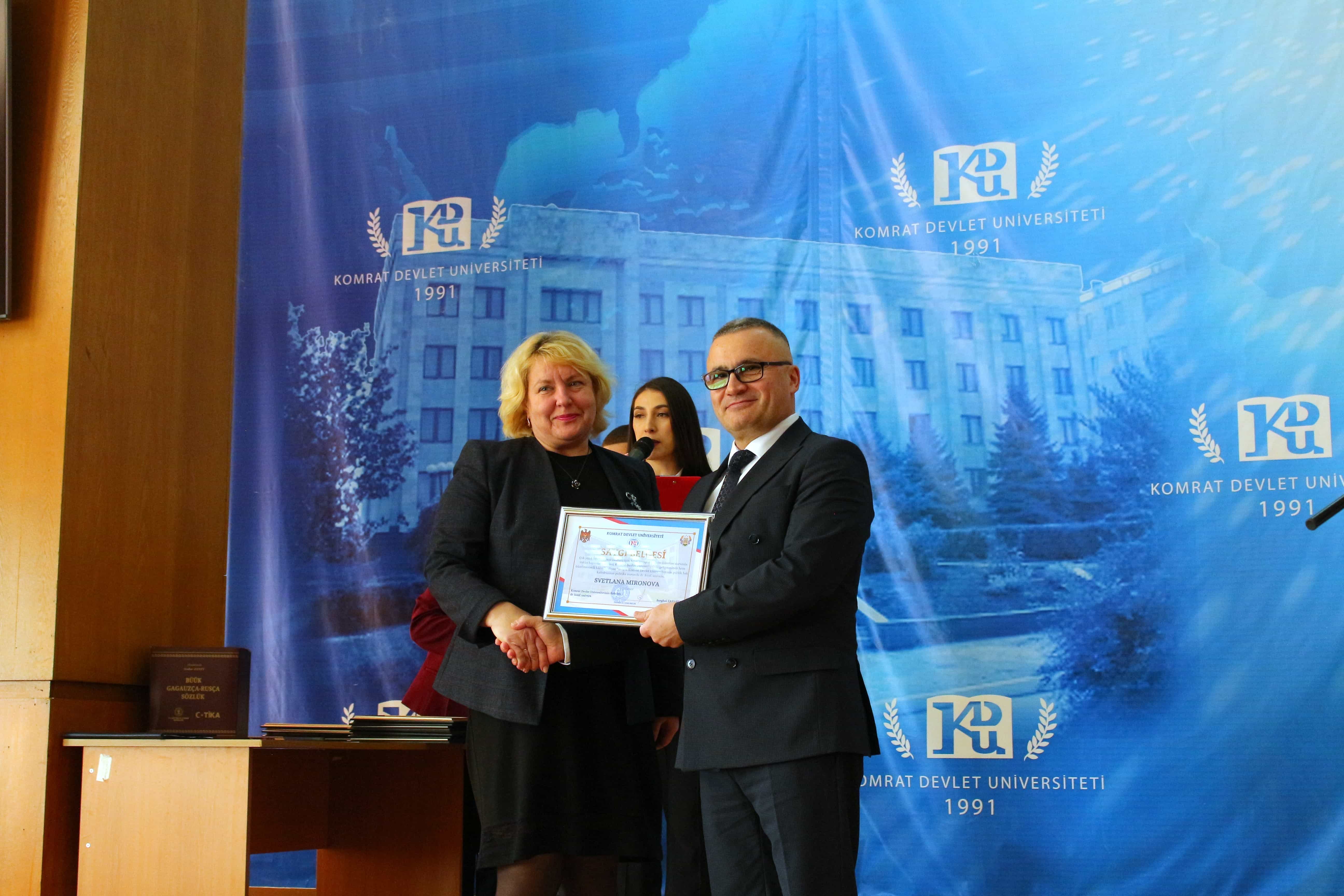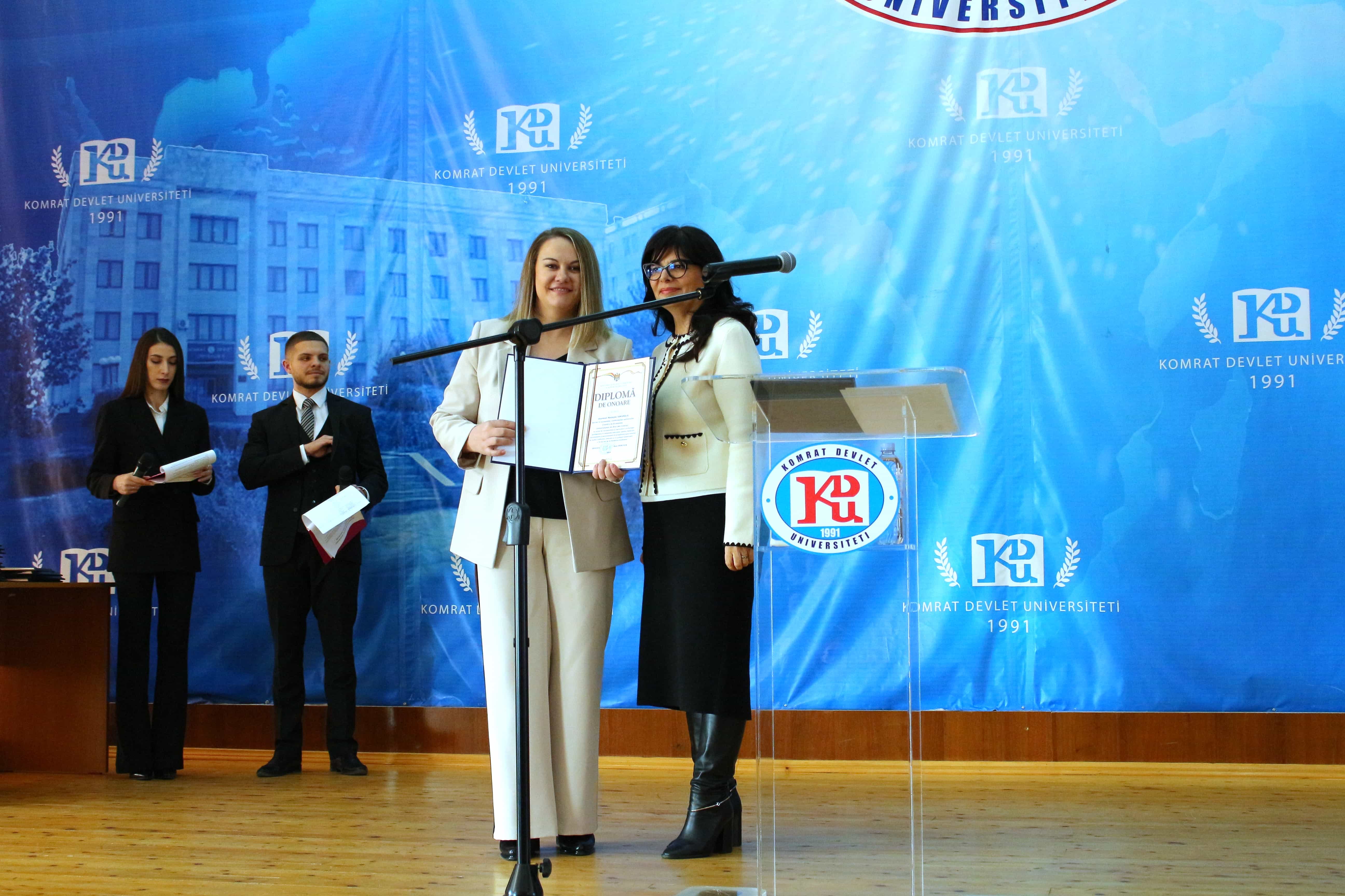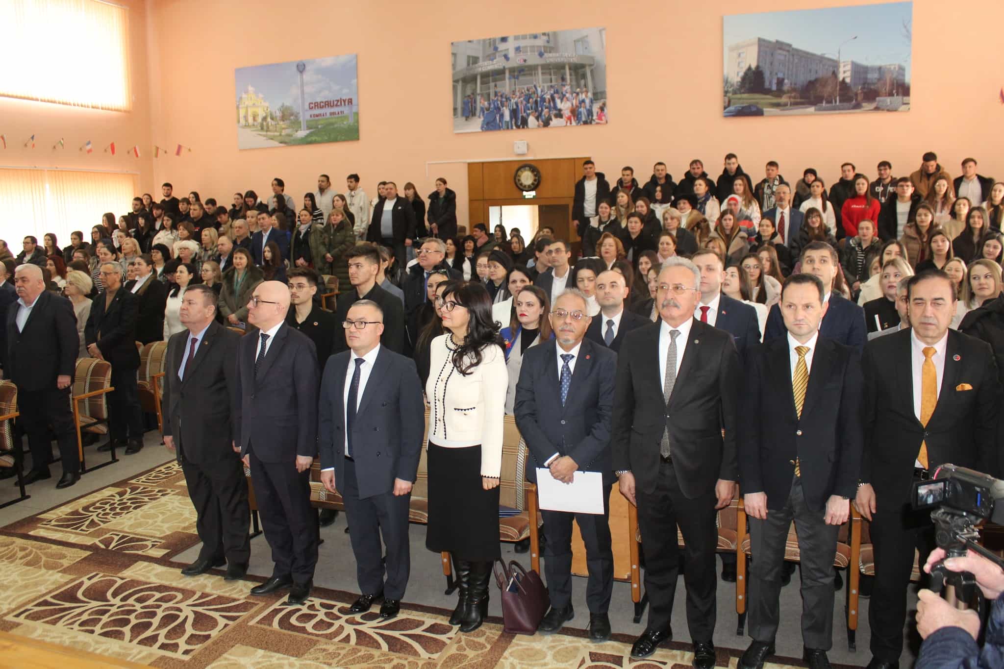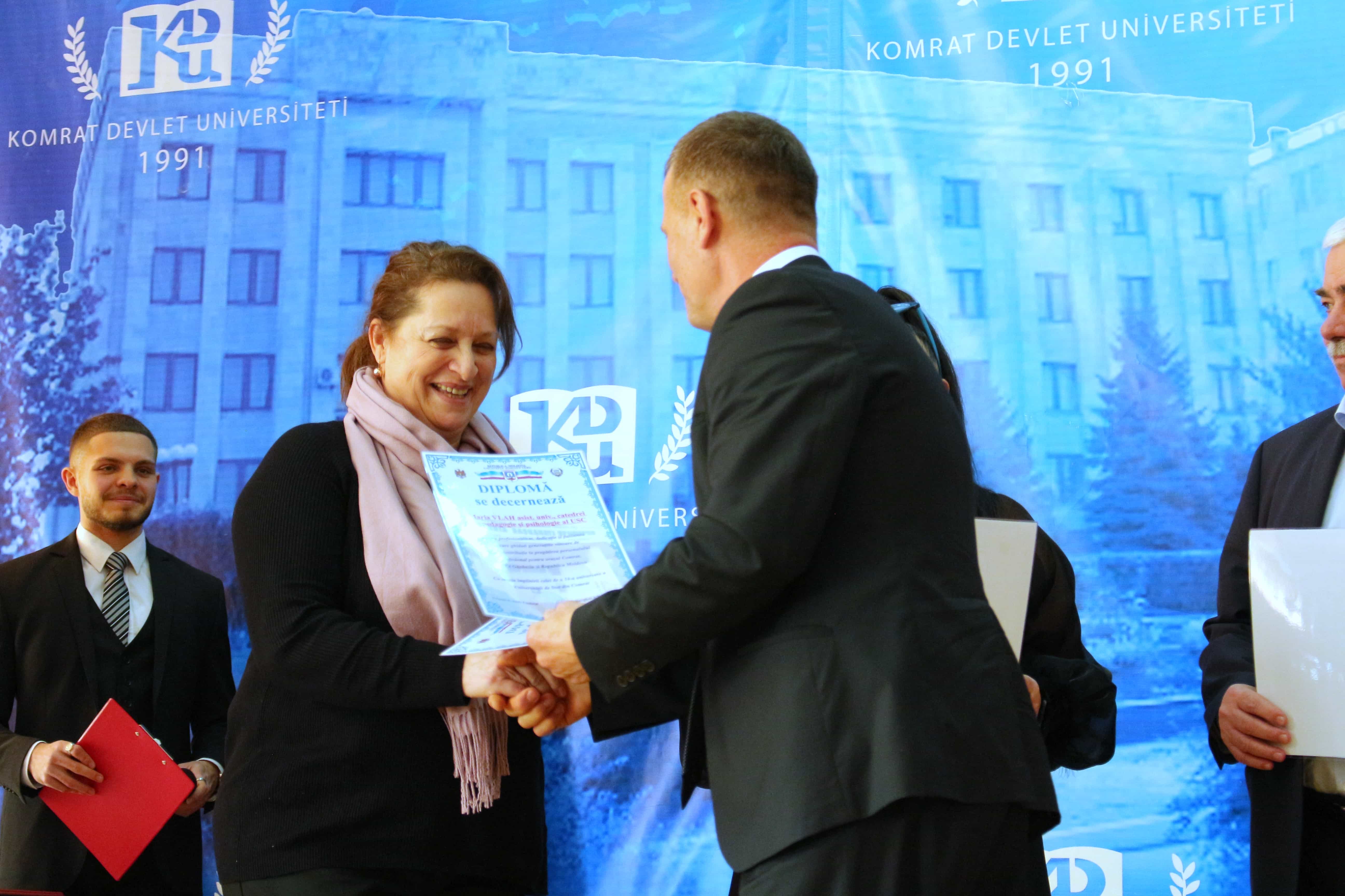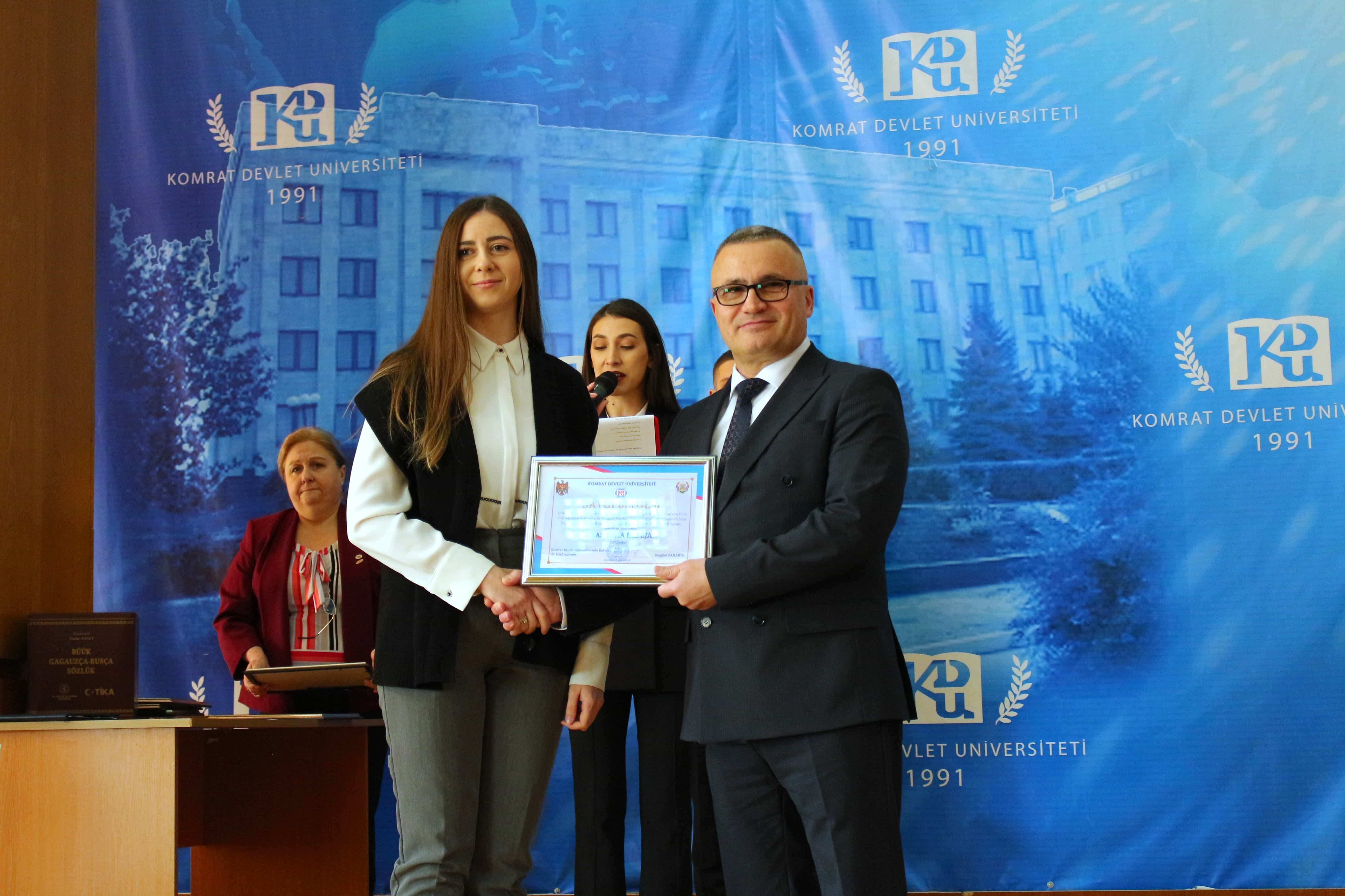 Pe 11 februarie 2025, Universitatea de Stat din Comrat și-a sărbătorit cea de-a 34-a aniversare printr-o ceremonie grandioasă dedicată deschiderii Conferinței Științifice și Practice Internaționale „Știință. Educație. Cultură.” Evenimentul a combinat valorile tradiționale cu realizările moderne, simbolizând dezvoltarea dinamică a universității. Ceremonia a început cu un discurs de bun venit din partea rectorului Universității de Stat din Comrat, Dr., Conf. Univ. Sergei Zaharia. Rectorul a subliniat că cea de-a 34-a aniversare a universității nu este doar o sărbătoare, ci și o dovadă clară a creșterii sale dinamice și a angajamentului față de inovație. El a evidențiat faptul că acest eveniment simbolizează unirea valorilor tradiționale cu realizările moderne, reafirmând statutul USC ca centru al științei, educației și culturii. Rectorul și-a exprimat profunda recunoștință față de fiecare angajat, profesor și student pentru munca lor neobosită și contribuția la cauza comună. În continuare, au urmat discursuri de salut din partea oaspeților de onoare, printre care: Doamna Adriana Cazacu-Țigăie, Secretar de Stat al Ministerului Educației și Cercetării al Republicii Moldova; Domnul Tomasz Kobzdej, Ambasadorul Republicii Polonia; Domnul Adnan Hayal, Consul General al Republicii Turcia la Comrat; Domnul Gabriel Nicola, Consul General al României la Cahul; Domnul Tarık Mete, Coordonator de programe al Agenției Turce pentru Cooperare și Coordonare (TİKA) la Chișinău; Domnul Aziz Șahin, Președintele General al Consiliului Internațional pentru Cooperare Turcă (ATİK); Domnul İsmail Fırat, Guvernatorul părții centrale a orașului Antalya; Profesor, Dr. Adalat Muradov, Rectorul Universității de Stat de Economie din Azerbaidjan (UNEC); Profesor, Dr. Viorel Bostan, Rectorul Universității Tehnice a Moldovei; Profesor, Dr. Alpay Arıbaş, Rectorul Universității Aksaray (ASÜ); Profesor, Dr. Yücel Oğurlu, Rectorul Universității Balıkesir; Profesor, Dr. Emine Gümüşsoy, Decanul Facultății de Științe Umaniste și Sociale a Universității Eskişehir Osmangazi; Domnul Serghei Anastasov, Primarul municipiului Comrat; Domnul Todur Zanet, poet, scriitor, dramaturg și cercetător găgăuz. Oaspeții de onoare au urat Universității de Stat din Comrat prosperitate continuă, asigurând că contribuția sa la știință, educație și cultură va sprijini dezvoltarea regiunii. Aceștia și-au exprimat sincera recunoștință pentru invitație și au subliniat importanța cooperării internaționale pentru atingerea unor noi înălțimi. În cadrul ceremoniei festive, profesorii și angajații universității au fost onorați pentru contribuția lor de lungă durată la dezvoltarea științei, educației și culturii. Ei au primit premii onorifice pentru realizările lor profesionale, angajamentul față de inovație și nivelul ridicat de devotament, simbolizând recunoașterea eforturilor lor inestimabile în beneficiul universității. După ceremonia de premiere, a avut loc un program de concert vibrant, susținut de studenții universității. Aceștia și-au demonstrat talentele artistice în muzică, dans și cântec, creând o atmosferă de sărbătoare și inspirație pentru toți cei prezenți. Astfel, Universitatea de Stat din Comrat continuă cu încredere pe calea științei, educației și culturii, rămânând un loc unde tradițiile întâlnesc inovațiile, iar fiecare an marchează un pas spre noi realizări. Fie ca universitatea să continue să prospere, devenind un centru de cunoaștere și inspirație pentru generațiile viitoare!