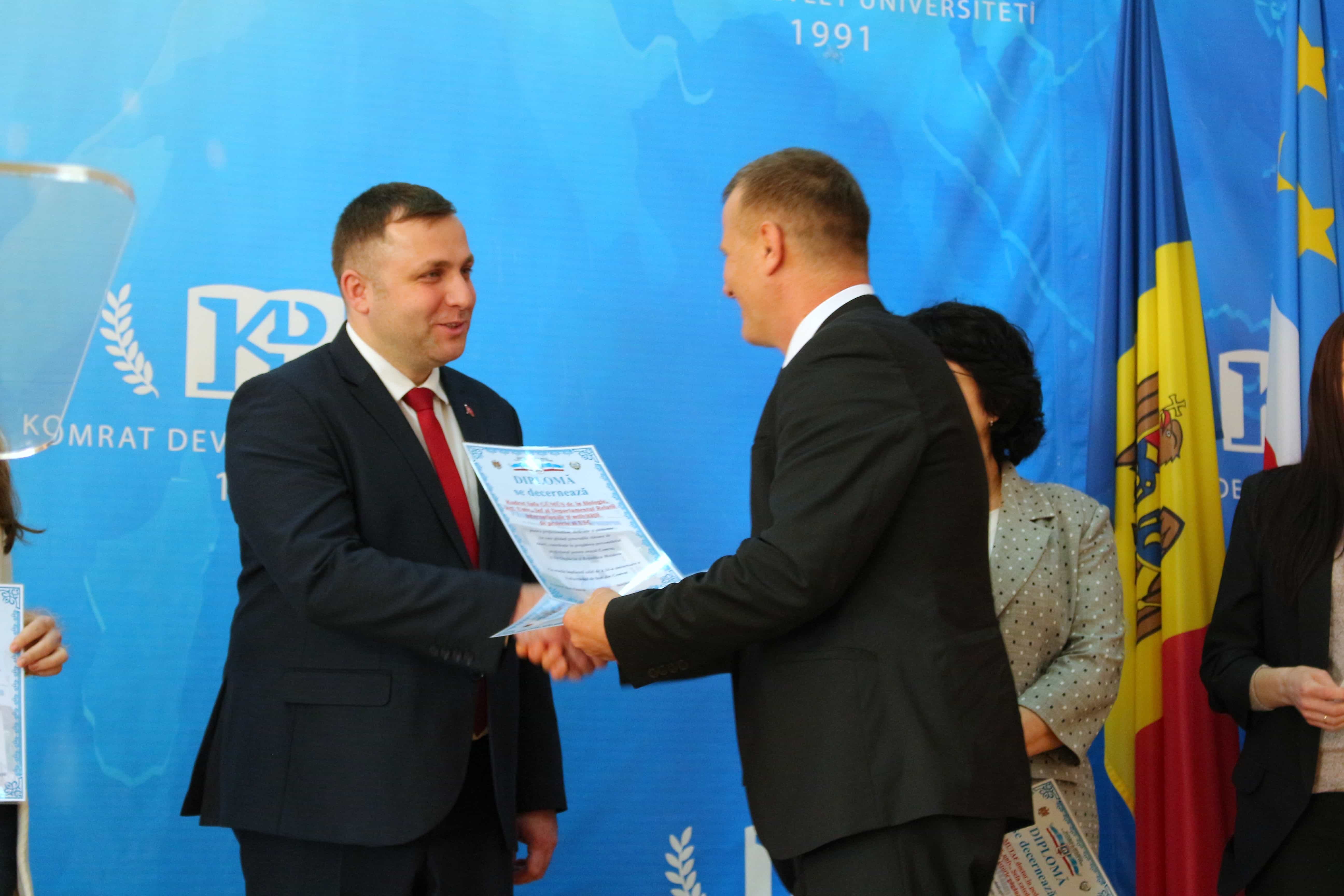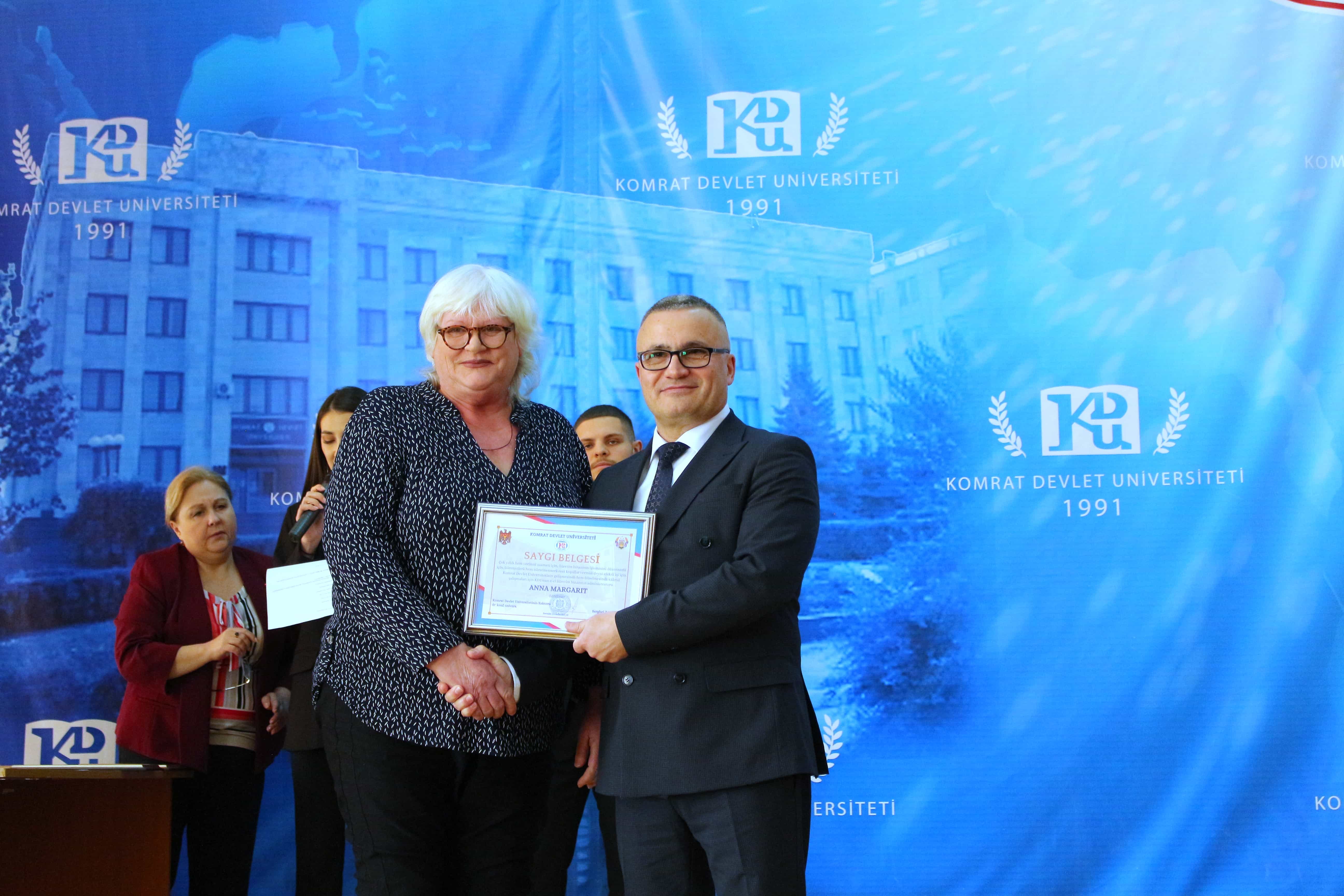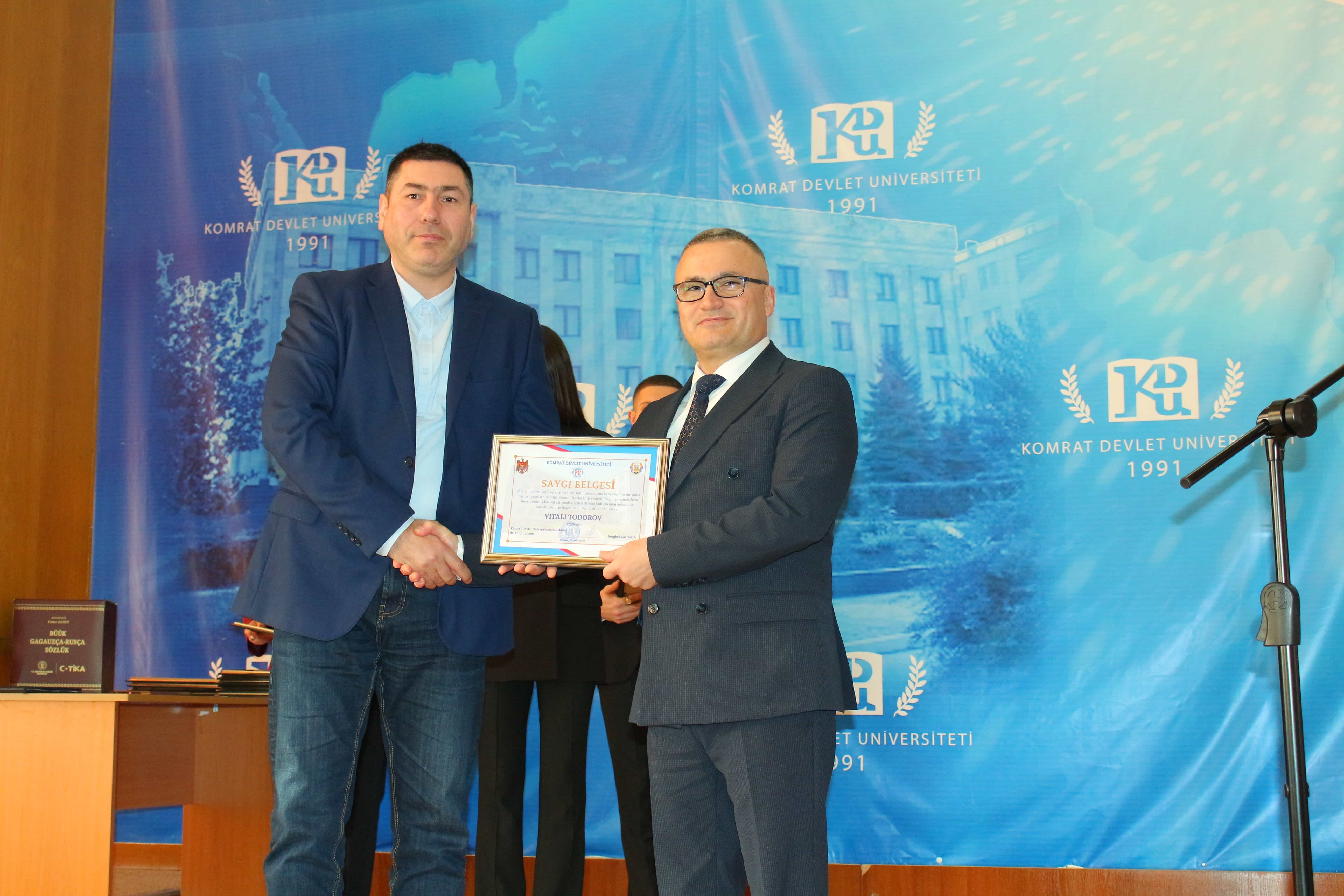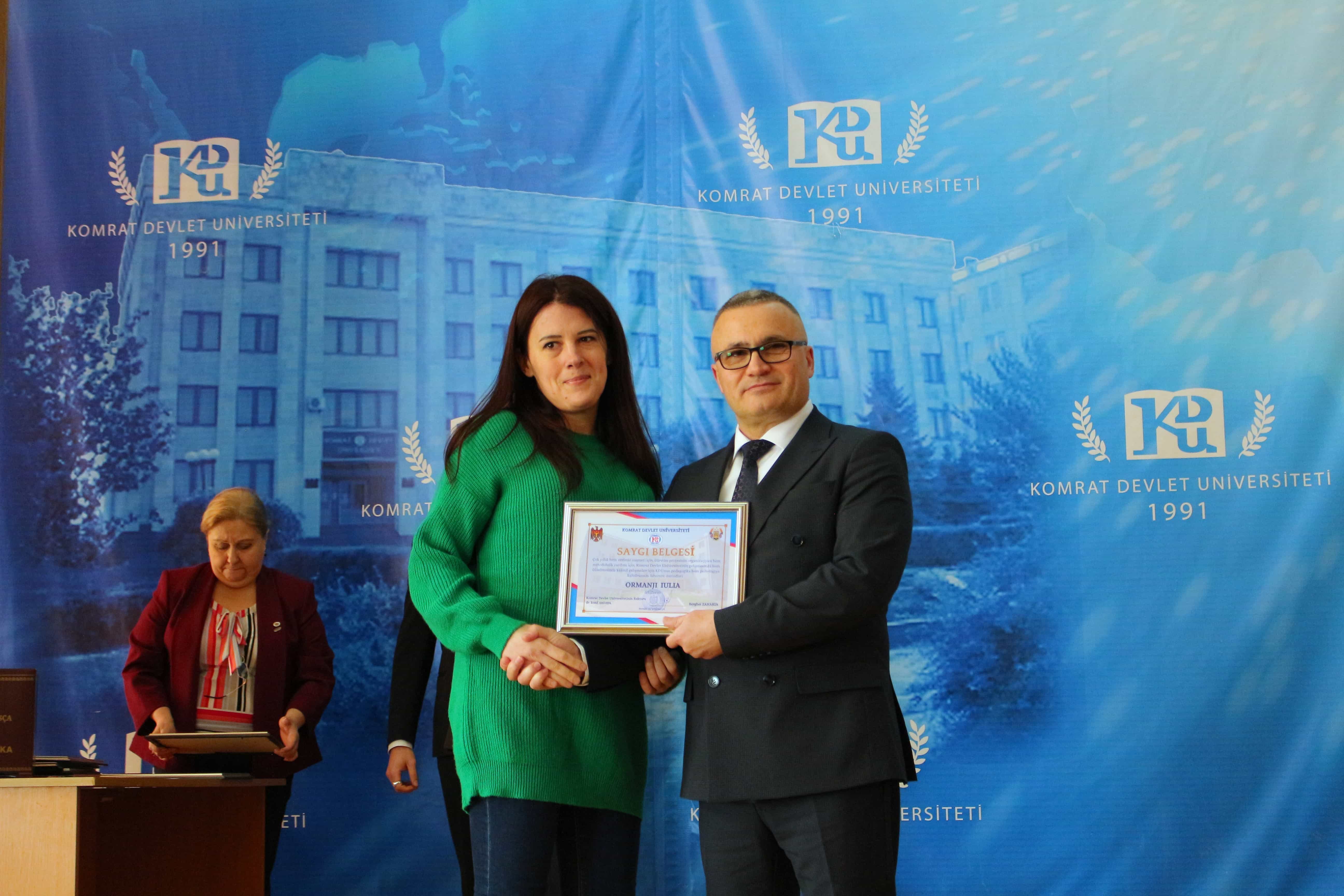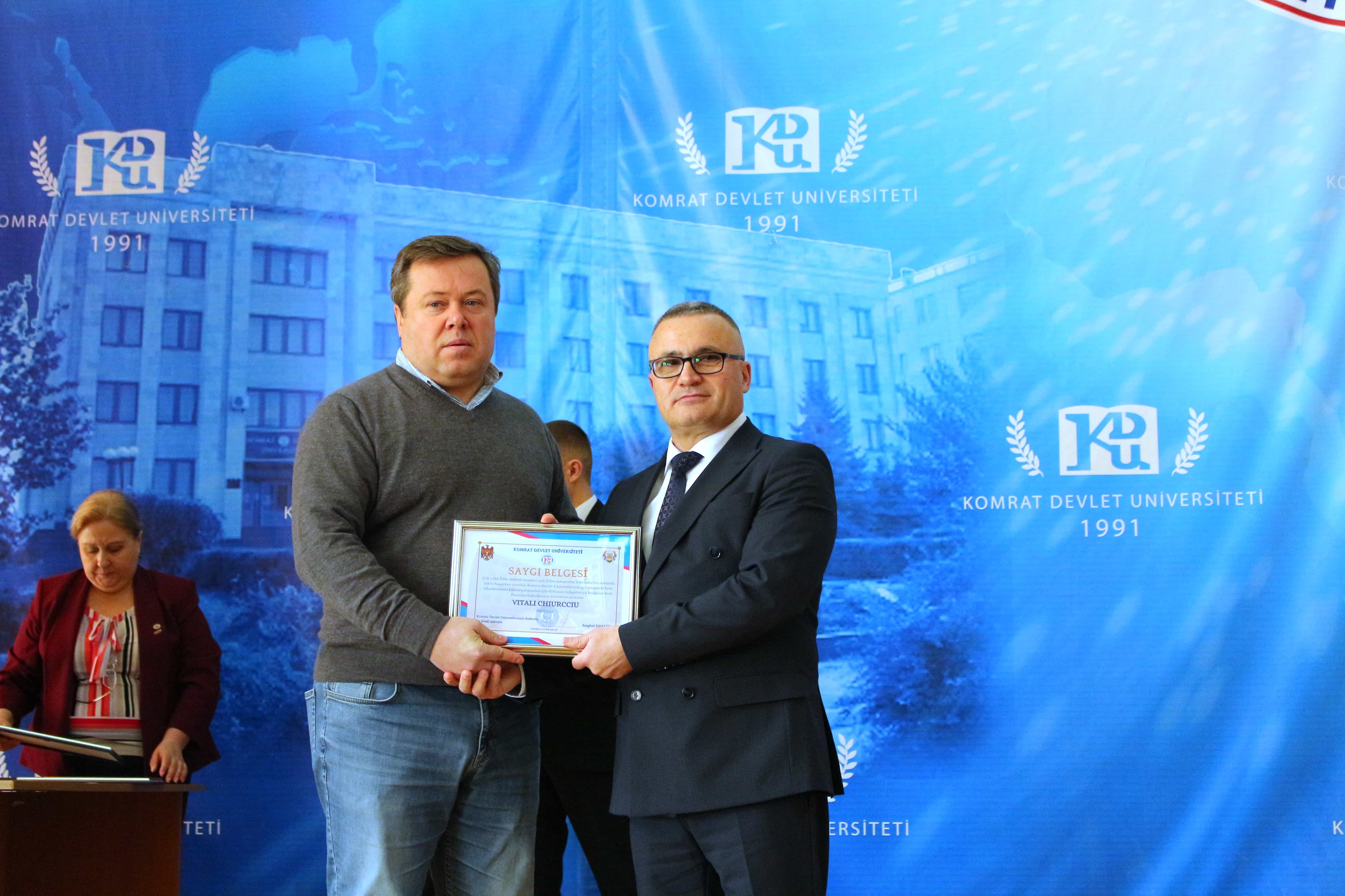 Pe 11 februarie 2025, Universitatea de Stat din Comrat și-a sărbătorit cea de-a 34-a aniversare printr-o ceremonie grandioasă dedicată deschiderii Conferinței Științifice și Practice Internaționale „Știință. Educație. Cultură.” Evenimentul a combinat valorile tradiționale cu realizările moderne, simbolizând dezvoltarea dinamică a universității. Ceremonia a început cu un discurs de bun venit din partea rectorului Universității de Stat din Comrat, Dr., Conf. Univ. Sergei Zaharia. Rectorul a subliniat că cea de-a 34-a aniversare a universității nu este doar o sărbătoare, ci și o dovadă clară a creșterii sale dinamice și a angajamentului față de inovație. El a evidențiat faptul că acest eveniment simbolizează unirea valorilor tradiționale cu realizările moderne, reafirmând statutul USC ca centru al științei, educației și culturii. Rectorul și-a exprimat profunda recunoștință față de fiecare angajat, profesor și student pentru munca lor neobosită și contribuția la cauza comună. În continuare, au urmat discursuri de salut din partea oaspeților de onoare, printre care: Doamna Adriana Cazacu-Țigăie, Secretar de Stat al Ministerului Educației și Cercetării al Republicii Moldova; Domnul Tomasz Kobzdej, Ambasadorul Republicii Polonia; Domnul Adnan Hayal, Consul General al Republicii Turcia la Comrat; Domnul Gabriel Nicola, Consul General al României la Cahul; Domnul Tarık Mete, Coordonator de programe al Agenției Turce pentru Cooperare și Coordonare (TİKA) la Chișinău; Domnul Aziz Șahin, Președintele General al Consiliului Internațional pentru Cooperare Turcă (ATİK); Domnul İsmail Fırat, Guvernatorul părții centrale a orașului Antalya; Profesor, Dr. Adalat Muradov, Rectorul Universității de Stat de Economie din Azerbaidjan (UNEC); Profesor, Dr. Viorel Bostan, Rectorul Universității Tehnice a Moldovei; Profesor, Dr. Alpay Arıbaş, Rectorul Universității Aksaray (ASÜ); Profesor, Dr. Yücel Oğurlu, Rectorul Universității Balıkesir; Profesor, Dr. Emine Gümüşsoy, Decanul Facultății de Științe Umaniste și Sociale a Universității Eskişehir Osmangazi; Domnul Serghei Anastasov, Primarul municipiului Comrat; Domnul Todur Zanet, poet, scriitor, dramaturg și cercetător găgăuz. Oaspeții de onoare au urat Universității de Stat din Comrat prosperitate continuă, asigurând că contribuția sa la știință, educație și cultură va sprijini dezvoltarea regiunii. Aceștia și-au exprimat sincera recunoștință pentru invitație și au subliniat importanța cooperării internaționale pentru atingerea unor noi înălțimi. În cadrul ceremoniei festive, profesorii și angajații universității au fost onorați pentru contribuția lor de lungă durată la dezvoltarea științei, educației și culturii. Ei au primit premii onorifice pentru realizările lor profesionale, angajamentul față de inovație și nivelul ridicat de devotament, simbolizând recunoașterea eforturilor lor inestimabile în beneficiul universității. După ceremonia de premiere, a avut loc un program de concert vibrant, susținut de studenții universității. Aceștia și-au demonstrat talentele artistice în muzică, dans și cântec, creând o atmosferă de sărbătoare și inspirație pentru toți cei prezenți. Astfel, Universitatea de Stat din Comrat continuă cu încredere pe calea științei, educației și culturii, rămânând un loc unde tradițiile întâlnesc inovațiile, iar fiecare an marchează un pas spre noi realizări. Fie ca universitatea să continue să prospere, devenind un centru de cunoaștere și inspirație pentru generațiile viitoare!